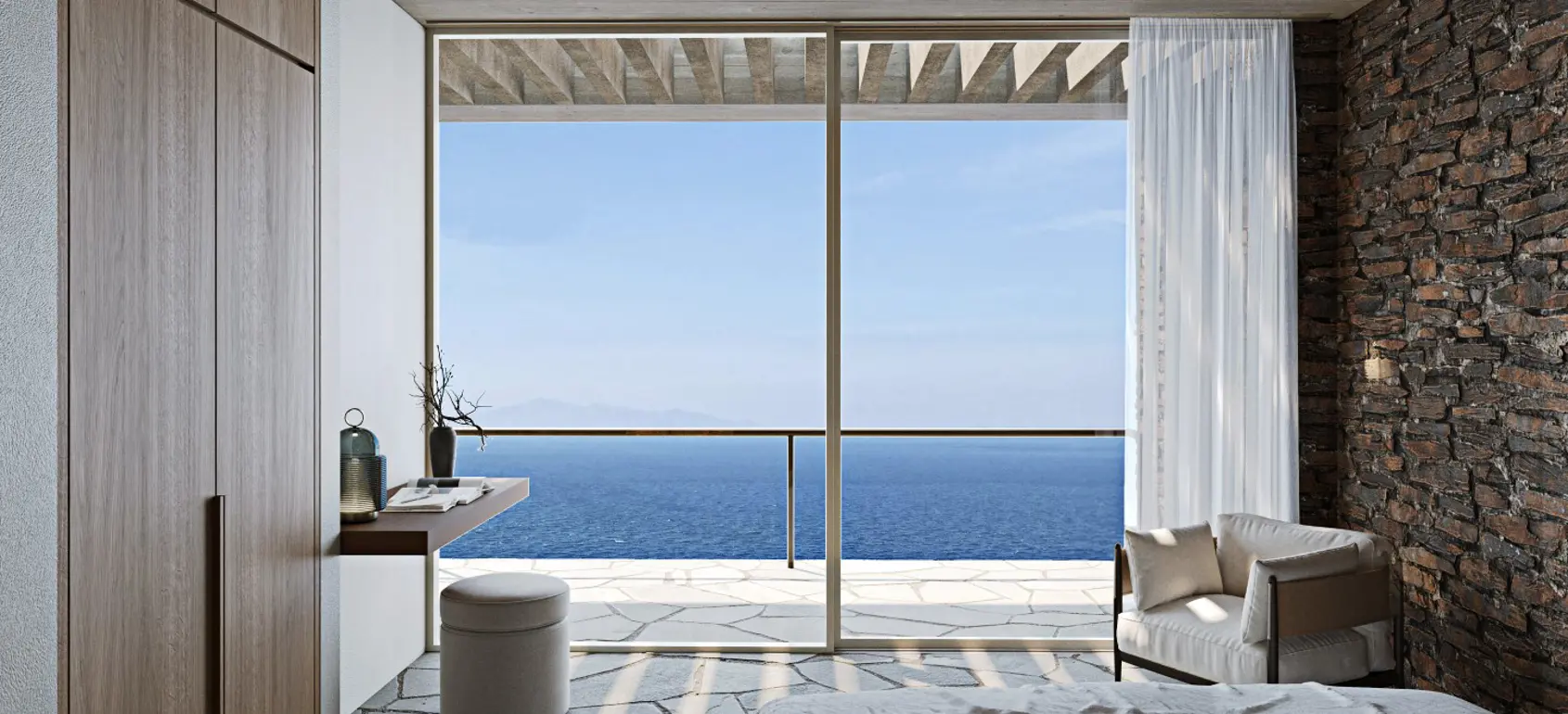 Each of the four generously sized bedrooms is complemented by a private ensuite bathroom, ensuring comfort and privacy for the residents, while two of them also boast expansive windows that frame breathtaking views of the Aegean Sea - a daily reminder of the villa’s privileged location.