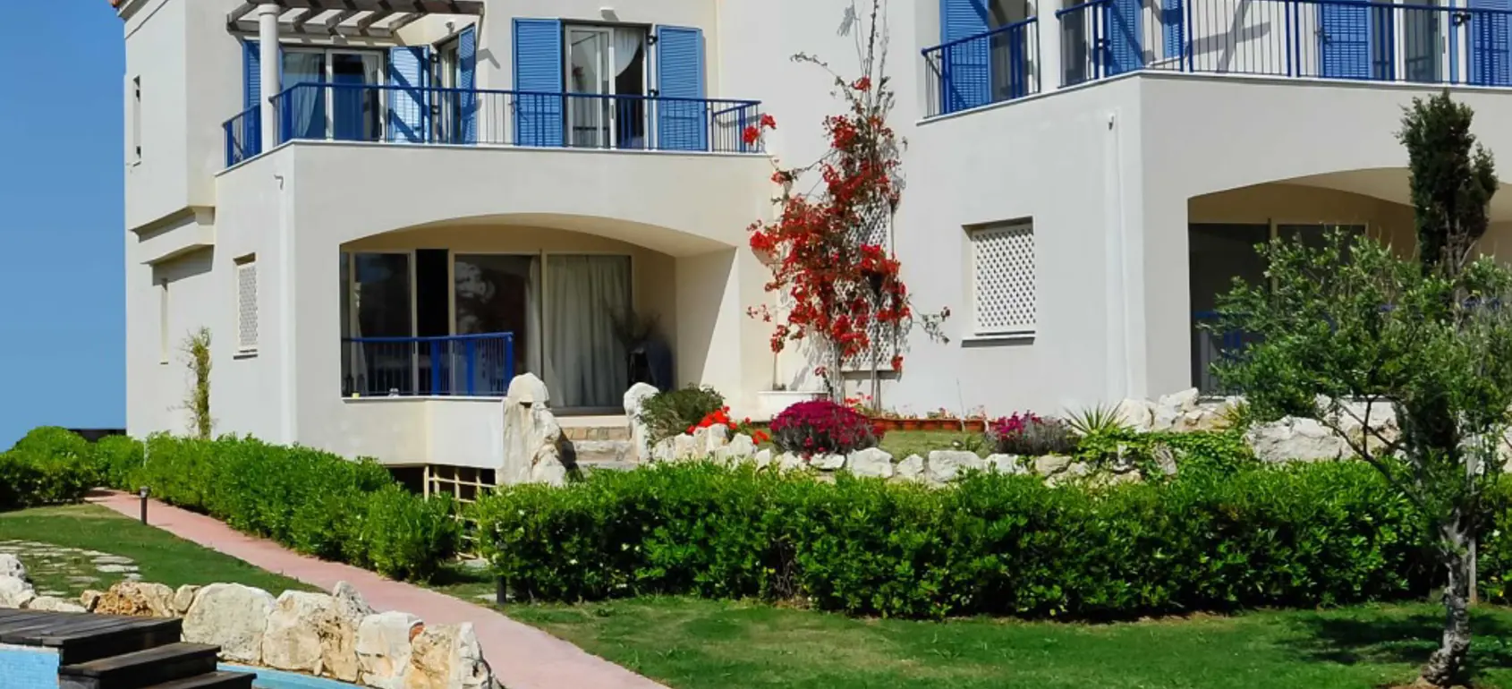 The complex offers a common swimming pool, bar, restaurant, mini-market as well as landscaped gardens.