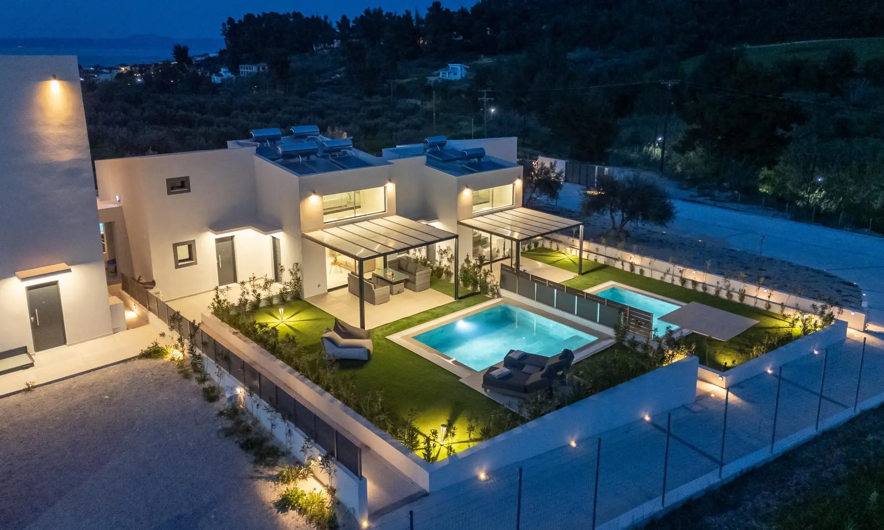 Nestled in the exclusive Sani area of Halkidiki, this beautifully renovated modern villa offers a rare opportunity to own a luxury retreat just moments from the renowned Sani Resort and pristine beaches of the Kassandra peninsula. Spanning 178 sqm across three levels, the fully furnished villa features four spacious bedrooms, two elegant bathrooms, and sunlit open-plan living areas with floor-to-ceiling windows that blend seamlessly with the lush, landscaped surroundings. Designed for both comfort and style, it boasts an infinity swimming pool, multiple terraces, a state-of-the-art kitchen, and outdoor dining areas perfect for entertaining. Located within a private gated complex just 4 km from the beach and 72 km from Thessaloniki Airport, this turnkey property combines tranquility, convenience, and strong rental potential, making it an ideal choice for both investment and year-round living.