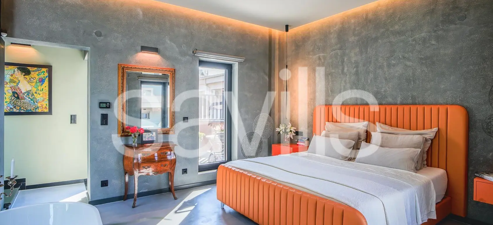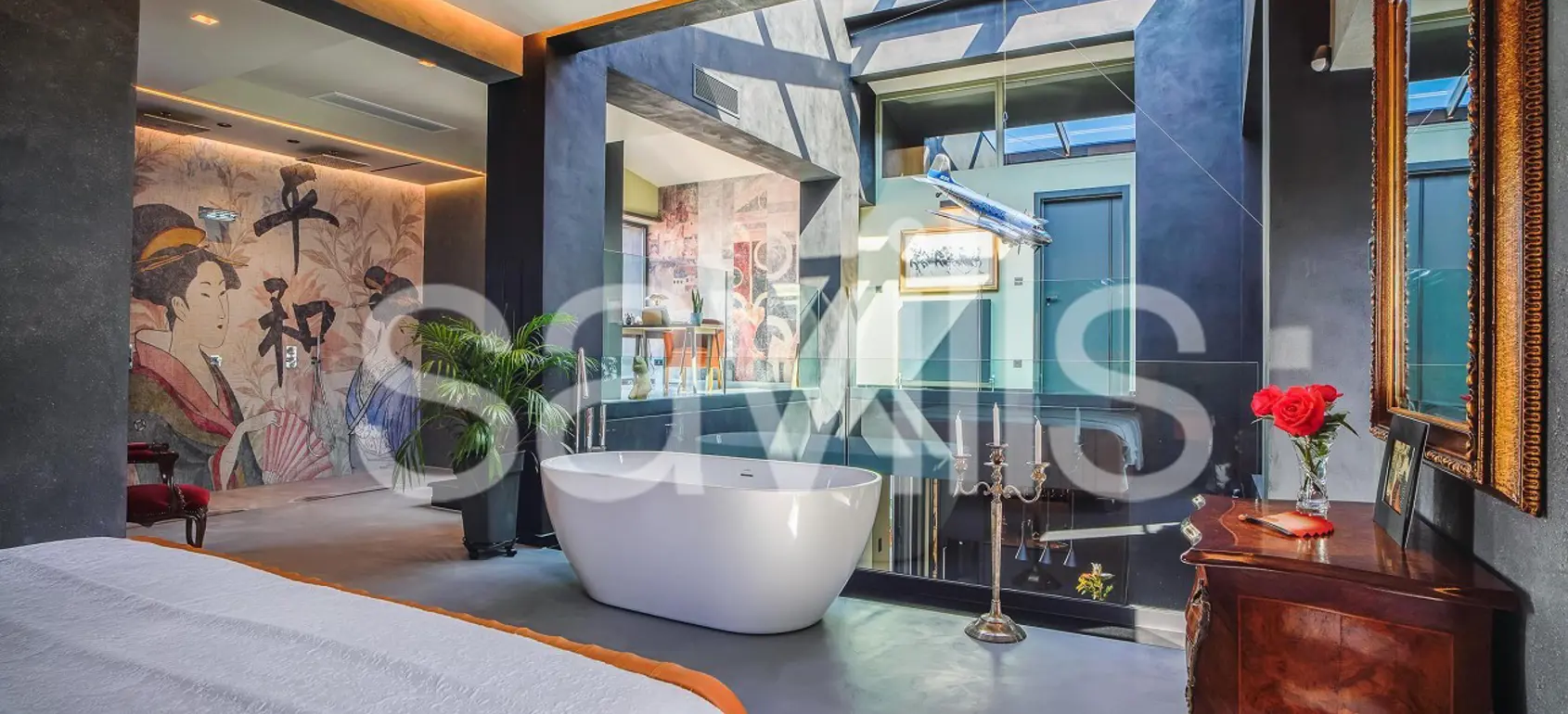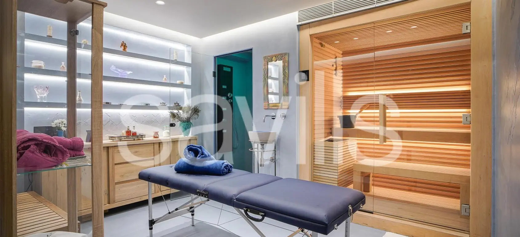 Indulge in relaxation in the dedicated spa area, featuring a sauna and steam room, or step outside to enjoy the Mediterranean-inspired outdoor space. The centerpiece of this oasis is a sparkling pool surrounded by sunlit terrace, ideal for unwinding. With additional rooms including a private office space, a serene master suite, and beautifully designed guest rooms, this villa is crafted to offer a refined, comfortable retreat.