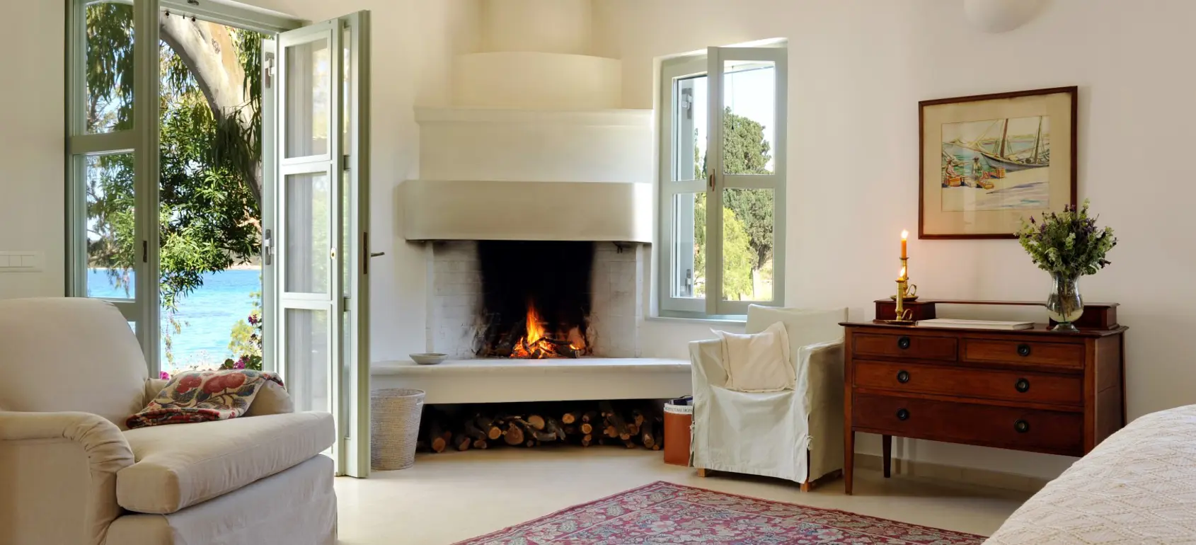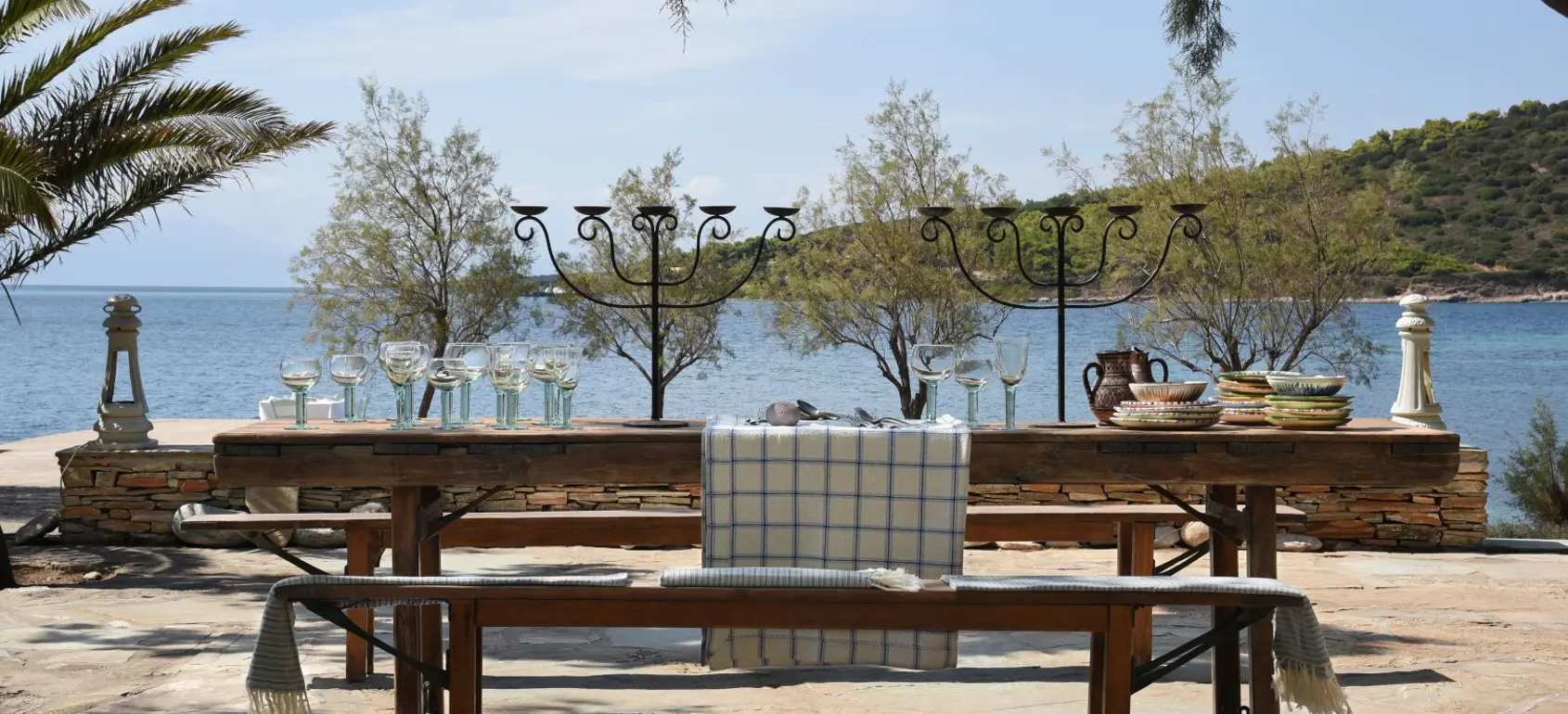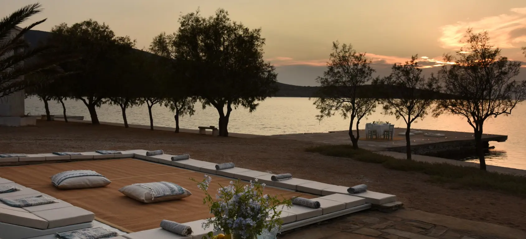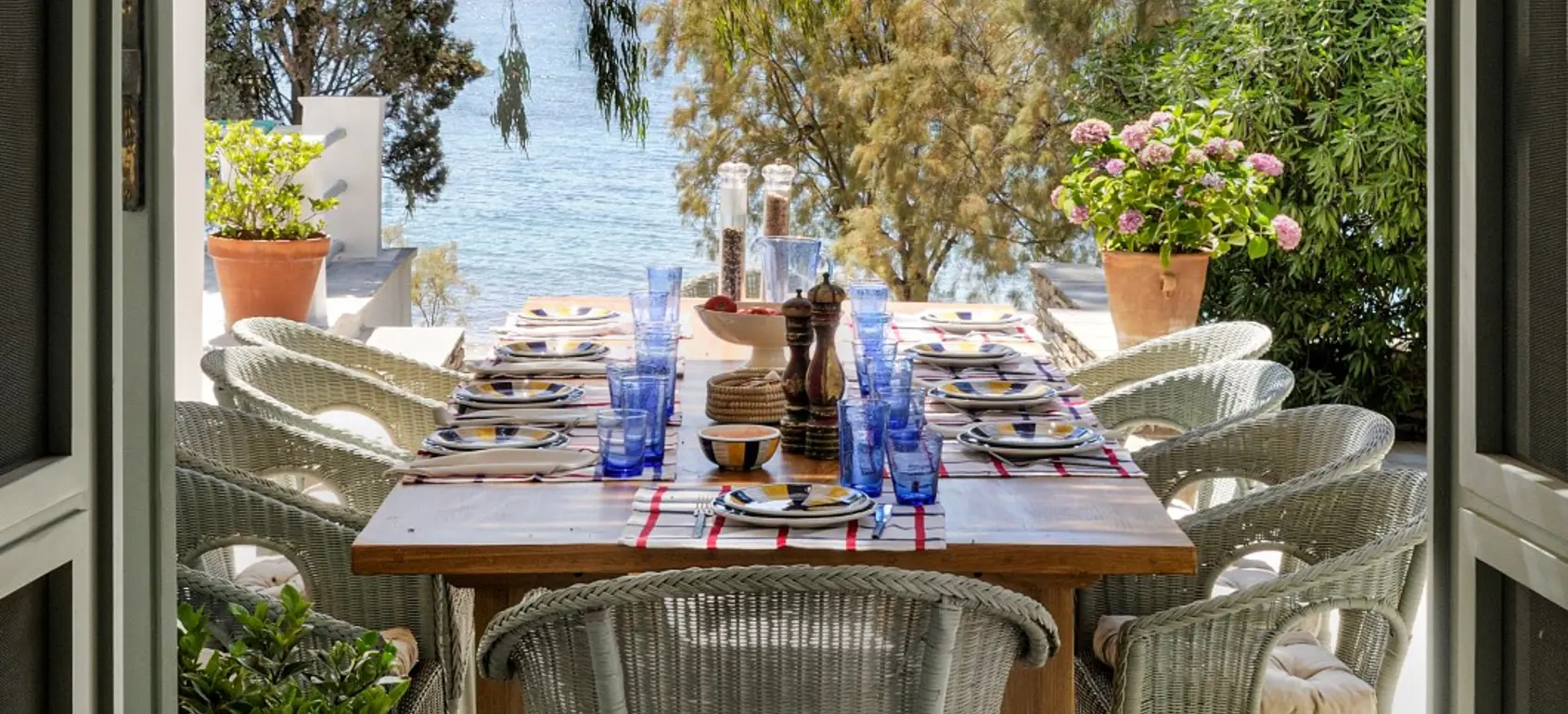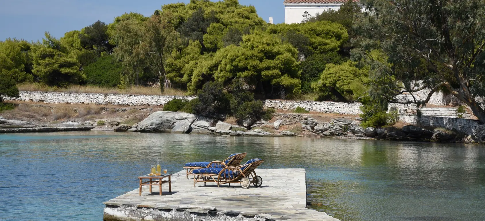 This unique beachfront hideaway, situated at the beginning of the Cycladic islands, looks on the seashore of a large bay in a peaceful location offering exceptional privacy within a preserved archipelago of islets, minutes away by boat to a fisherman’s wharf or to a beautiful medieval city with its Venetian Castle and fish restaurants by the sea. It is also the gateway for day excursions to the near by Cycladic islands or to Athens’s cultural venues. The property is ecologically managed and a gourmet selection of seasonal products from the organic vegetable garden and the farm, cooked by the chef, will complement your menu. The outdoor dining spaces under the twinkling stars, create the most idyllic setting, catering to a sophisticated palate, with regional ingredients and fine wine pairings. The perfect match for those who love nature, water sports, fishing, boat rides and sailing, relaxing on a beach, or just enjoying a drink at sunset on the pier in front of the house. The patios and numerous shaded terraces provide a comfortable setting at any hour of the day. The villa offers breathtaking views of a unique bay with outdoor sitting and dining areas, beaches and private piers at your doorstep. Walking out of your bedroom and stepping into the crystal clear turquoise water lying in front of you is truly a Mediterranean experience unlike no other.