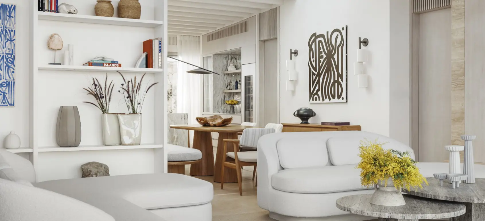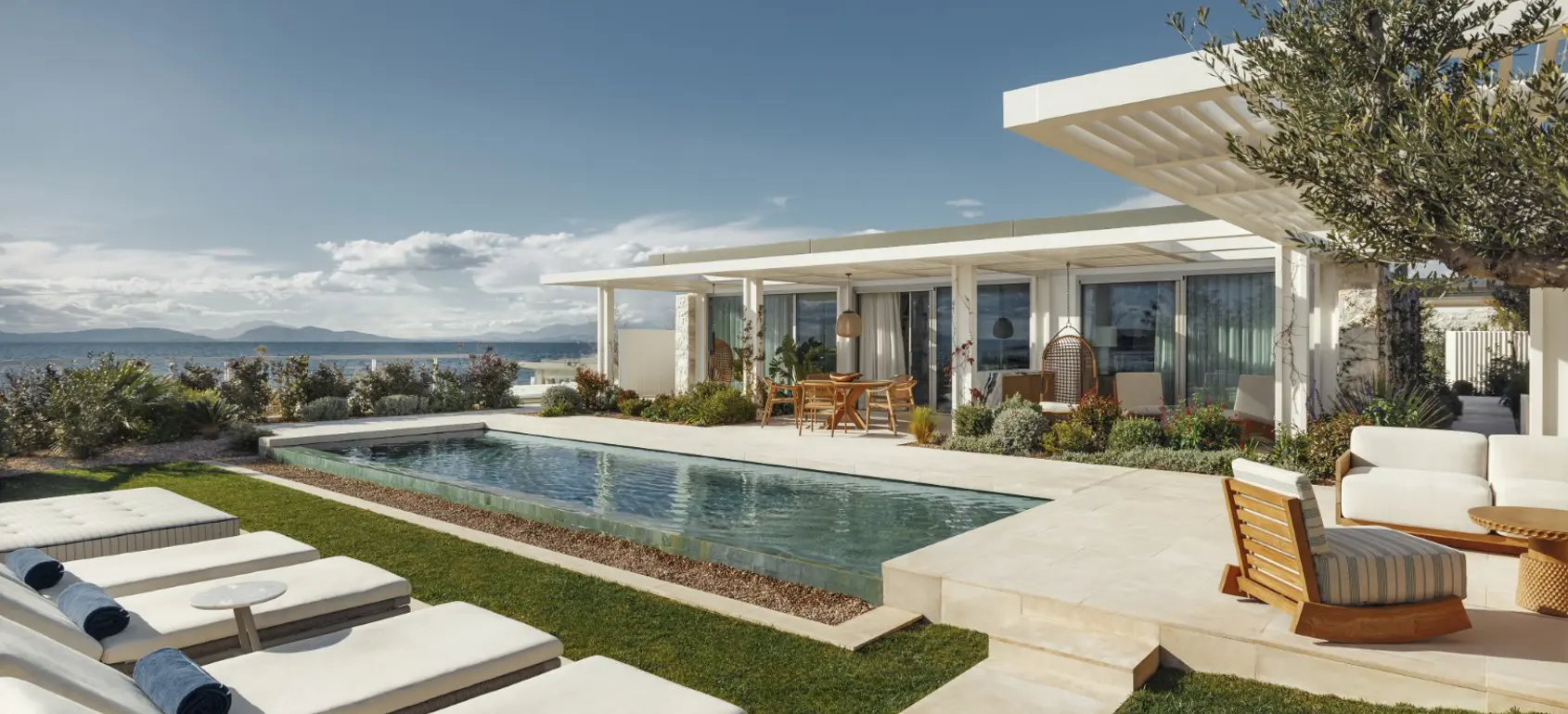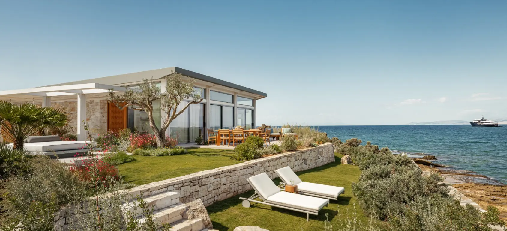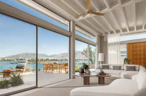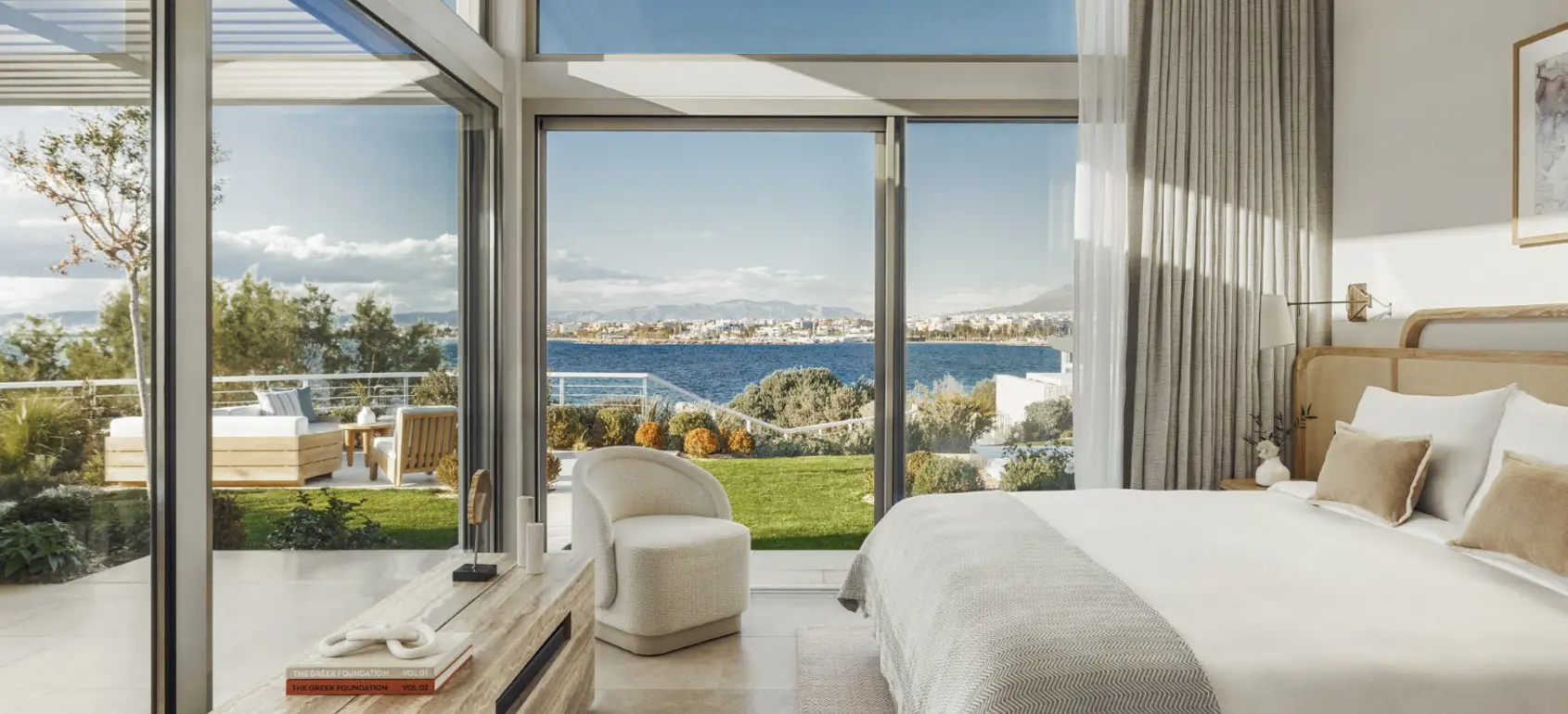 The villas at One&Only Aesthesis offer an exceptional blend of luxury, privacy, and seaside living. Located along the Glyfada shoreline, each villa is designed to maximize the stunning coastal views and create an unparalleled outdoor lifestyle. With shaded courtyards perfect for dining, private heated pools, and waterfront decks with direct access to the sea, these villas are the epitome of relaxation and comfort. Inside, the villas feature spacious bedrooms, marble-lined bathrooms, and a fully equipped kitchen, living room, and bar area, offering all the comforts of a private home. Designed with a mid-century modern aesthetic, large windows and glass doors provide panoramic views of the Aegean Sea. Each villa ensures a peaceful, private escape, while the resort offers world-class amenities and services. Guests can choose from a range of villas, each offering a unique experience tailored to the ultimate luxurious stay.