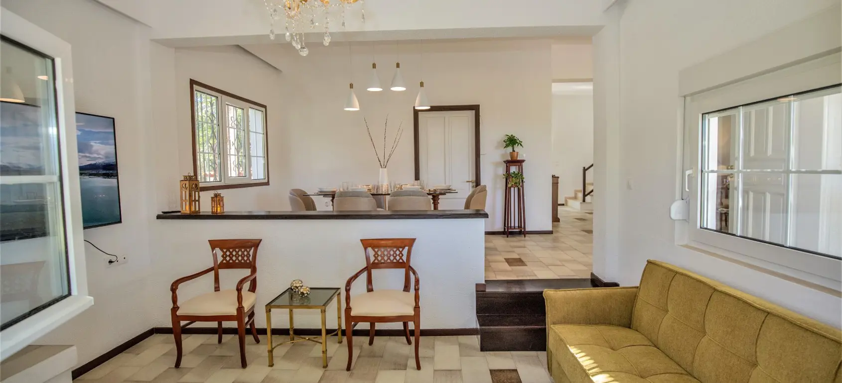 The views from the upstairs balconies is amazing, with the sea lingering at the distance of 350m. The outside area with the BBQ and the large dining area is the best place for amusement and relaxing.