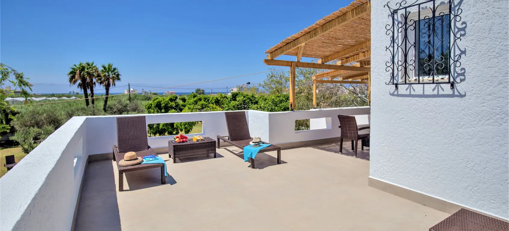The property is a modern villa, only 350m in a direct line from the sea, in the area of the city of Ierapetra, close to Makry-Gialos port and to the Siteia Airport.