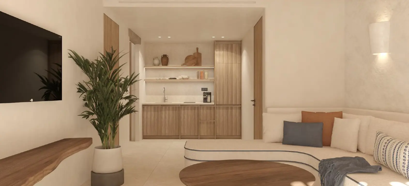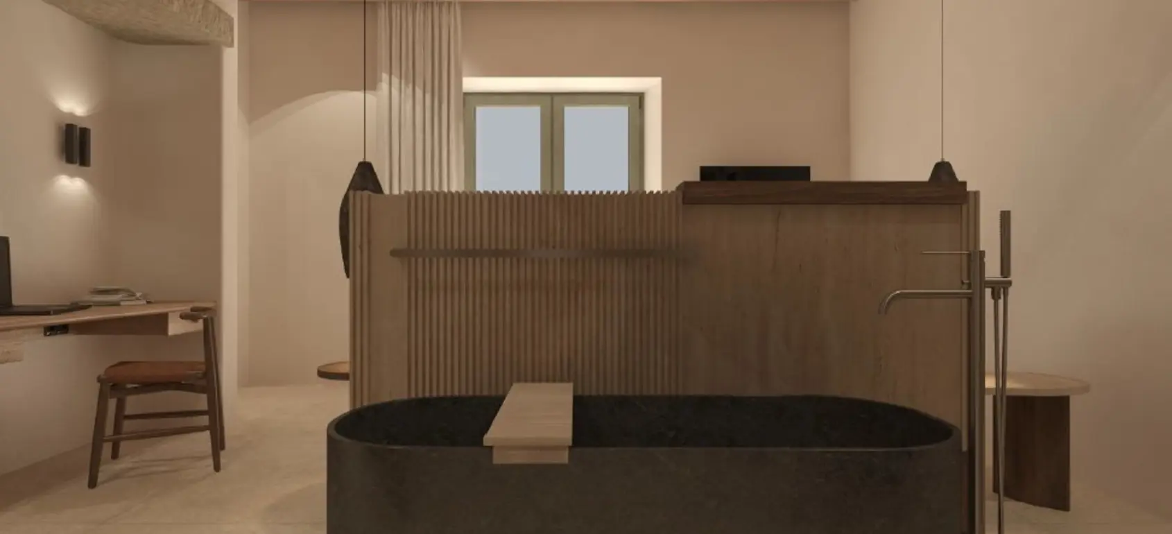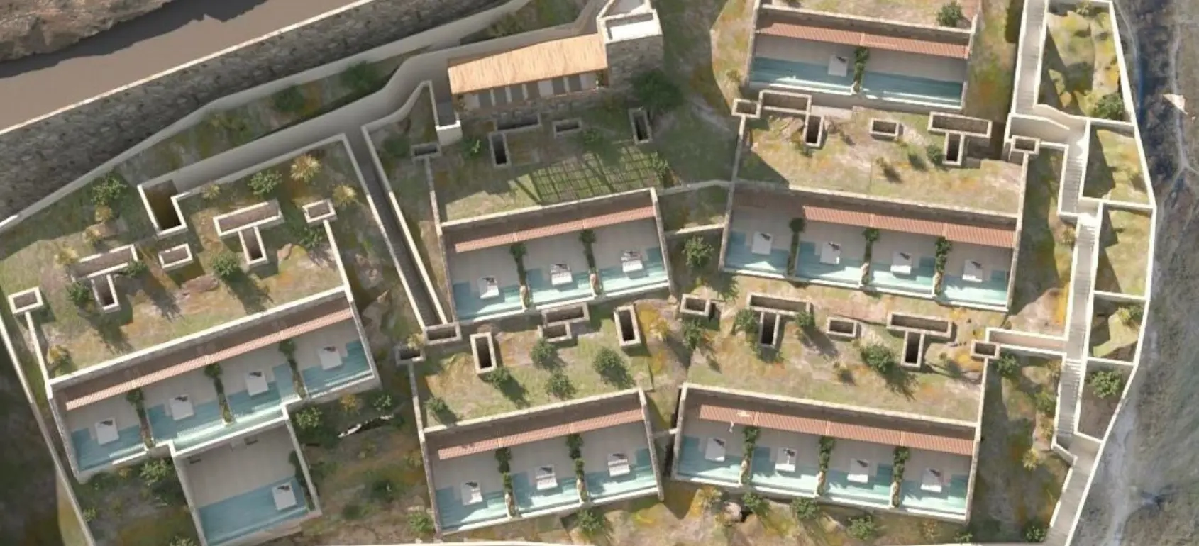 The property will feature 27 apartments, swimming pools, a reception area, restaurant, spa, event hall, and underground auxiliary spaces.