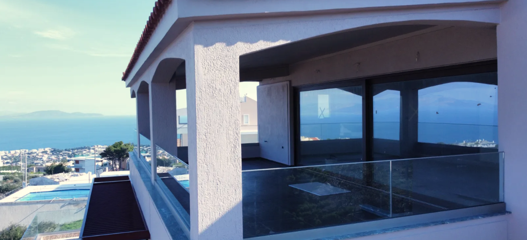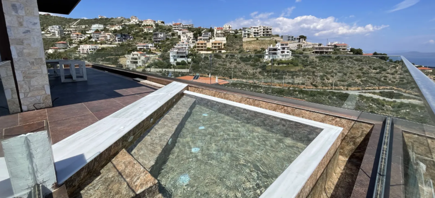Set within an exclusive enclave of distinguished residences, this outstanding smart villa embodies the very essence of contemporary luxury, offering an exceptional lifestyle defined by privacy, elegance, and breathtaking sea views. Arranged over three floors and an attic, the property reveals beautifully proportioned interiors, where refined design meets modern sophistication. Expansive living spaces are bathed in natural light, seamlessly extending towards the horizon, while a stylish fireplace enhances the atmosphere with warmth and understated luxury. The villa currently offers two exquisite master suites, with the potential to create additional bespoke living or sleeping areas, allowing complete flexibility to tailor the residence to individual requirements. Outdoors, the property unfolds into a private oasis designed for both relaxation and entertaining. A stunning swimming pool takes center stage, complemented by an elegant BBQ and a jacuzzi area, ideal for hosting in style. The landscaped gardens provide a serene and secluded setting, surrounded by lush greenery and enhancing the sense of exclusivity. Further features include generous storage spaces and an outdoor garage with the possibility of adding a covered structure, ensuring both practicality and convenience. Ideally positioned in a peaceful and secure environment, within close proximity to everyday amenities, the villa enjoys a privileged setting among prestigious homes, offering both discretion and accessibility. This remarkable residence presents a rare opportunity to acquire a property of true distinction, where sophisticated living, smart technology, and natural beauty combine to create an exceptional coastal retreat.