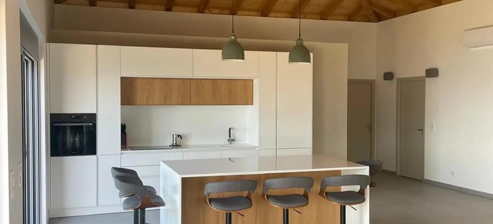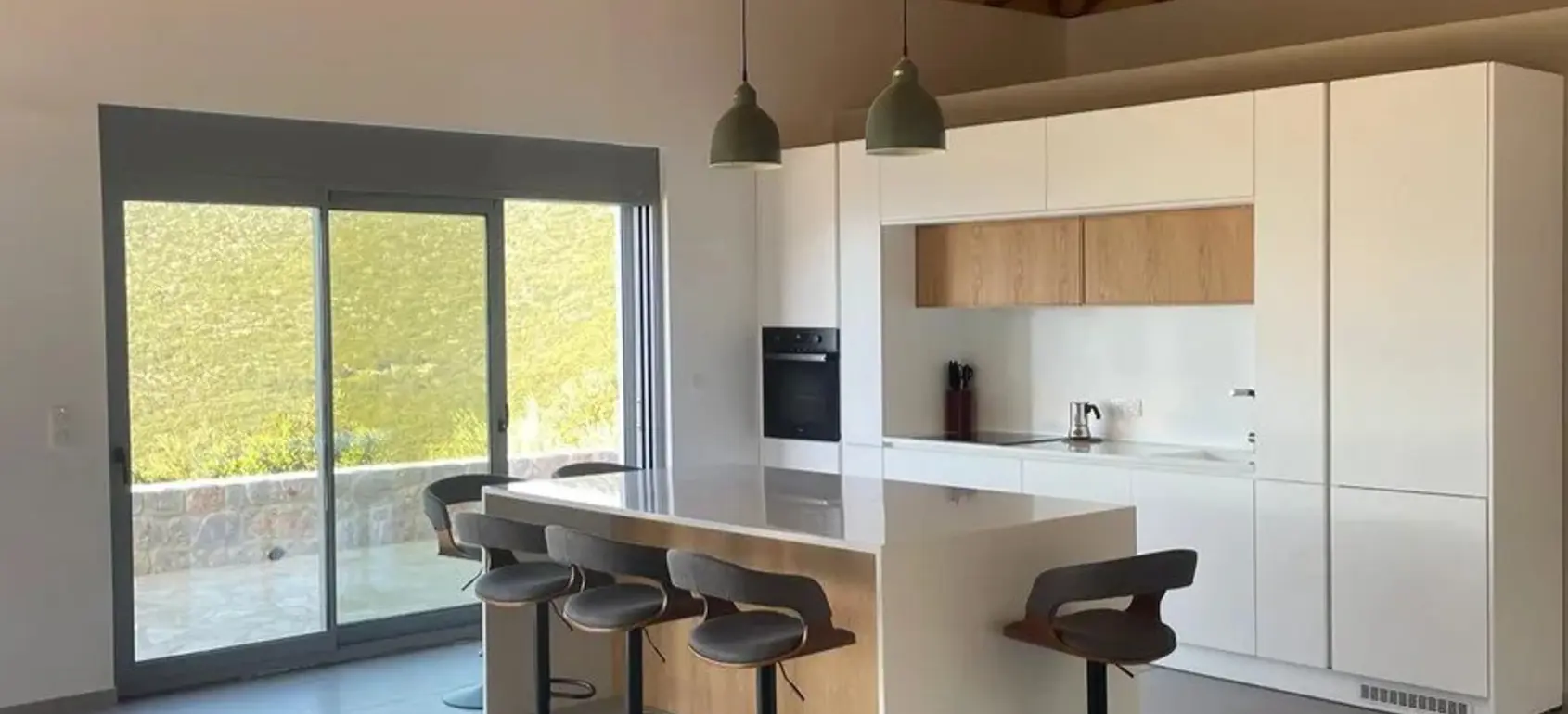 This brand new single-storey villa of 190 m² offers a refined blend of contemporary design and natural beauty, nestled in a peaceful and unspoilt environment overlooking the stunning bay of Leonidio. From the moment you arrive, you are welcomed by a large, bright, and airy living space, where expansive openings frame breathtaking sea views and flood the interior with natural light. Fully equipped with high-end modern amenities, the villa has been designed to provide both comfort and elegance. The open-plan living room seamlessly connects with a stylish, fully fitted kitchen, creating a warm and inviting atmosphere ideal for everyday living as well as entertaining. Clean architectural lines and carefully selected materials enhance the sense of space and sophistication throughout the property. The villa features three spacious double bedrooms, each offering a calm and relaxing ambiance. The master suite benefits from its own private bathroom, ensuring privacy and comfort, while the additional bedrooms share beautifully appointed facilities, all finished to a high standard. Outside, the property continues to impress with generous open spaces designed to make the most of its exceptional setting. A large private parking area accommodating up to six vehicles adds practicality and convenience, while the surrounding environment guarantees peace and privacy. Located just a 10-minute walk from the sea, this villa offers the perfect balance between seclusion and accessibility. With its breathtaking views, modern comforts, and privileged location near Leonidio, it represents an exceptional opportunity to enjoy a sophisticated Mediterranean lifestyle. |