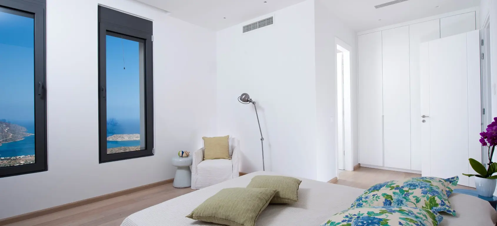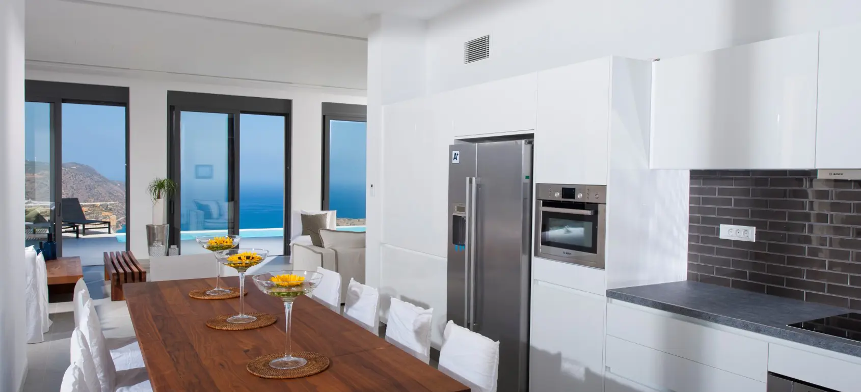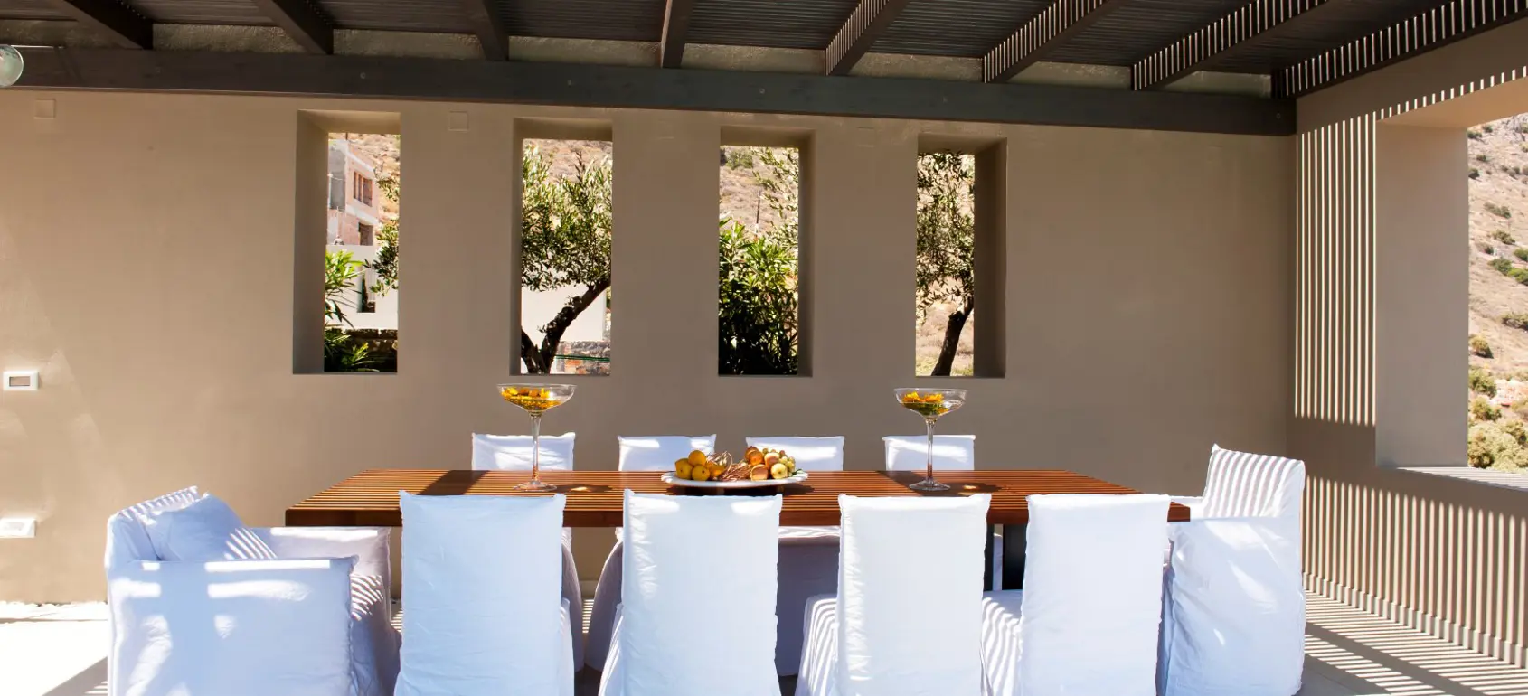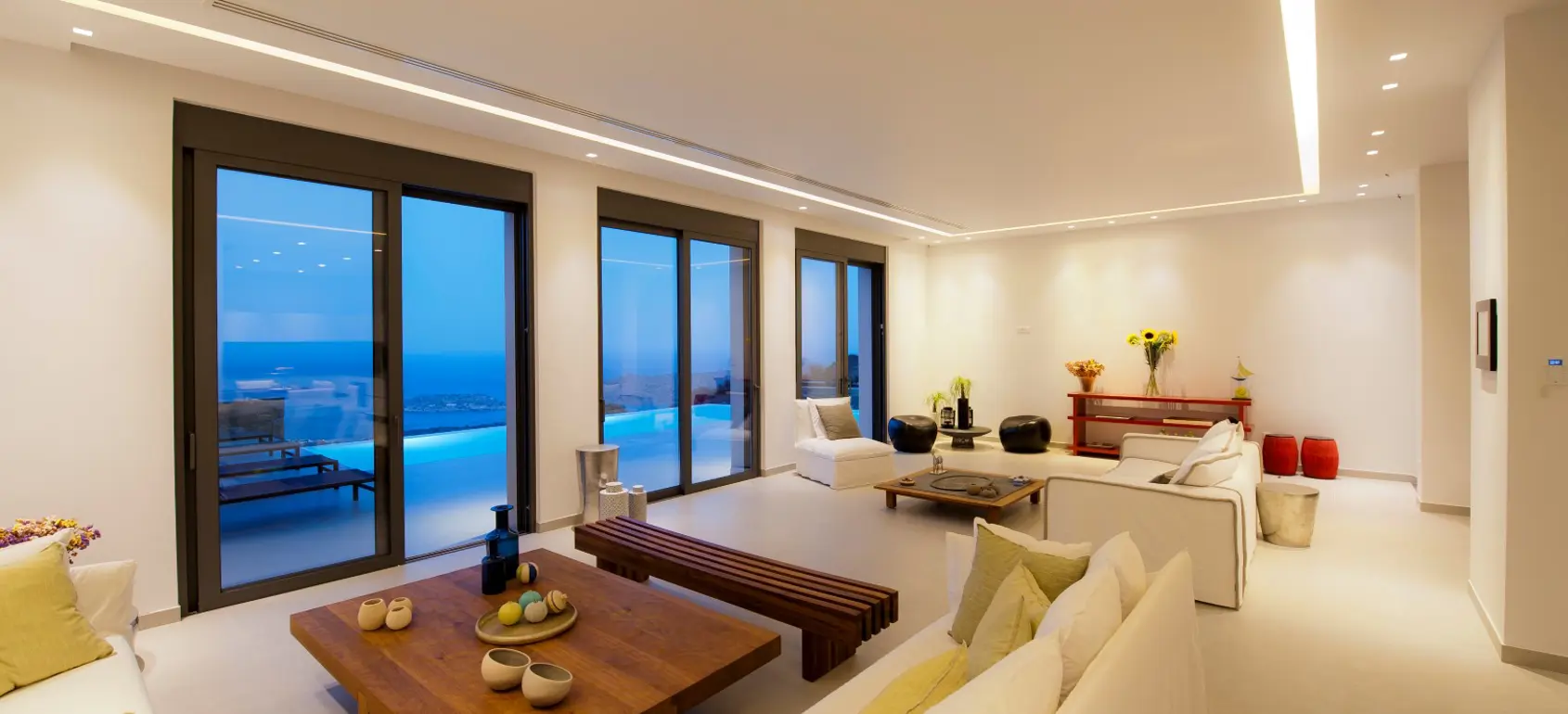 With stunning views over the sea and embraced by the beauties of Cretan nature, the villa is within a tranquil environment offering privacy and enormous spaces.