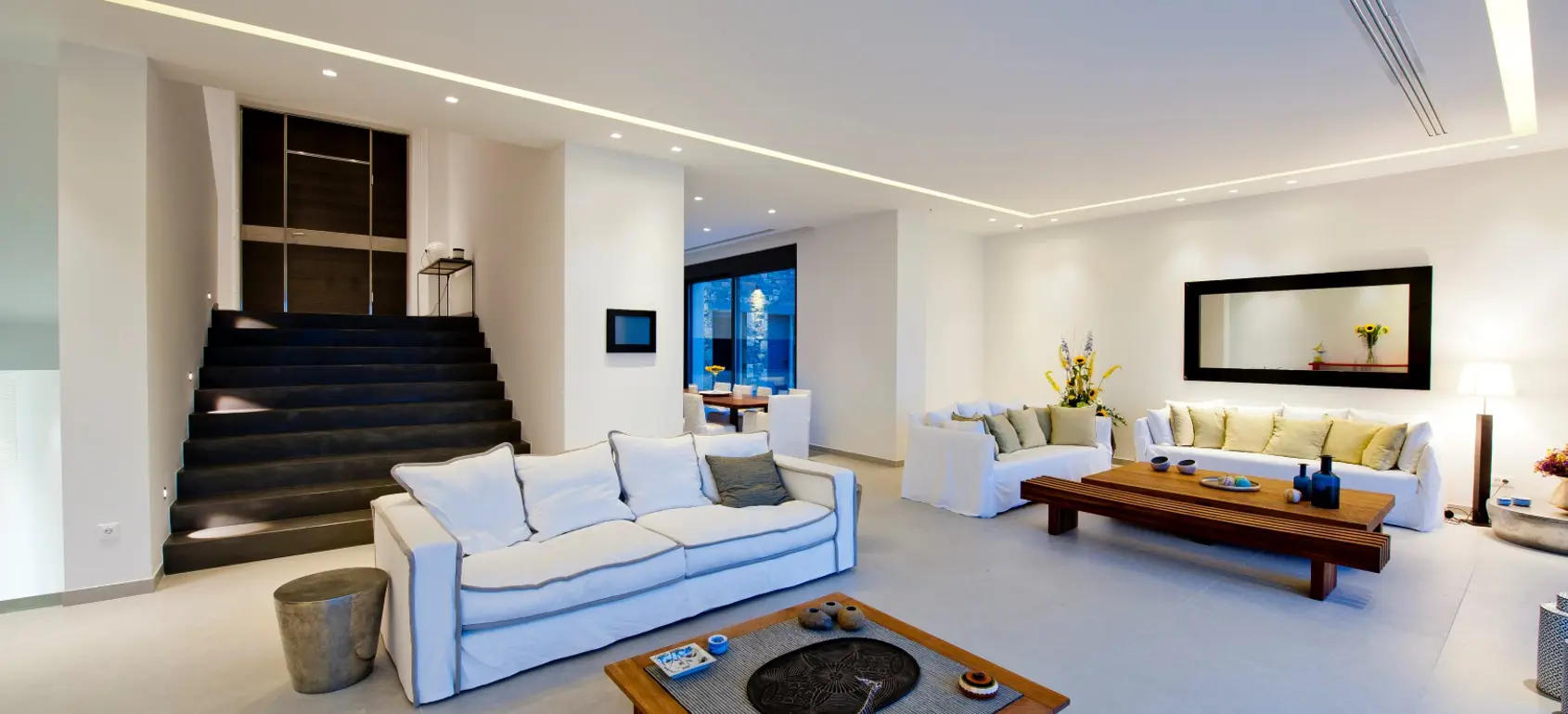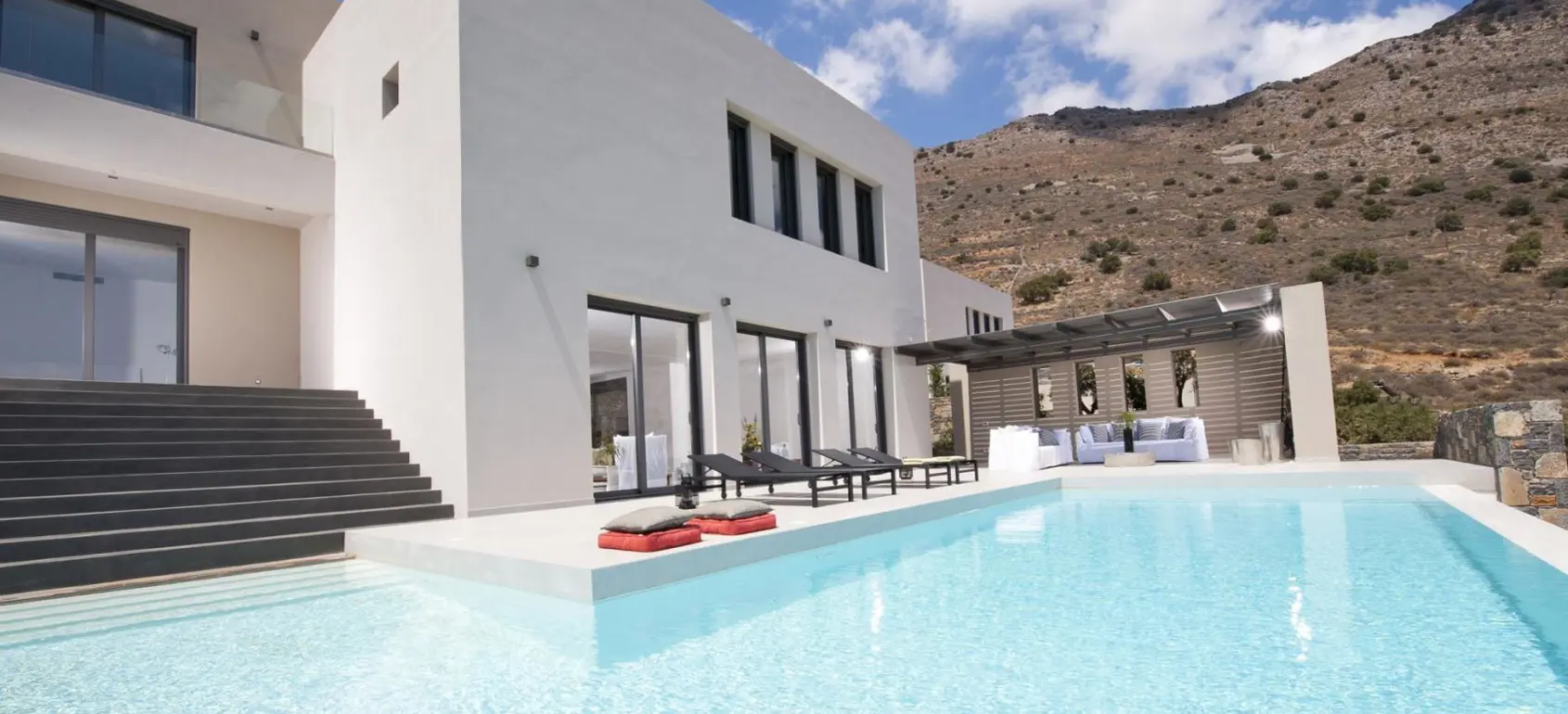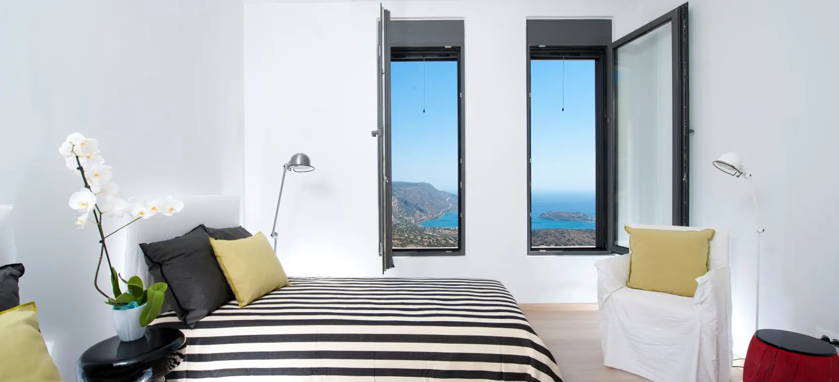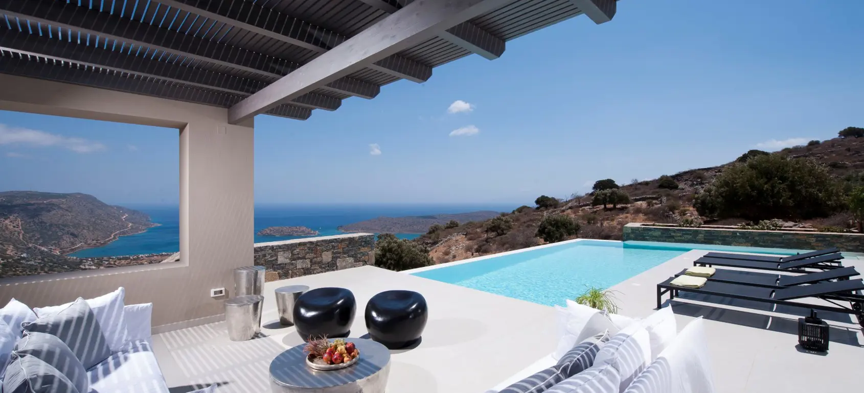 With stunning views over the sea and embraced by the beauties of Cretan nature, the villa is within a tranquil environment offering privacy and enormous spaces.
