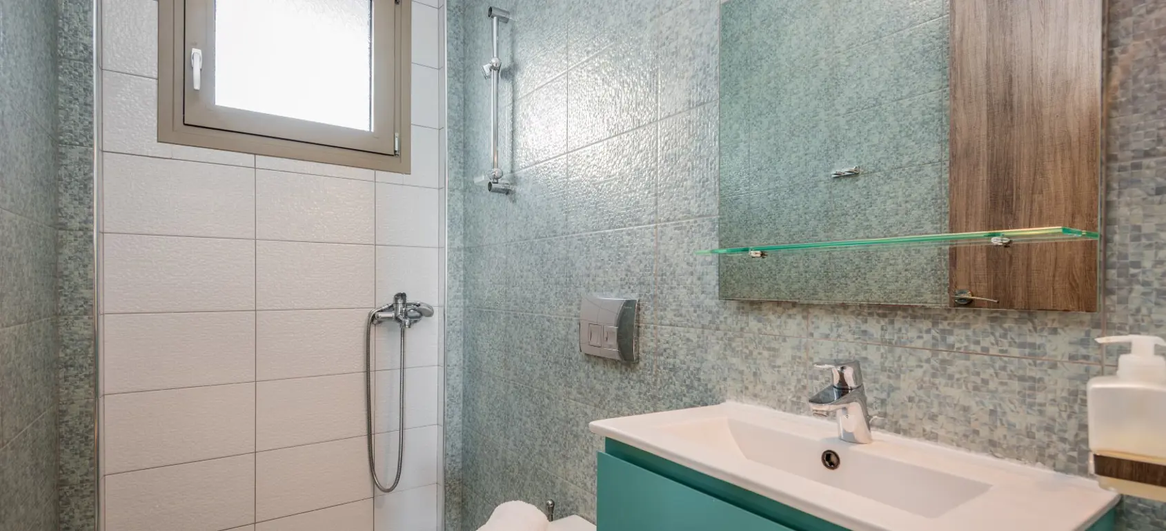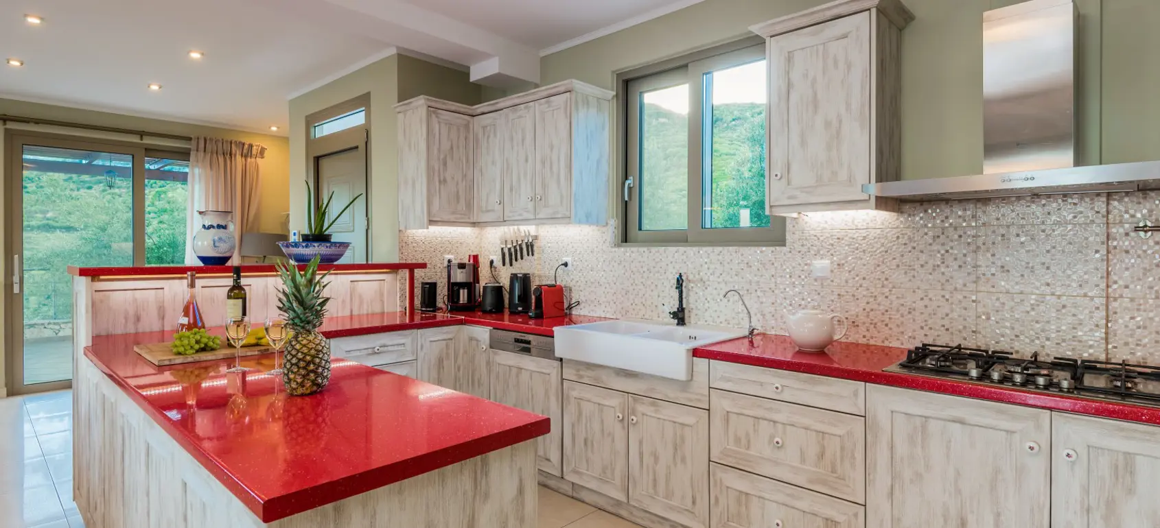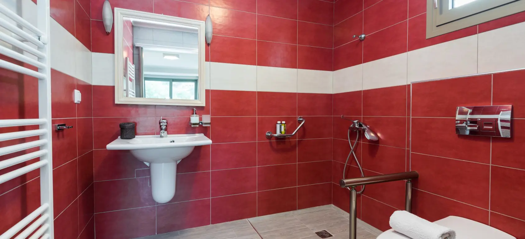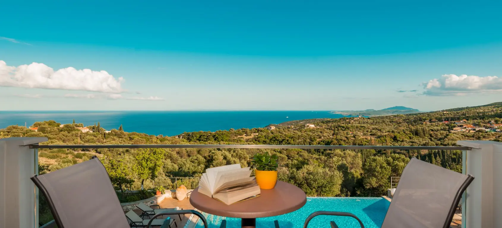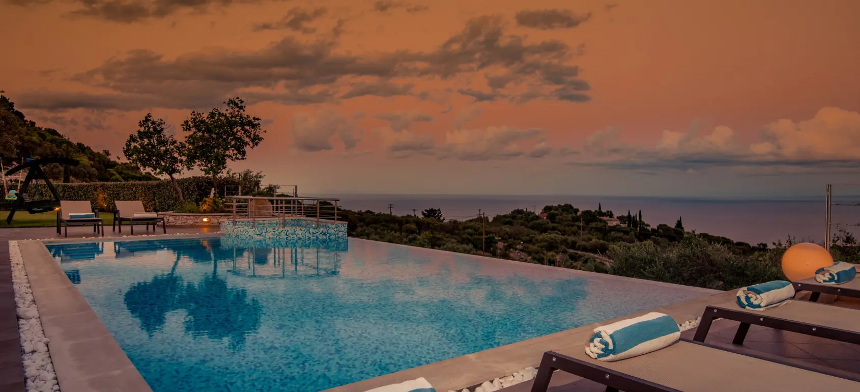 The villa has five bedrooms, all en-suite. There is also a separate family/guests bathroom on the ground floor, equipped with a shower.it is a two story house. The villa is approach by it’s own private road, there is private parking for five cars. From the hall you enter to the spacious living and dining room, with wonderful views across the unspoiled mountainside and east to the Ionian Sea.