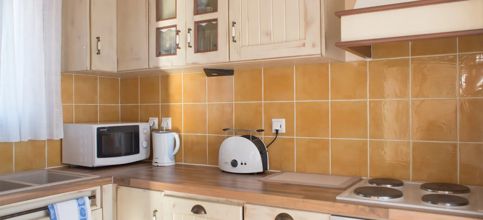 Description of the 170 sqm villa: The upper floor includes the living room and in front of the fireplace there are sofas, as well as a traditionally decorated kitchen and dining room. There are also two bedrooms and a bathroom with a hydro massage shower. At the lower floor there are two bedrooms and a bathroom with a hydro massage bathtub. Moreover, there is a second living room.
