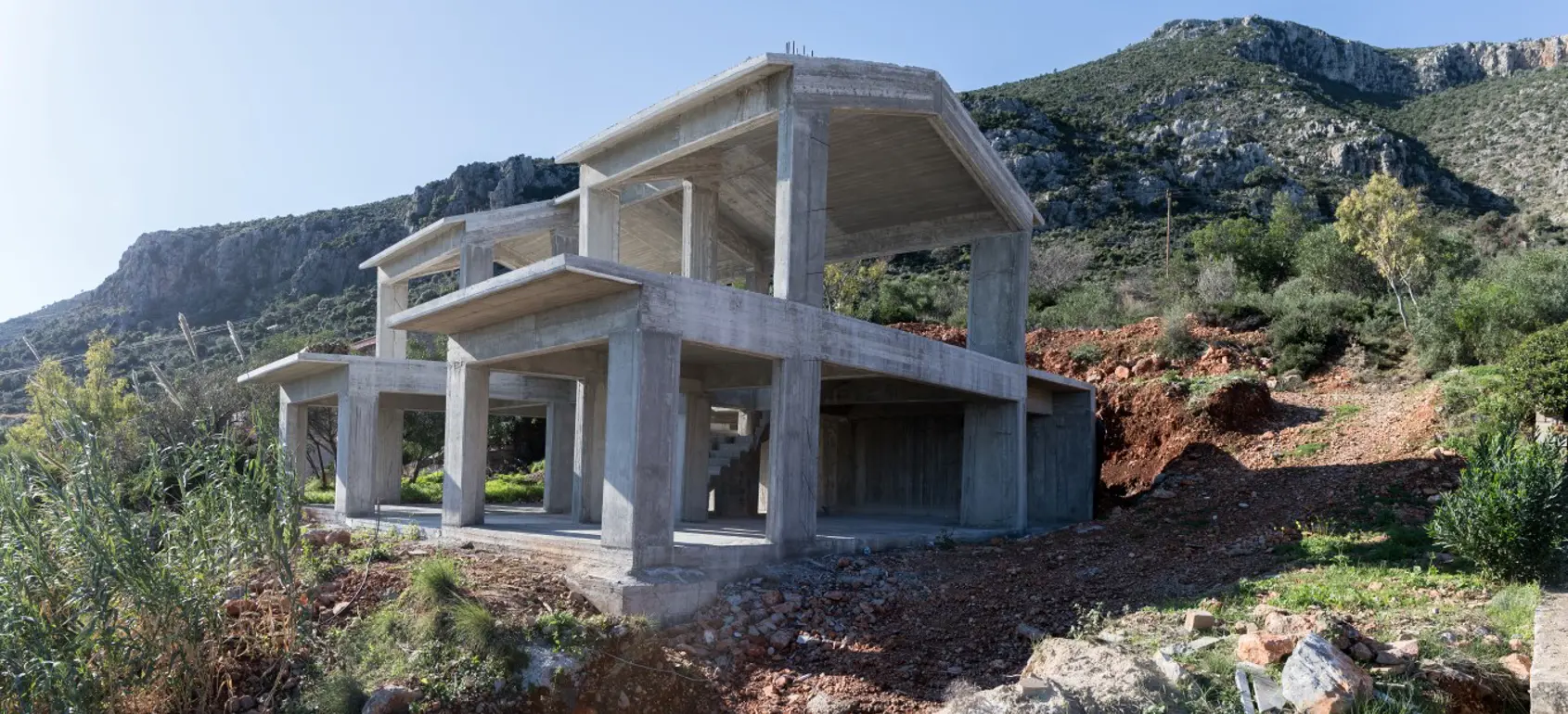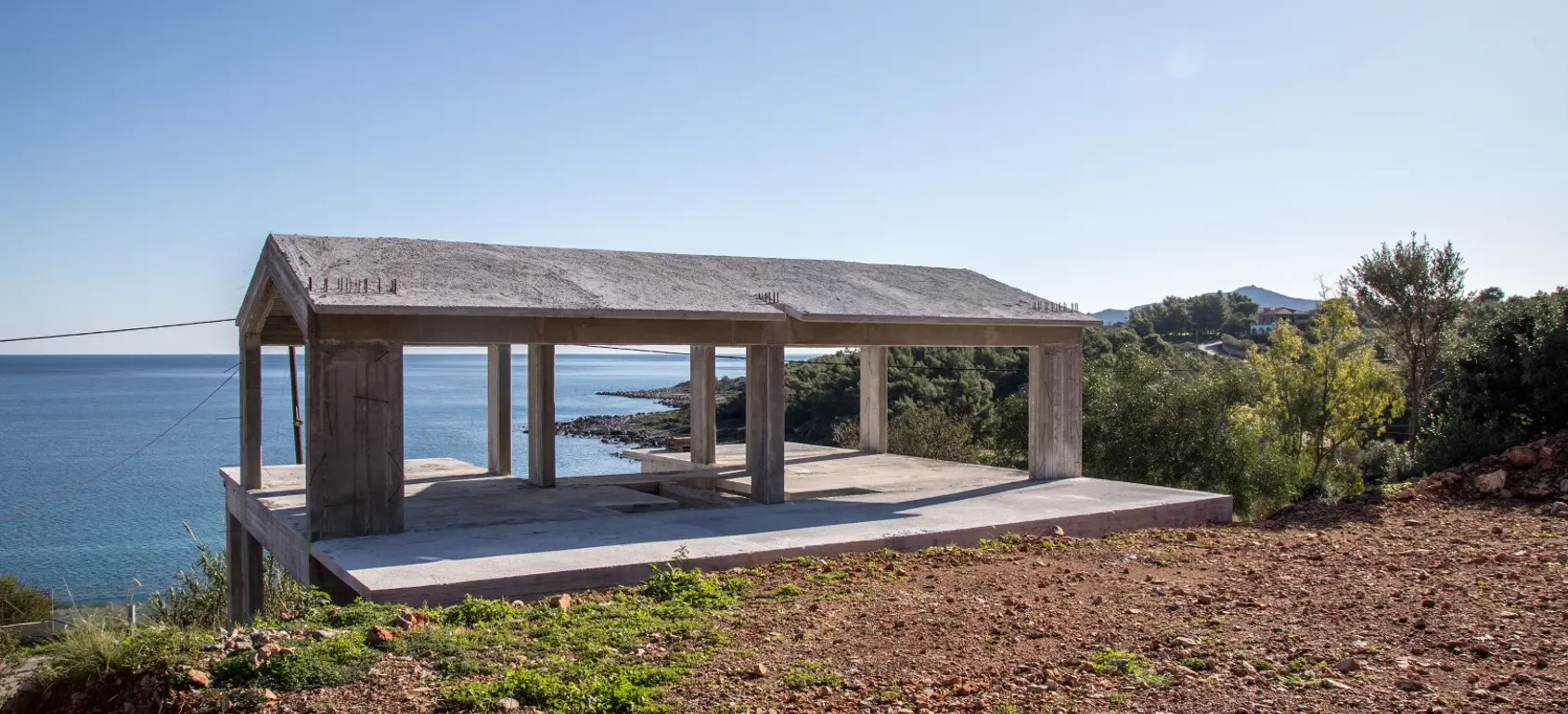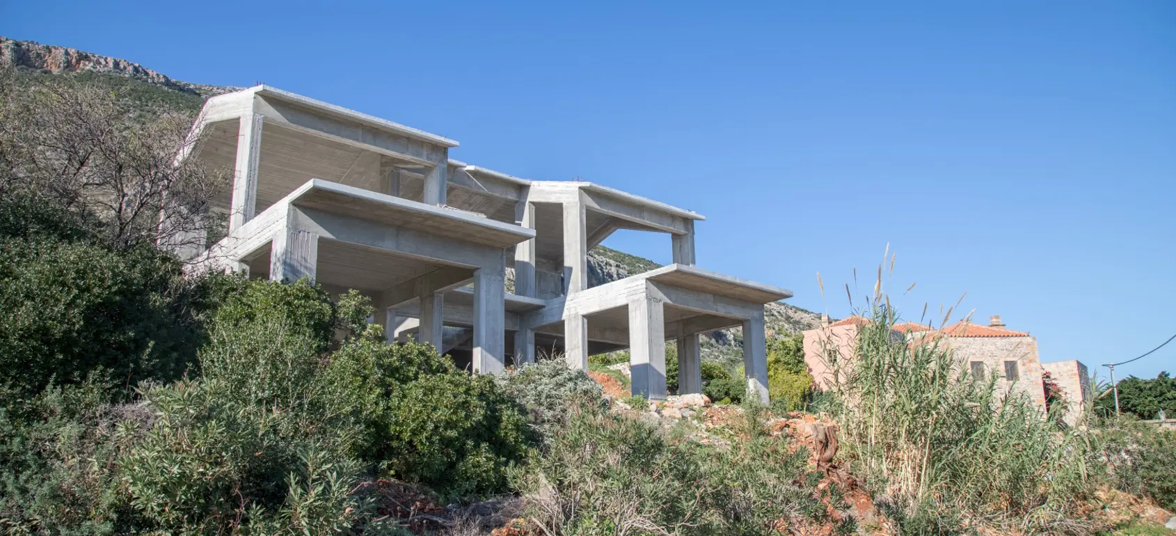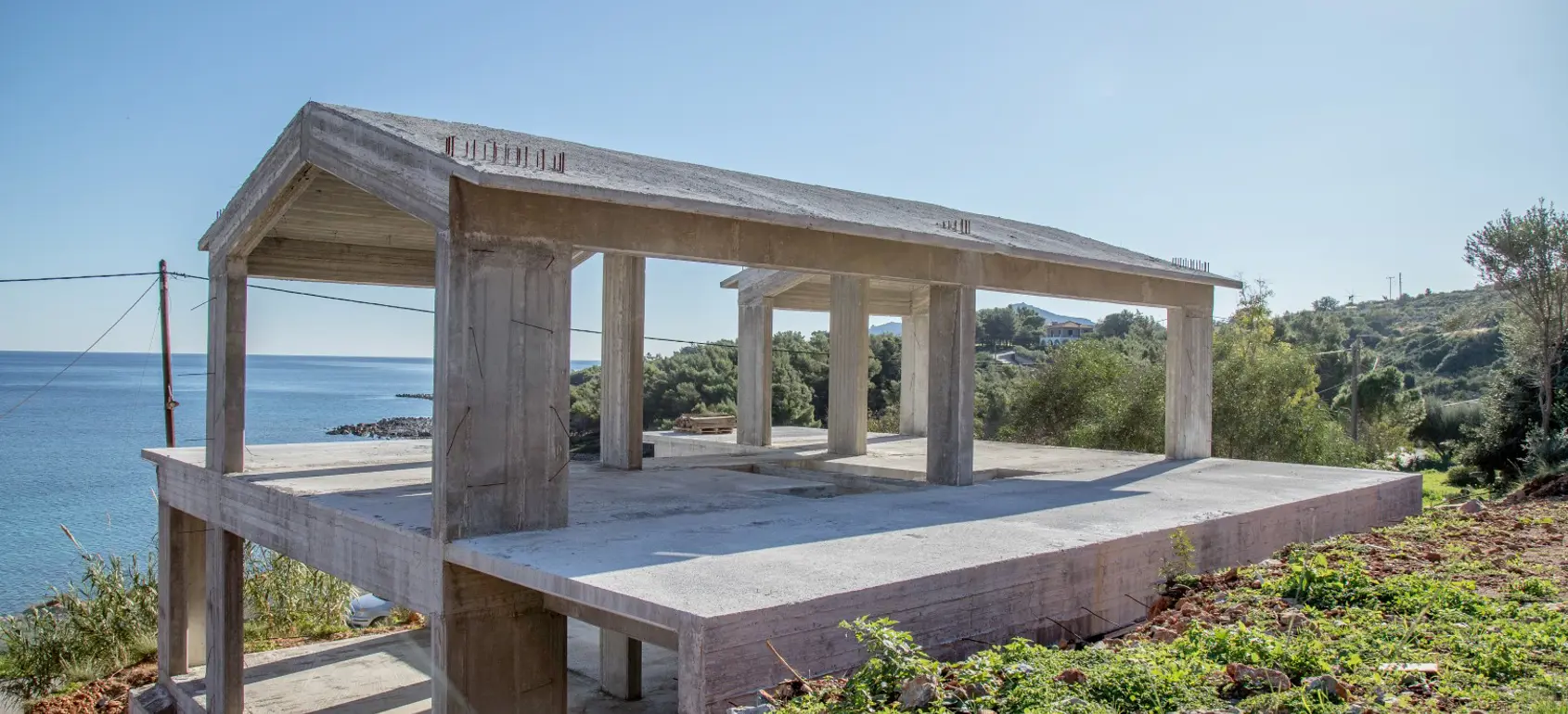 Unique and private villa for sale with panoramic 180 degree sea view, located on the south-eastern side of Peloponnese close to Monemvasia famous castle. The villa is located on a 2,019 square meters of land, after finishing the bearing structure, the construction works were stopped and the structure was left in an incomplete condition.