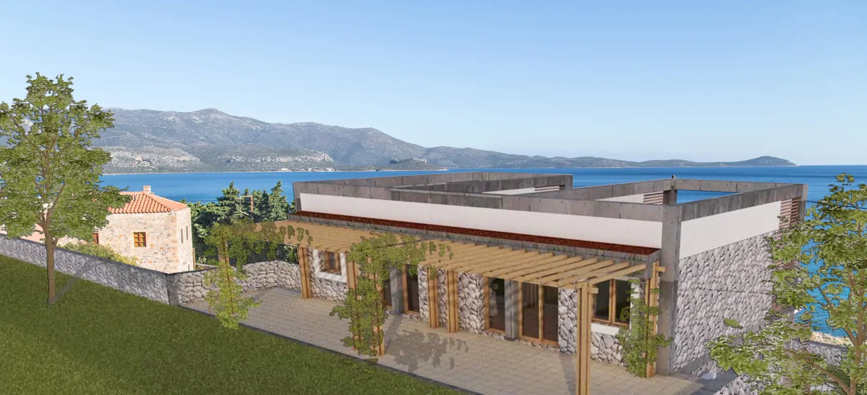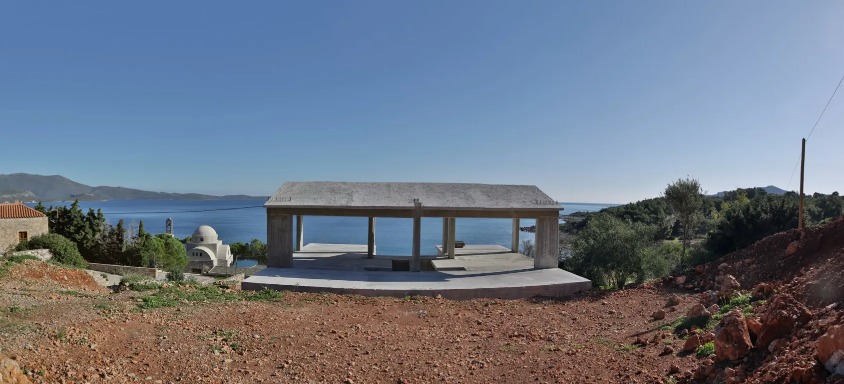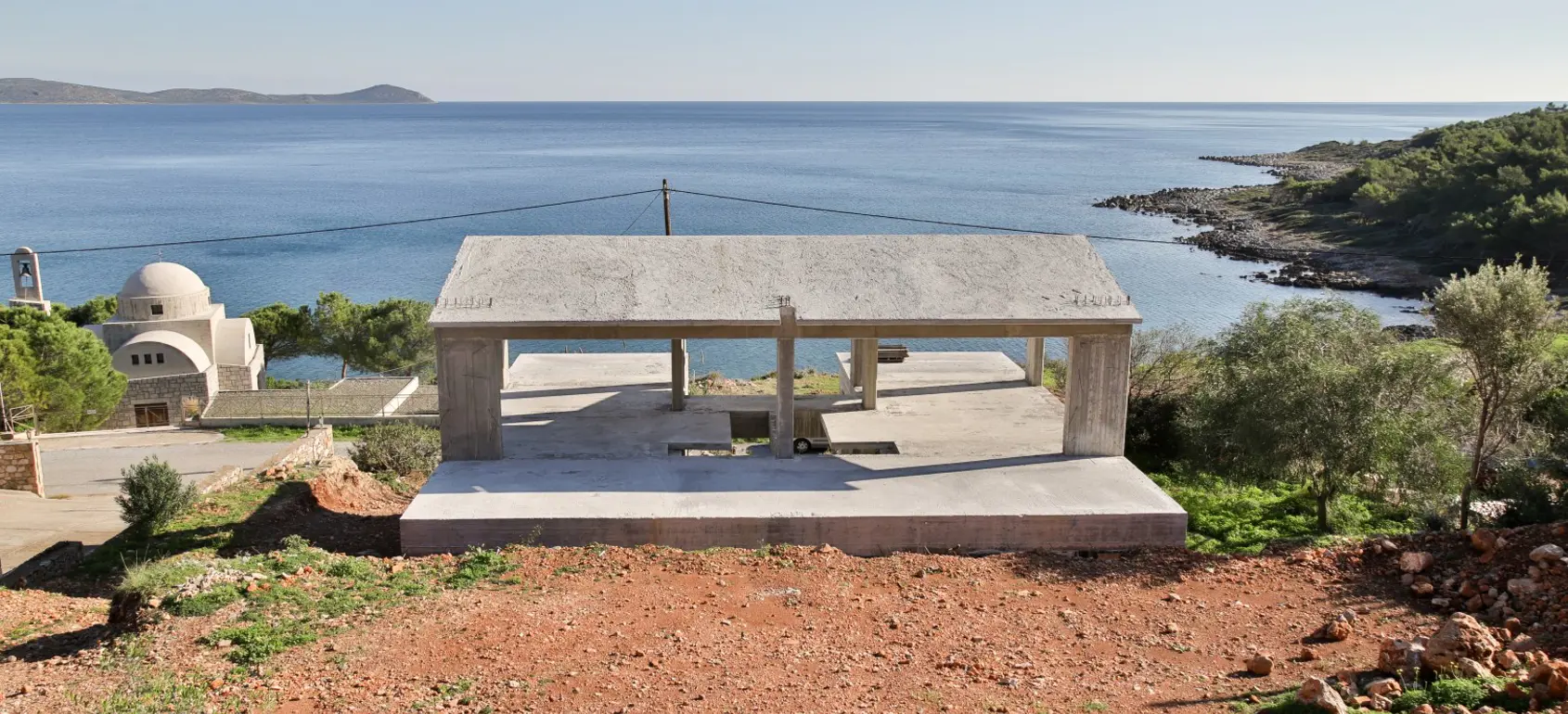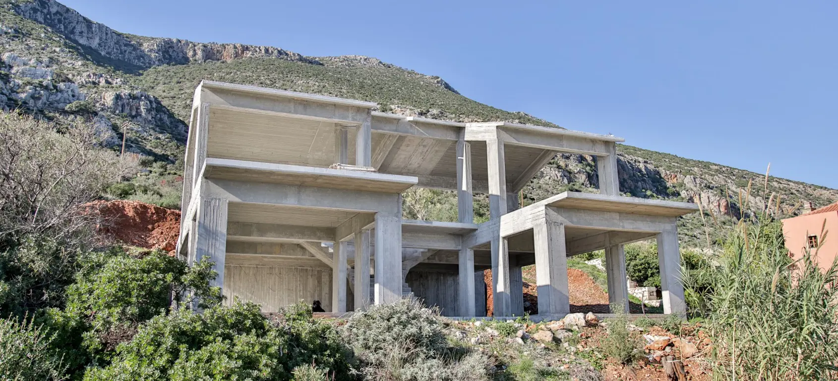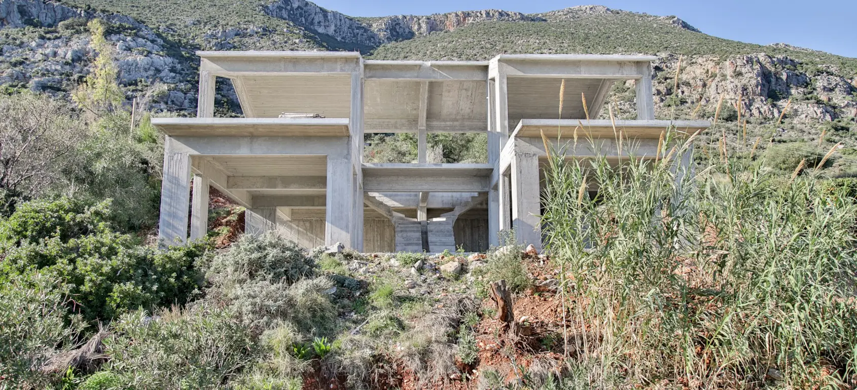 Unique and private villa for sale with panoramic 180 degree sea view, located on the south-eastern side of Peloponnese close to Monemvasia famous castle. The villa is located on a 2,019 square meters of land, after finishing the bearing structure, the construction works were stopped and the structure was left in an incomplete condition.
