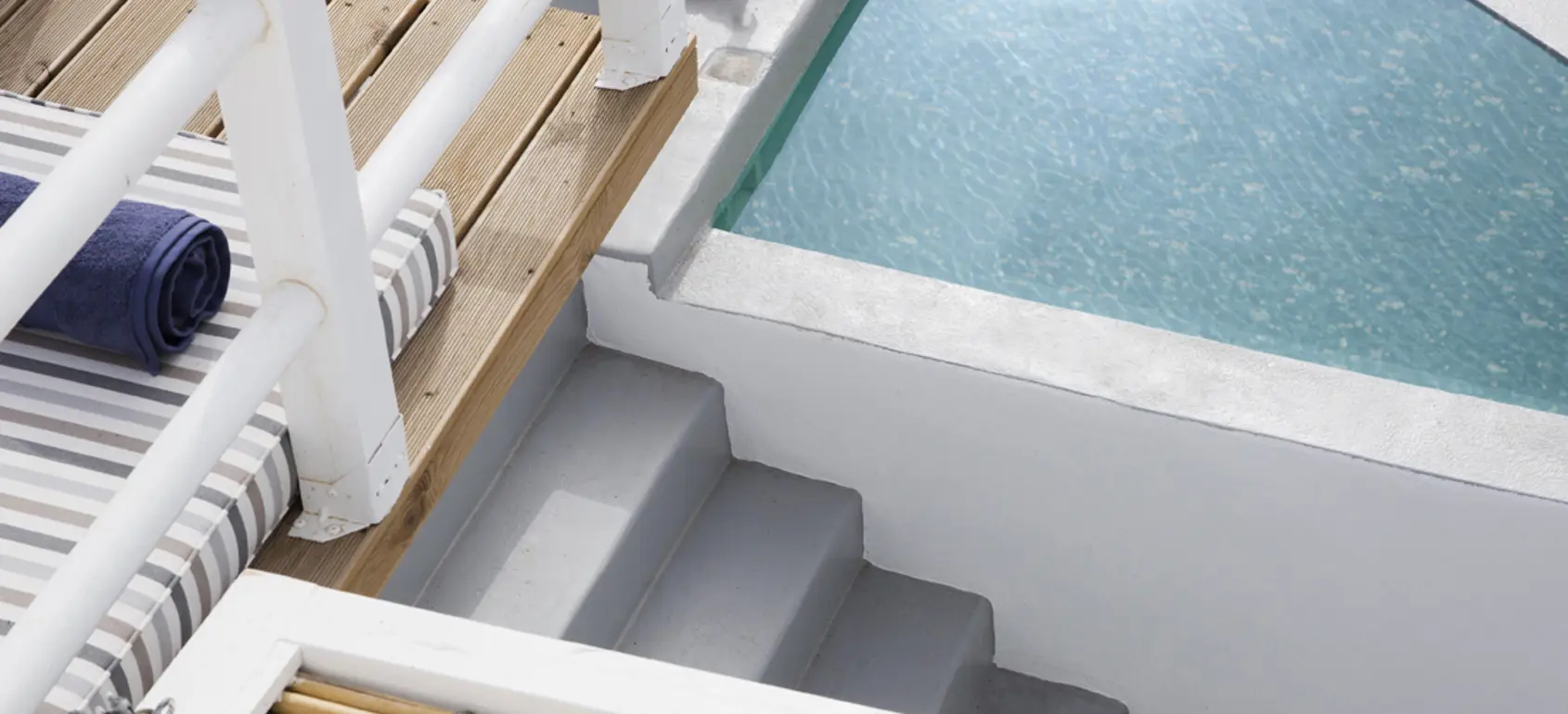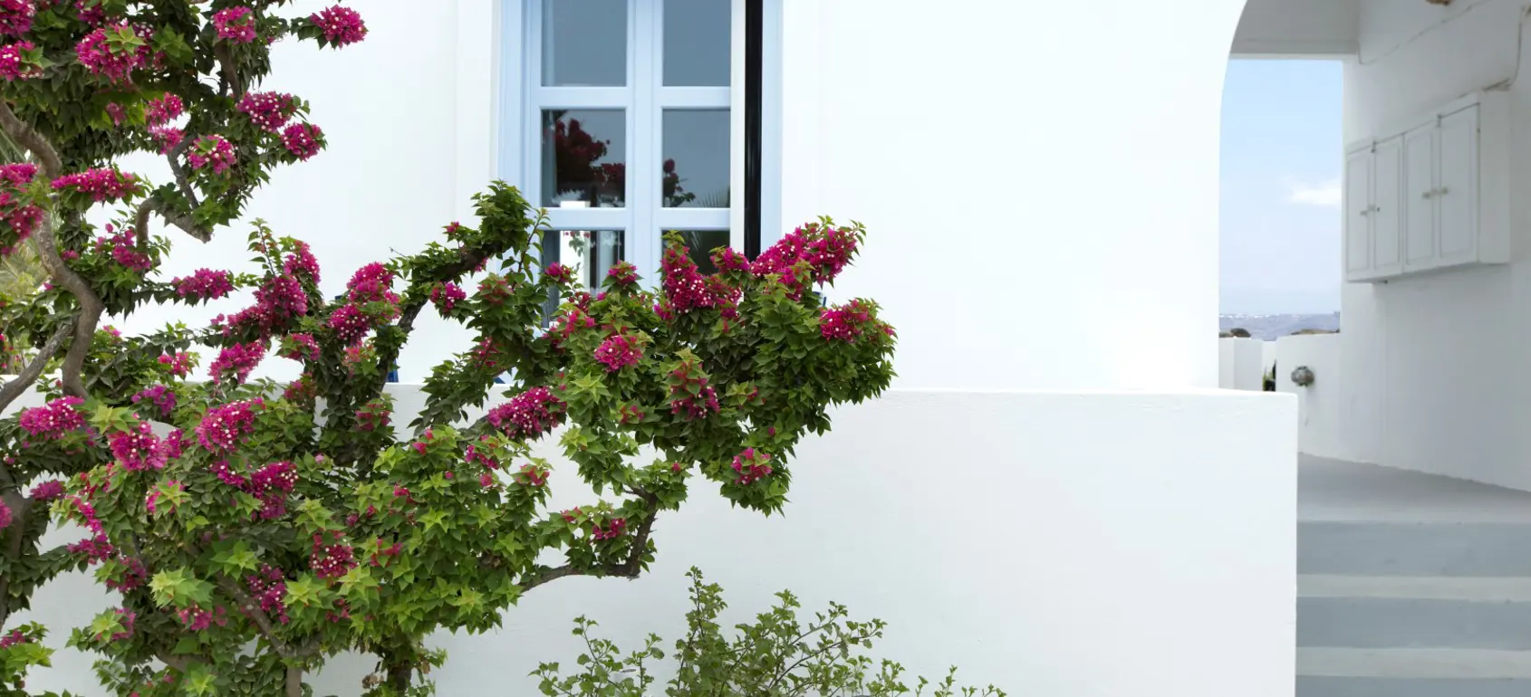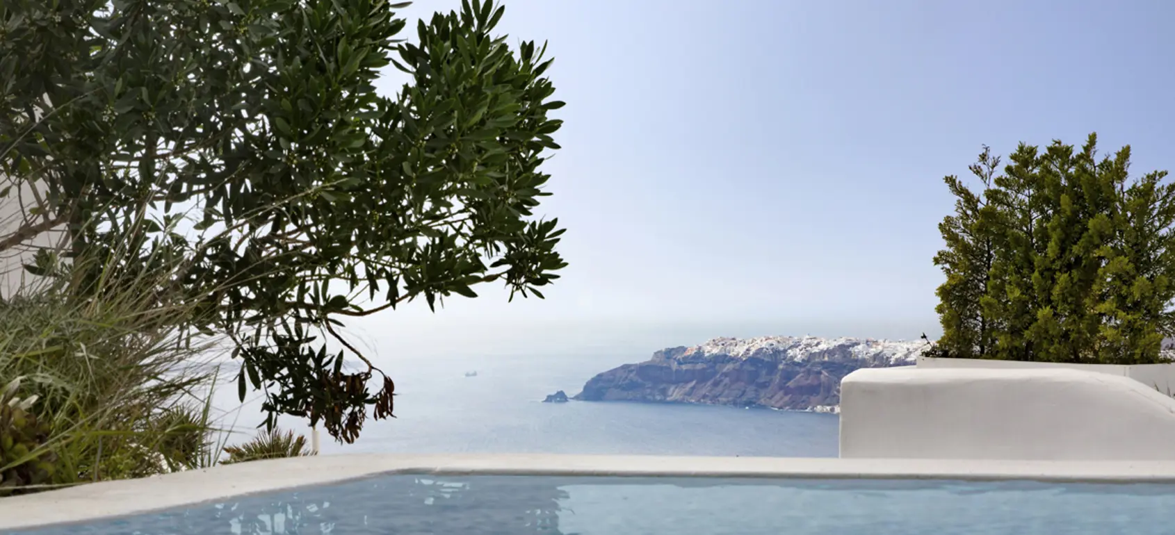 Two suites on the Caldera cliff in one of the most unspoiled parts of the island. These two individual houses of 40 square meters each provide one-of-a-kind views to the most beautiful sunset in the world, with exclusive verandas to enjoy throughout the whole day. At the same time, the other side has a view on the Eastern Aegean and the island of Anafi, and it is one of the few areas of the island where you can enjoy both sunrise and sunset. Being nested in a very exclusive condominium with other three houses, these houses give simultaneously a feeling of isolation, as well as being surrounded by the necessary amount of people. On the north part of the property, there is an unobstructed view to a beautiful vineyard, which will never be built, since its area doesn’t allow construction. A large pool in the upper house and a jacuzzi in the lower property give the possibility of enjoying the sunset while in the water, giving the feeling that you swim in the Aegean Sea. All these are surrounded by a beautiful garden which has been taken care of by professionals for many years with beautiful plants and palm trees, raising the total area of the property to 200 square meters. Moreover, in front of the houses there is a walking path which leads you to the hot spots of the island, Fira and Oia. On the other side, there is the country side road and a parking spot attached to the properties.