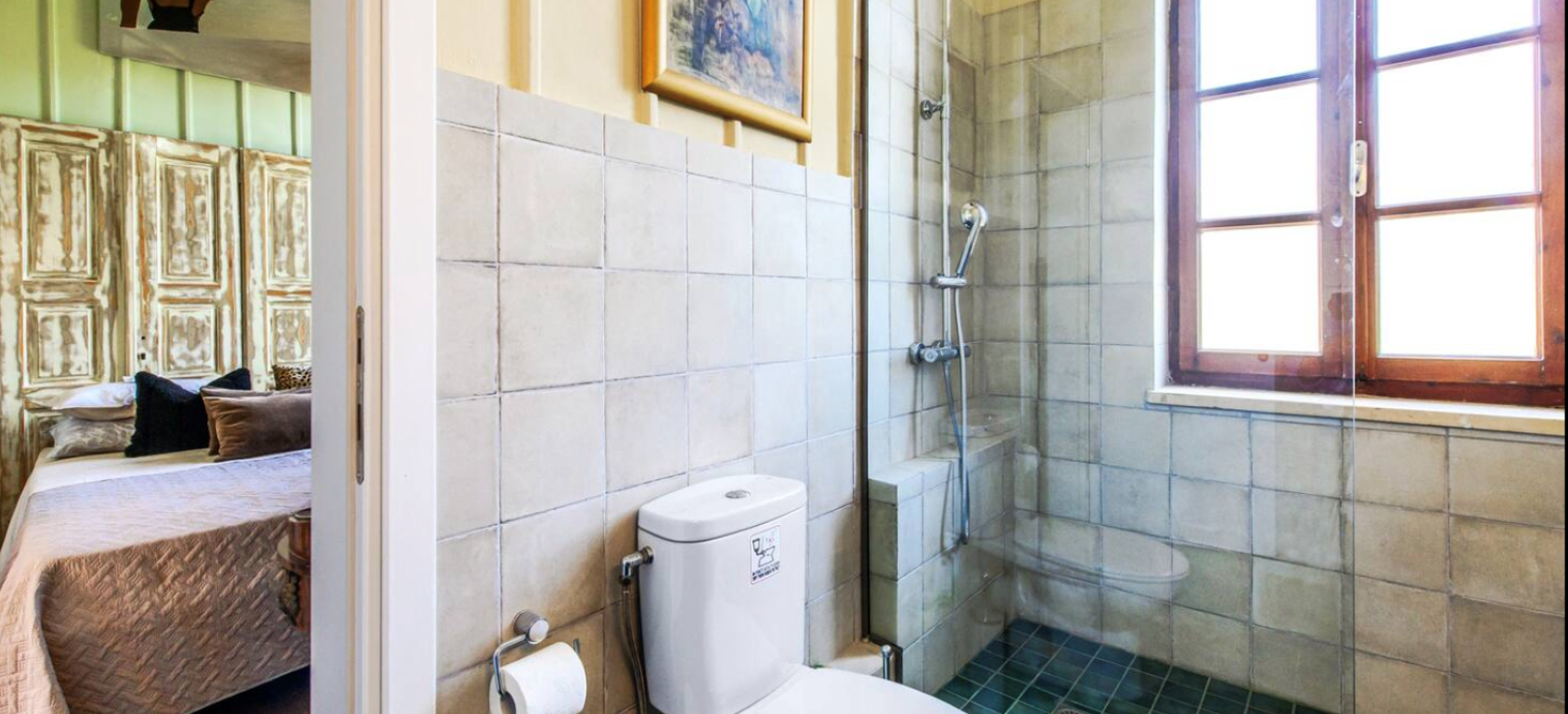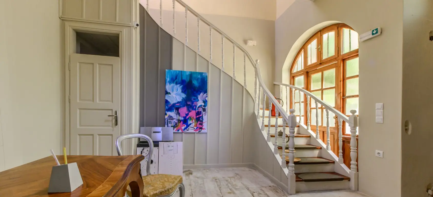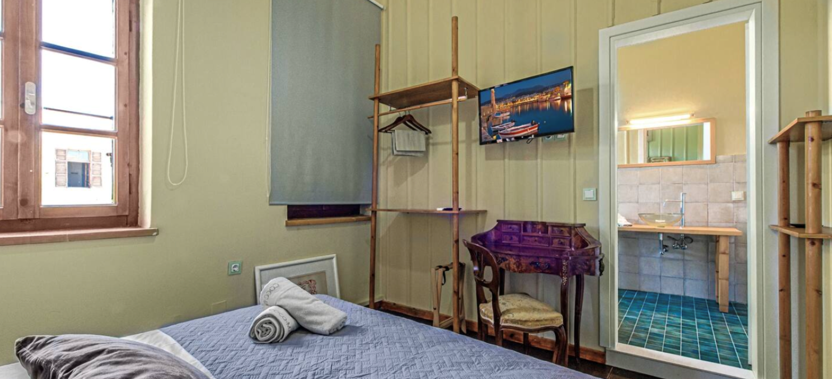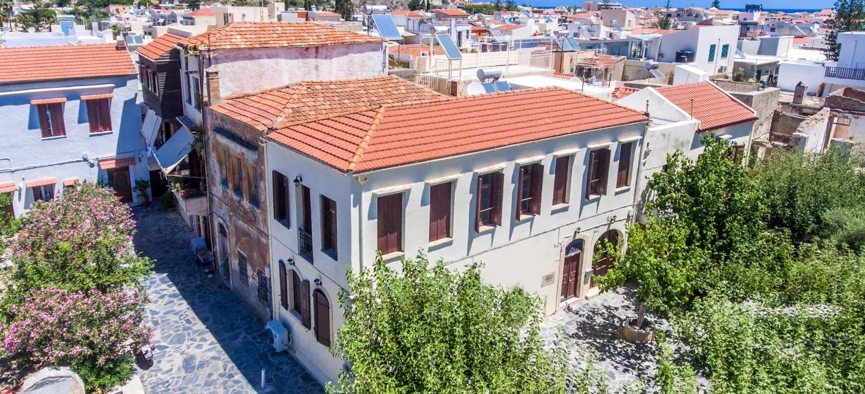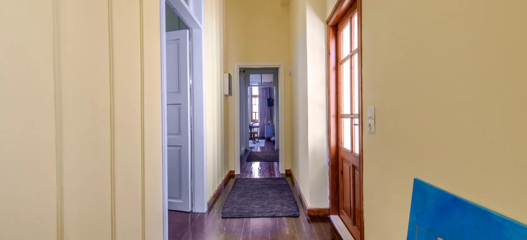 Walking distance from the sea and the area is surrounded by narrow alleys and magnificent buildings of an older era. It is a property suitable for permanent living, as well as for commercial use in the HORECA business. The building spreads on two levels, a 88,43sq.m ground floor and a 88,43sq.m first floor. The ground floor is accessed by three doors, one leading directly to a spacious living room, one in the hallway and one directly to the stairs. Upon entering through the middle door and directly into the hallway, we find the living room on the left, the kitchen, and two WCs on the right. Internal stairs are taking us to the first floor, which is occupied by two bedrooms with en-suite bathrooms. The first bedroom is gifted with 5 large windows allowing ample sunshine, while the second one has two windows. On the first floor there is also an internal patio and a storage room. From all the windows of the first floor the property offers great views of the town towards the sea. A true magnet for everyone in the city, an increasing popular spot both for locals and tourists is the place to create a magnificent home or a profitable rental business, that has lots of potential for growth.