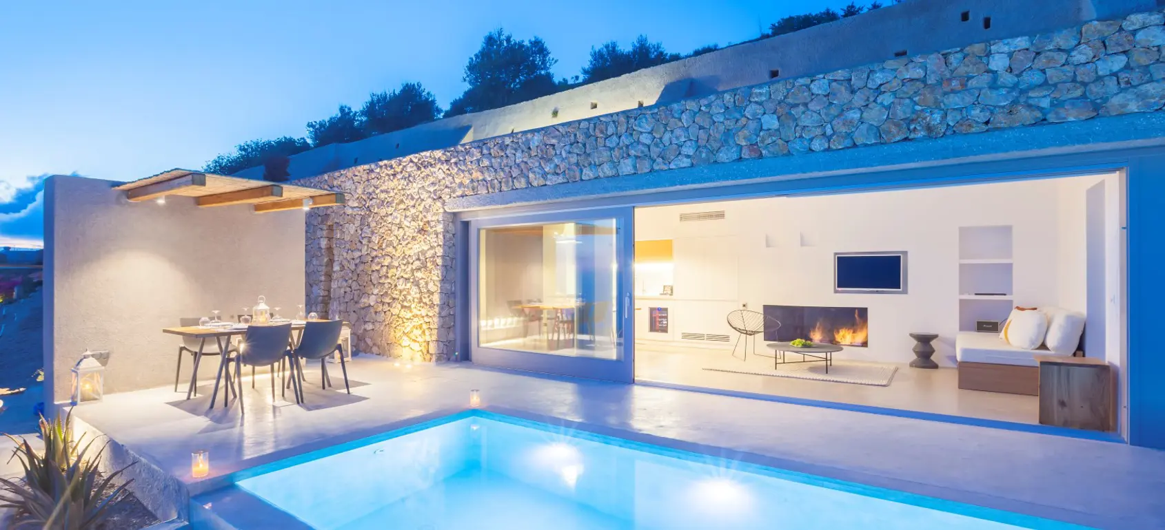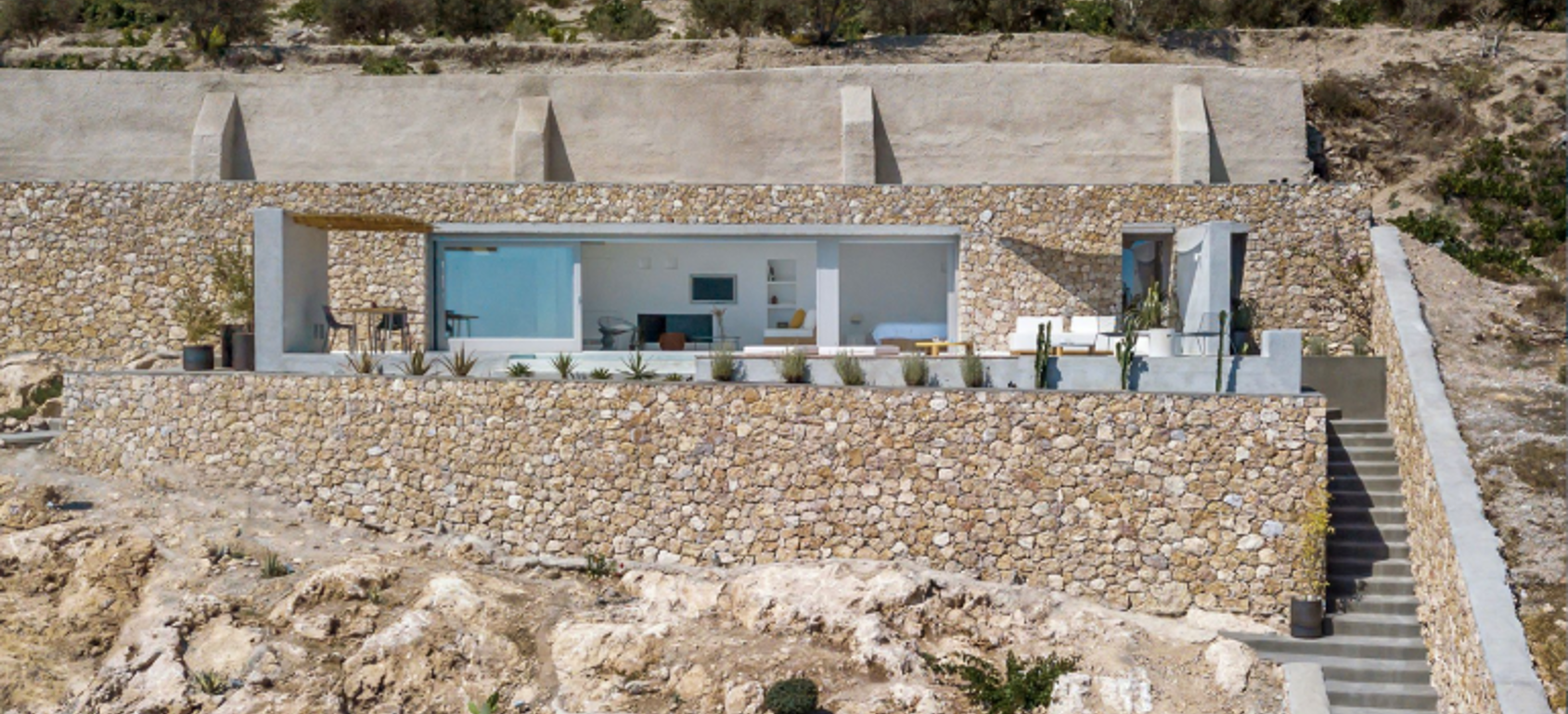 The estate can exceptionally be used as a private residence with a capacity to host up to 11 guests. It currently operates as a touristic accommodation with impeccable reviews and extraordinary rating. Made of raw, natural materials, like marble, stone, wood and polished concrete, it blends perfectly with the natural landscape of this UNESCO Natura 2000 protected area.