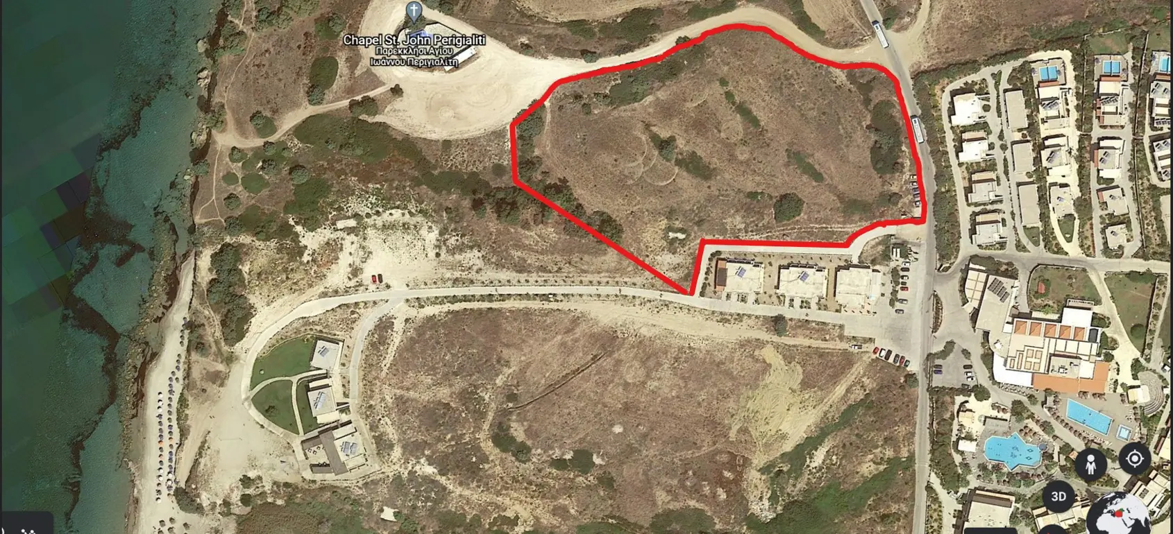 The 15,170 sqm land plot is located only a few meters from the sandy beach of Kouros close to Mastihari area. The land plot had excellent views to the sea from all its levels, the direct access to the municipal road offers an easy connection to electricity and water supplies. There are all the necessary certificates from all the authorities (forest dept., archaeology etc.) for any development. The building coefficient is 0.2% and it is allowed to build 2,896sq.m.