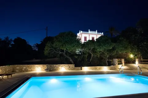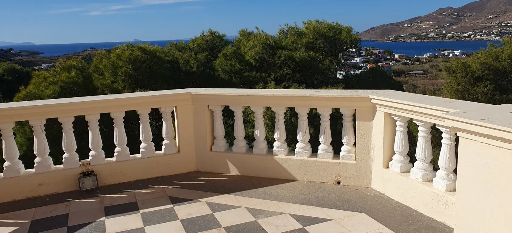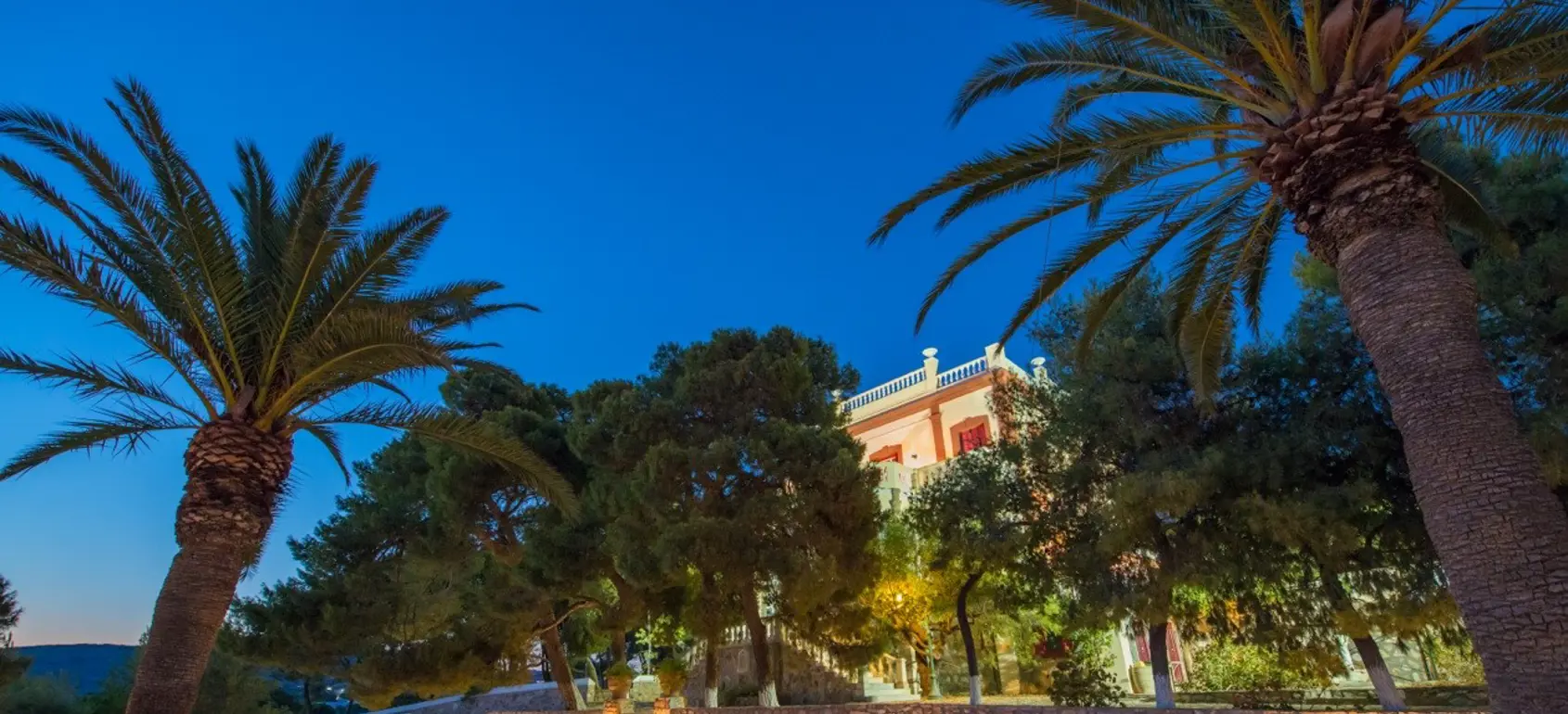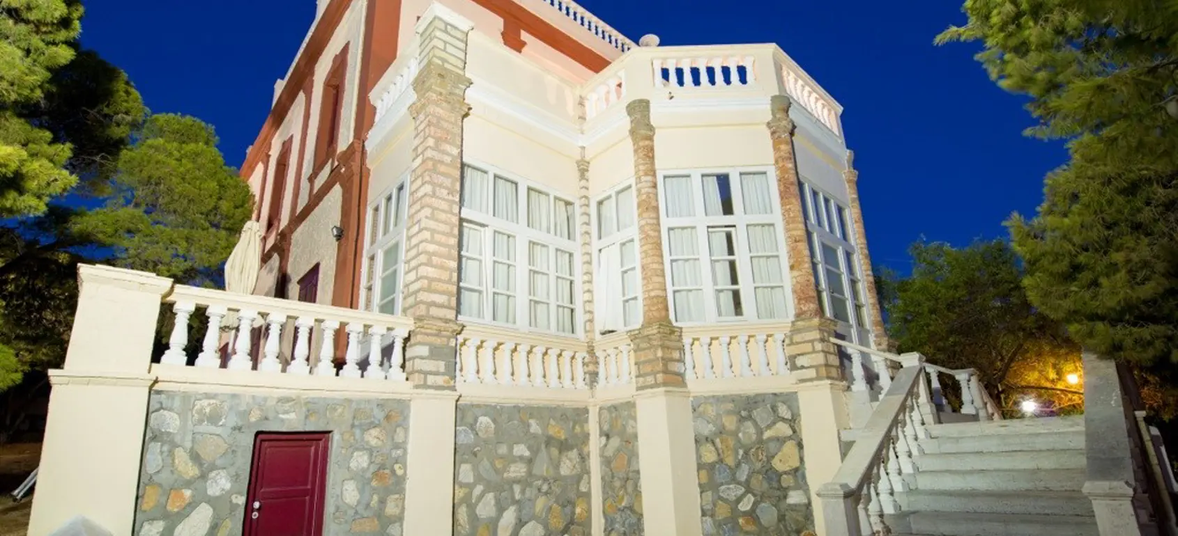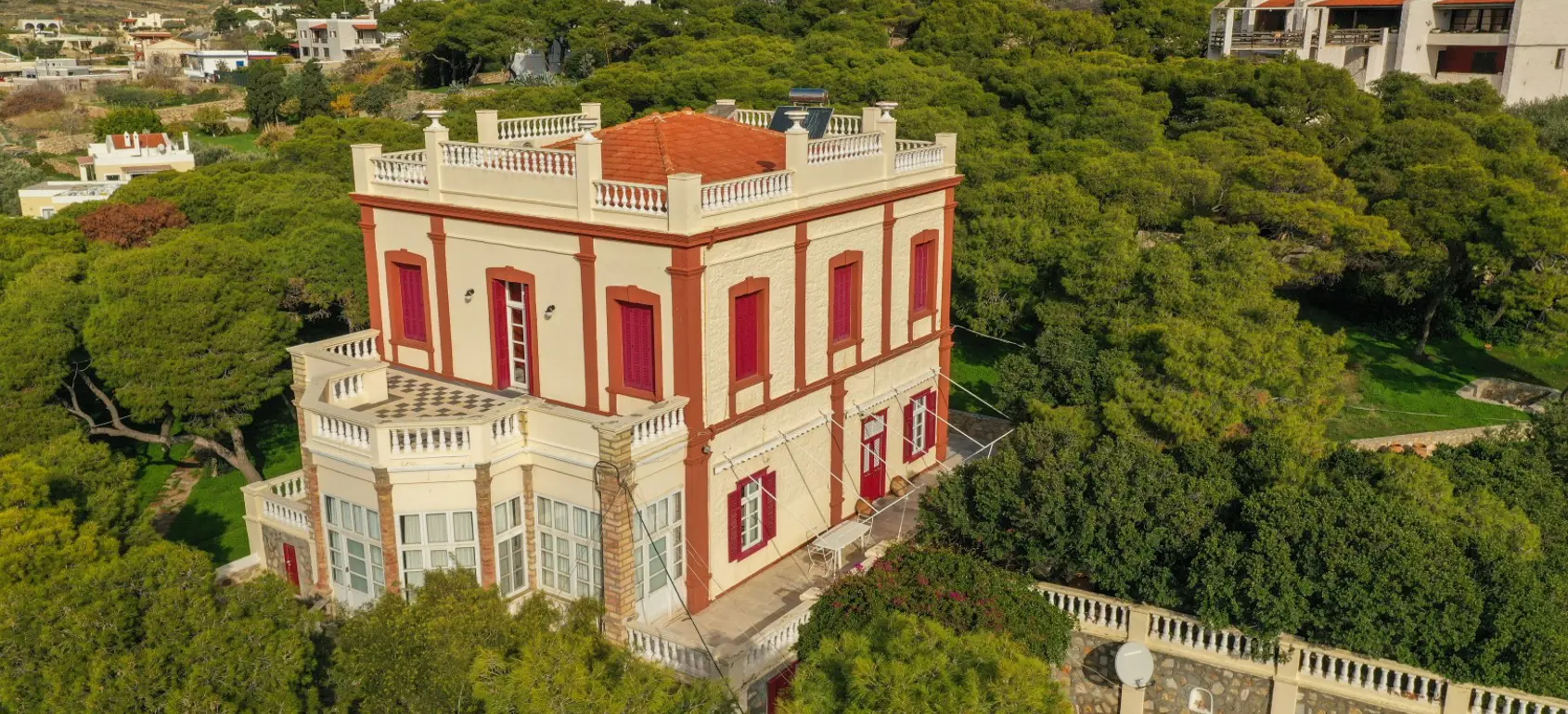 Built in 1835 in the village of Poseidonia by one of the leading and most respected families of the island and used as a summer house, it has been constantly lived in since then by direct descendants of the family. The house, set in beautiful and secluded gardens with many trees, is in the centre of this much sought after and charming village on the south west coast of the island, and is well known for its historical houses owned by ship owners, industrialists and politicians; its tranquillity and excellent beaches.