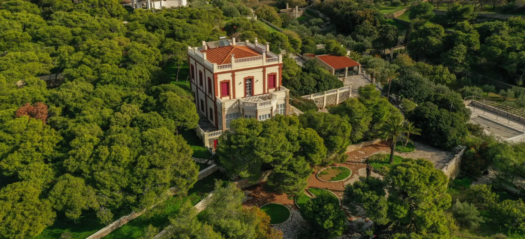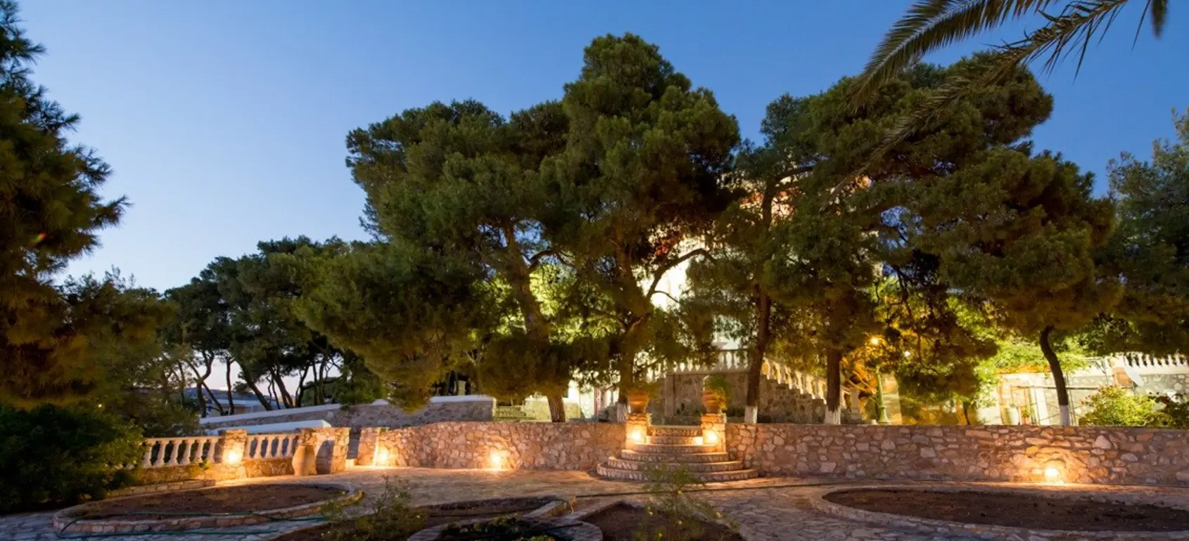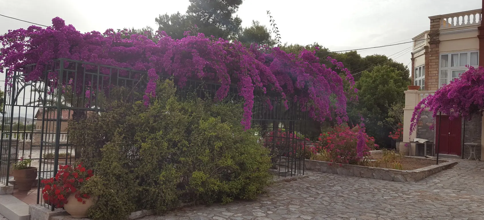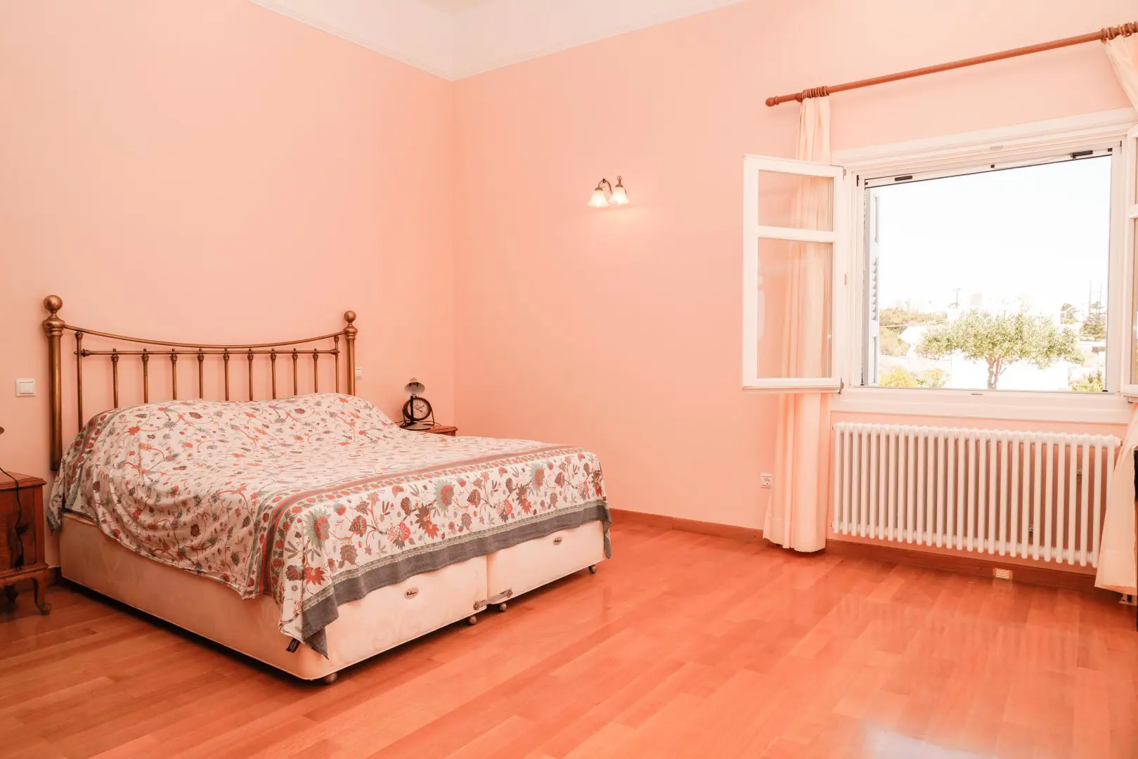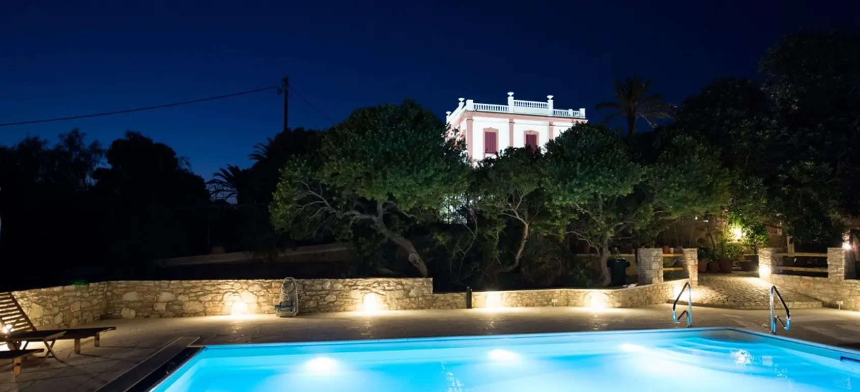 Built in 1835 in the village of Poseidonia by one of the leading and most respected families of the island and used as a summer house, it has been constantly lived in since then by direct descendants of the family. The house, set in beautiful and secluded gardens with many trees, is in the centre of this much sought after and charming village on the south west coast of the island, and is well known for its historical houses owned by ship owners, industrialists and politicians; its tranquillity and excellent beaches.