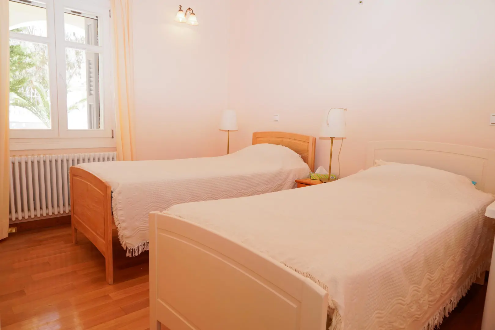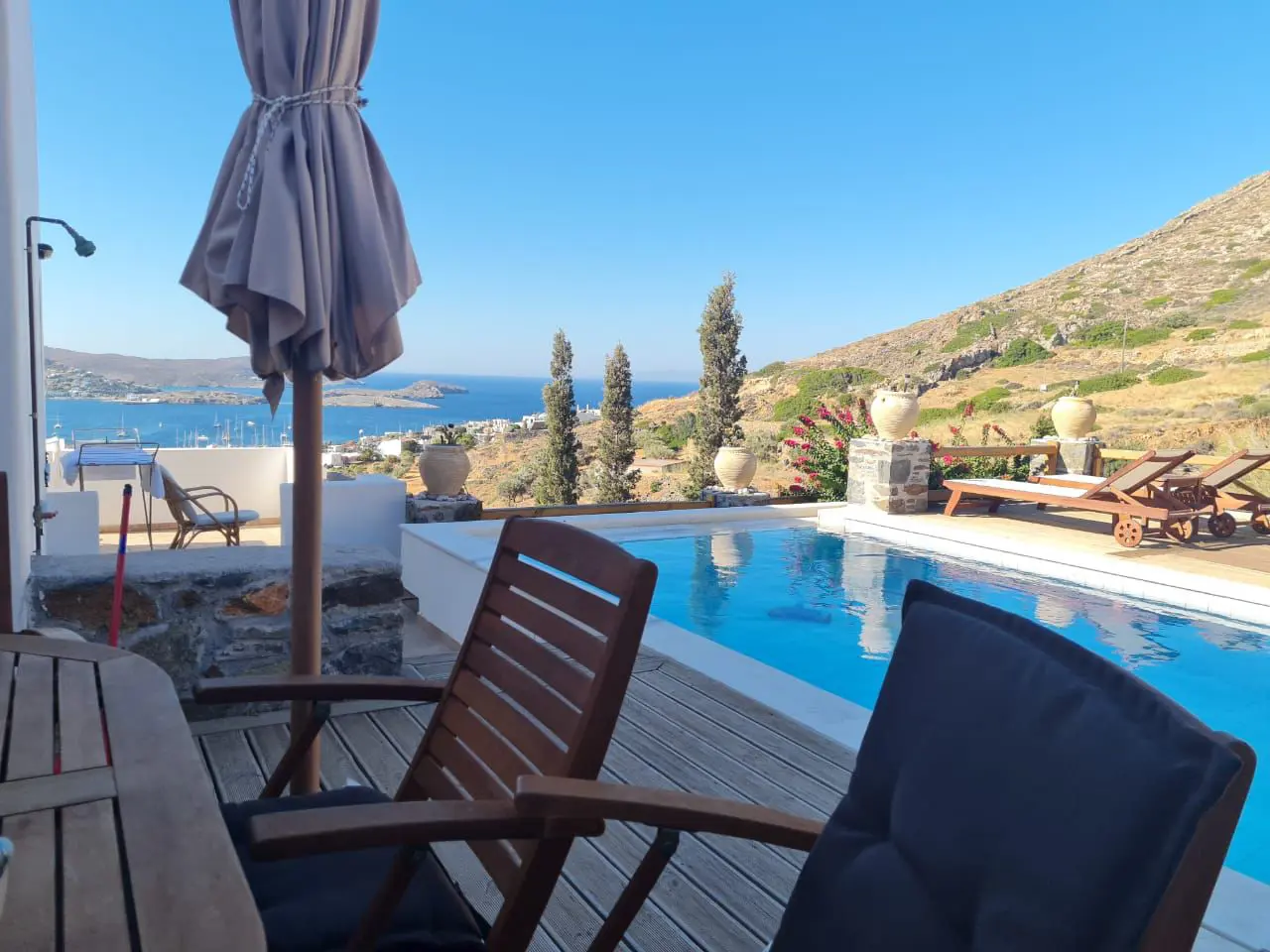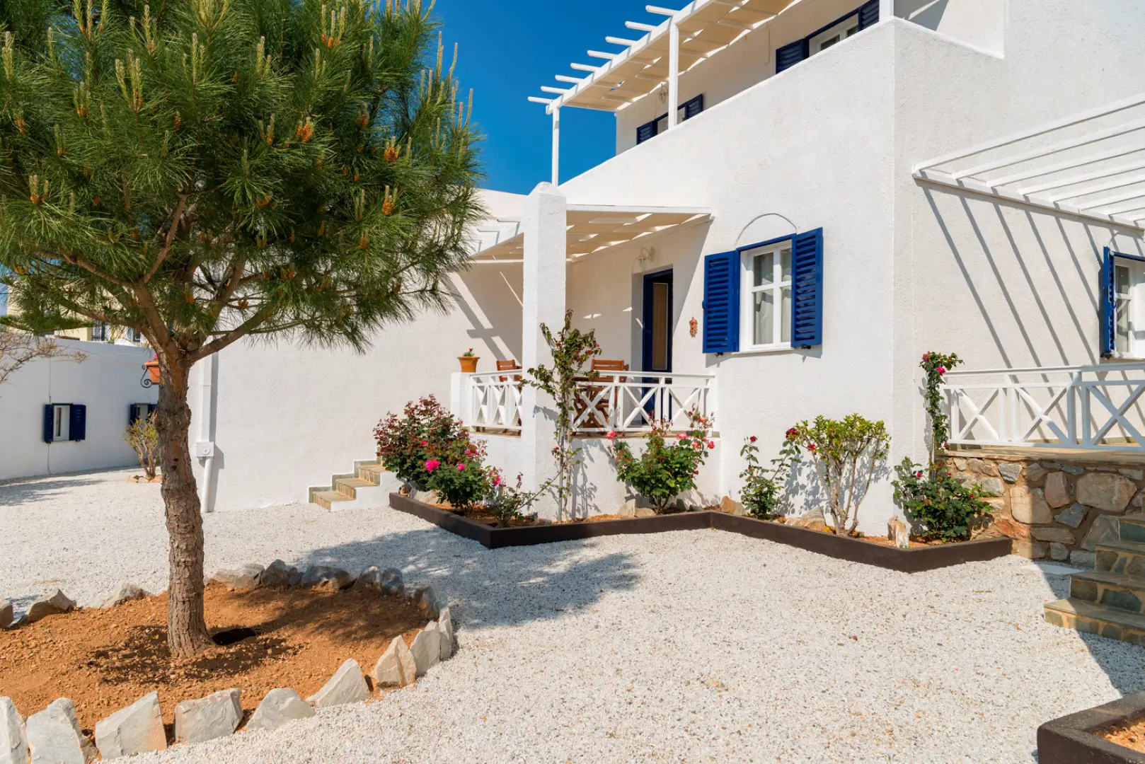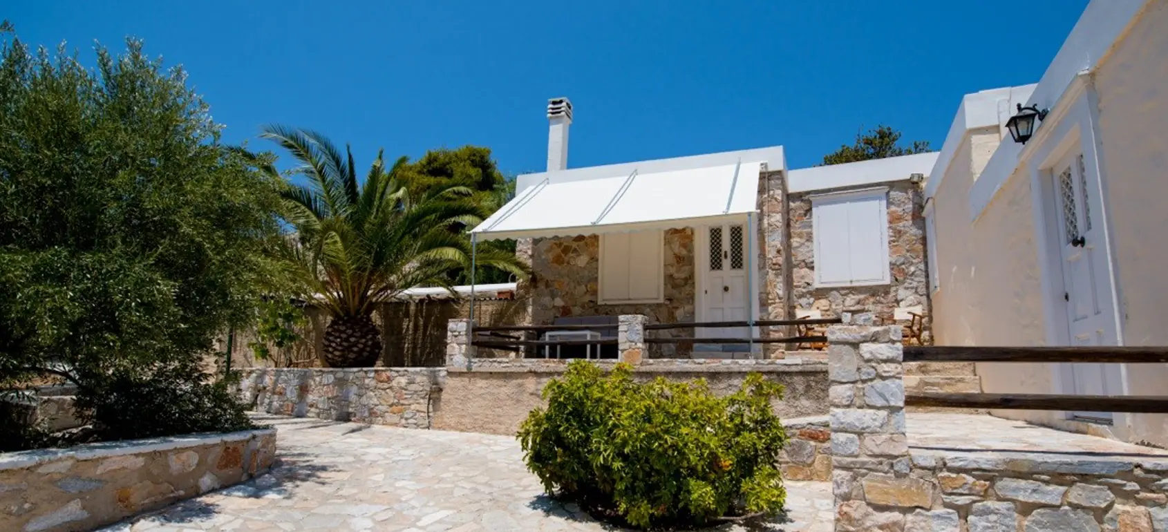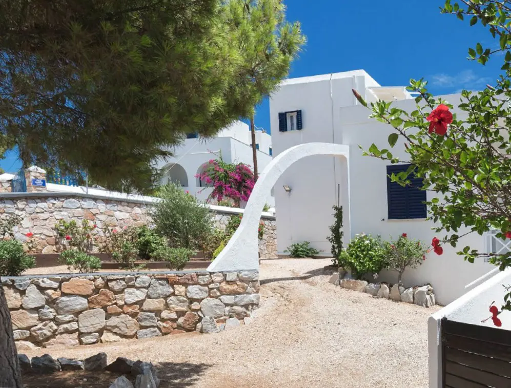 Built in 1835 in the village of Poseidonia by one of the leading and most respected families of the island and used as a summer house, it has been constantly lived in since then by direct descendants of the family. The house, set in beautiful and secluded gardens with many trees, is in the centre of this much sought after and charming village on the south west coast of the island, and is well known for its historical houses owned by ship owners, industrialists and politicians; its tranquillity and excellent beaches.