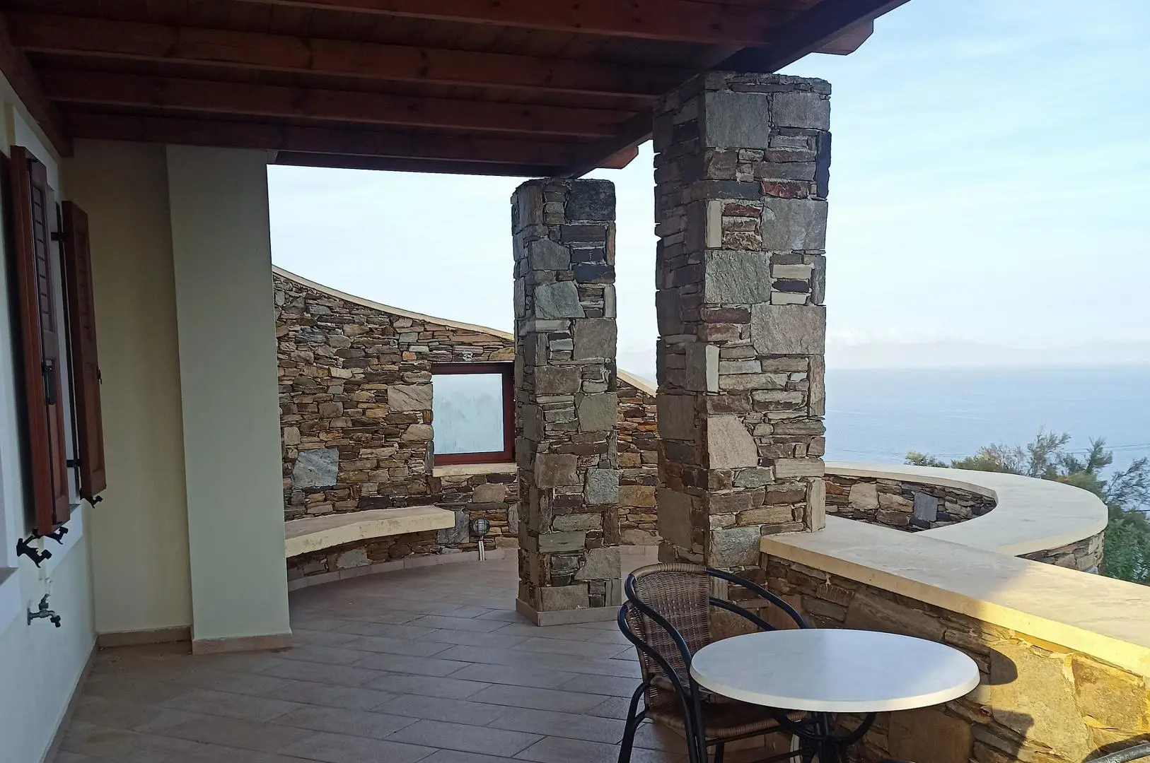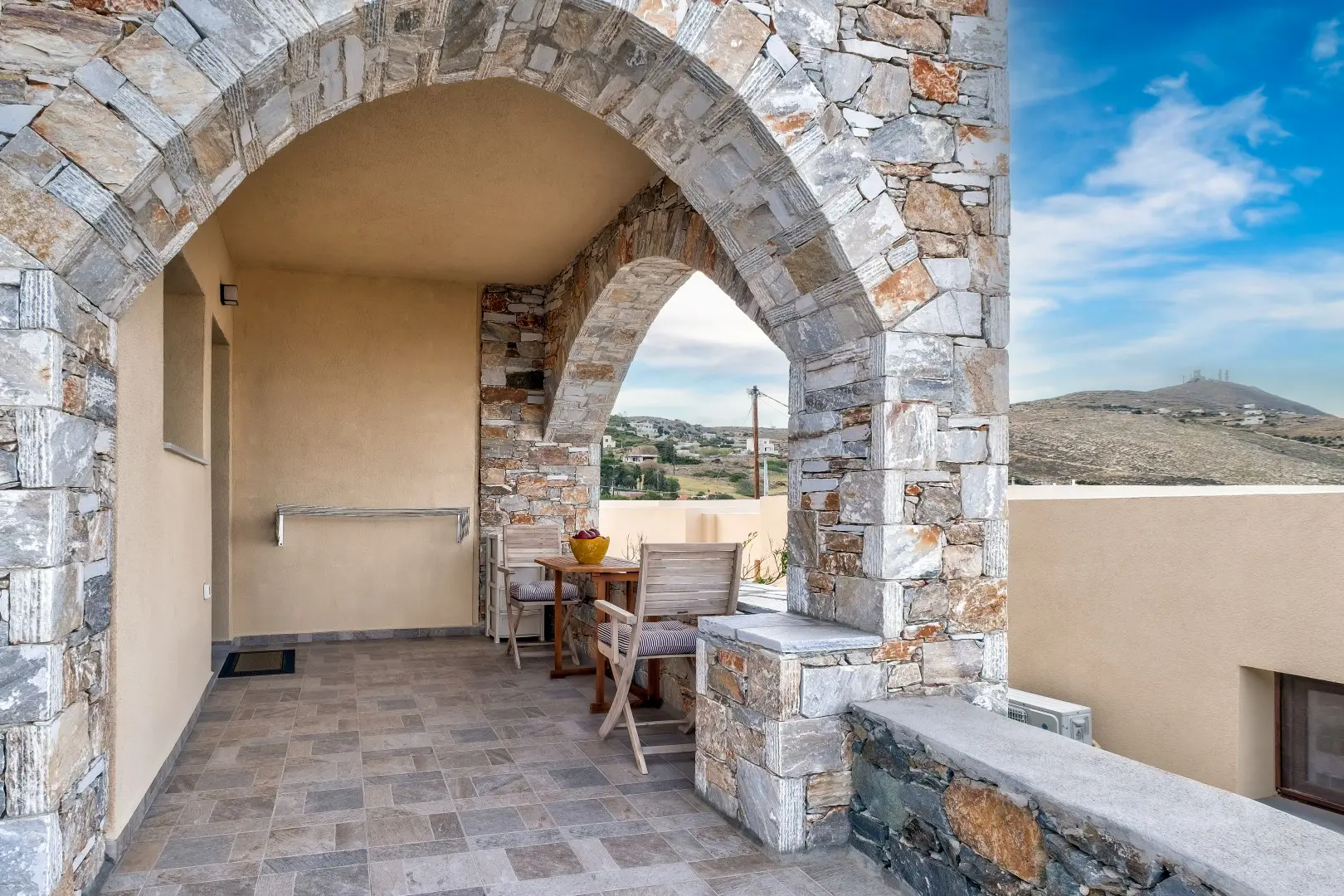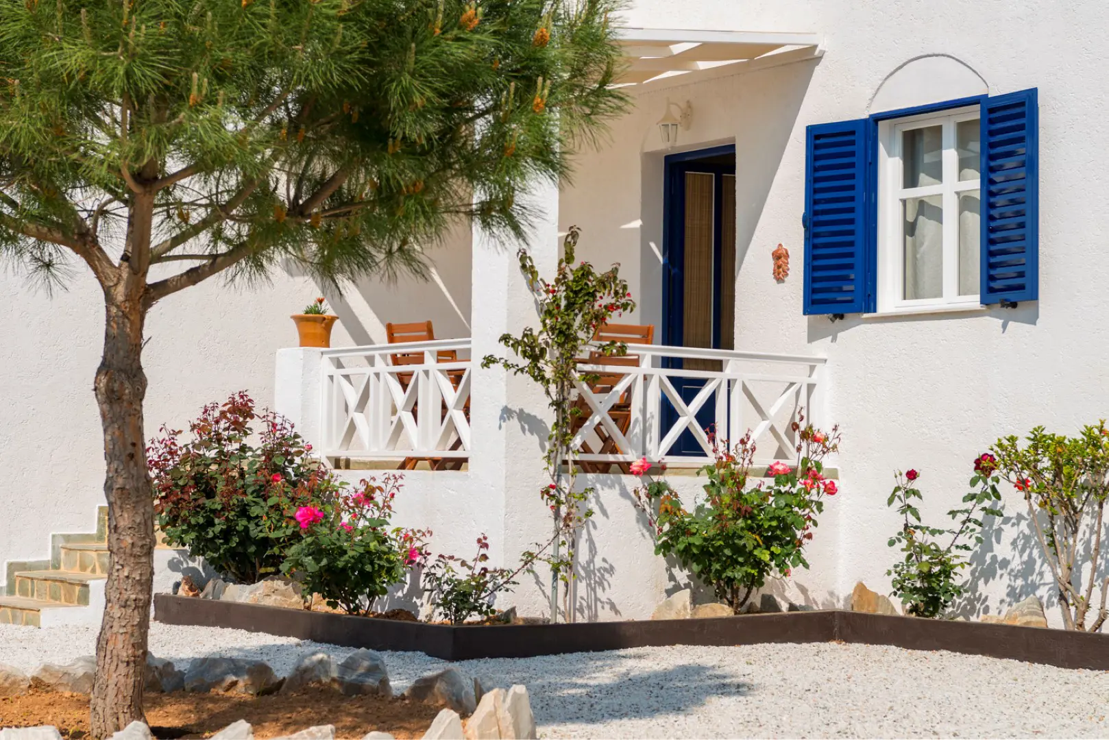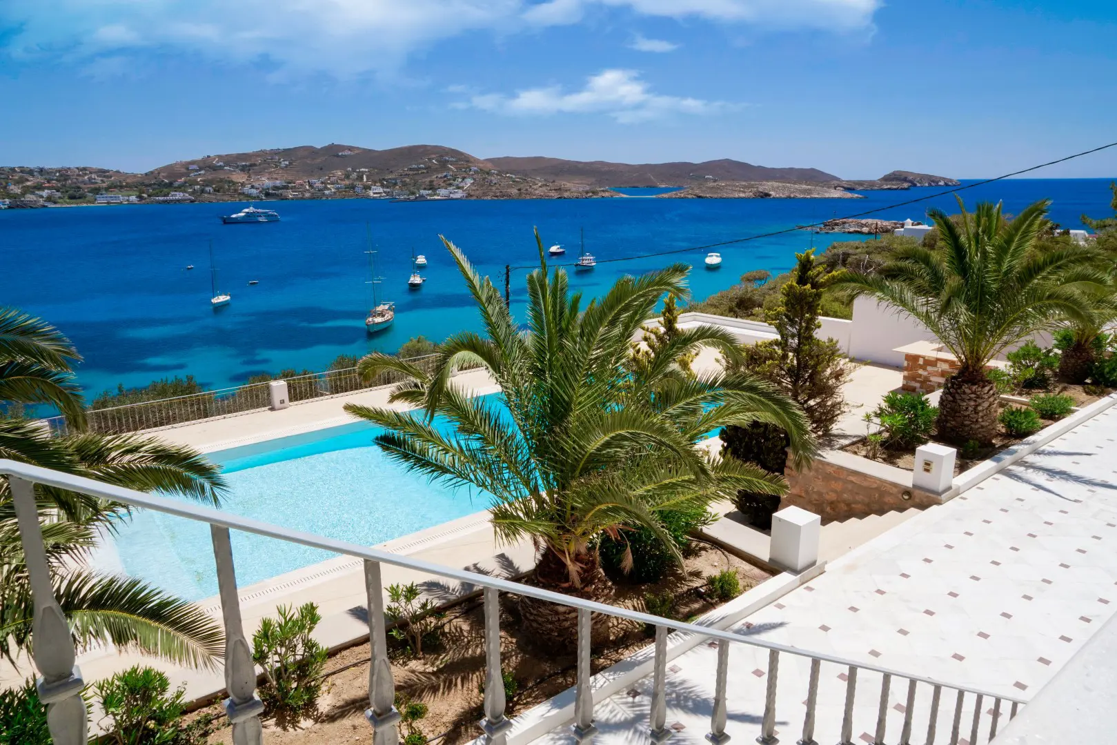 Built in 1835 in the village of Poseidonia by one of the leading and most respected families of the island and used as a summer house, it has been constantly lived in since then by direct descendants of the family. The house, set in beautiful and secluded gardens with many trees, is in the centre of this much sought after and charming village on the south west coast of the island, and is well known for its historical houses owned by ship owners, industrialists and politicians; its tranquillity and excellent beaches.