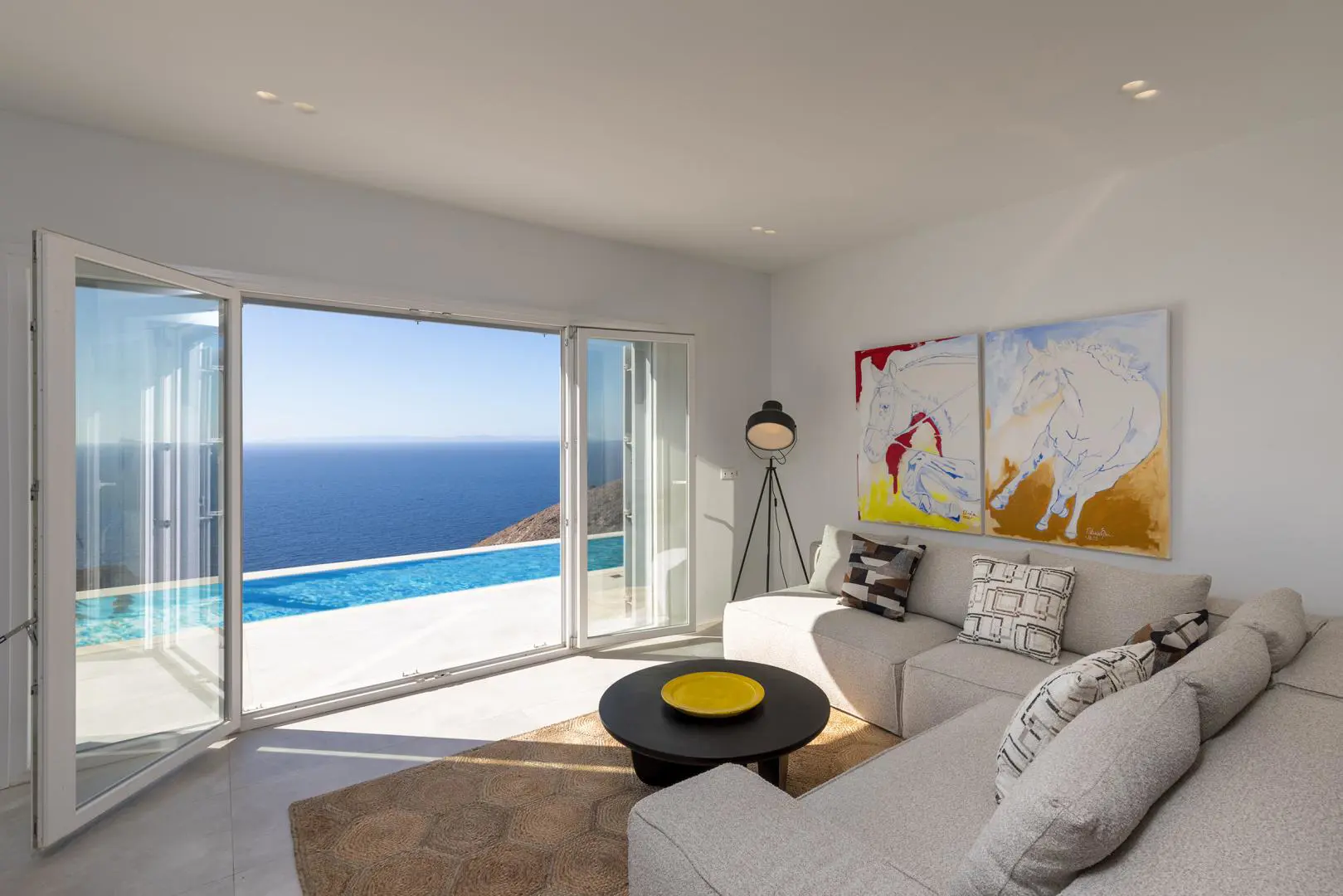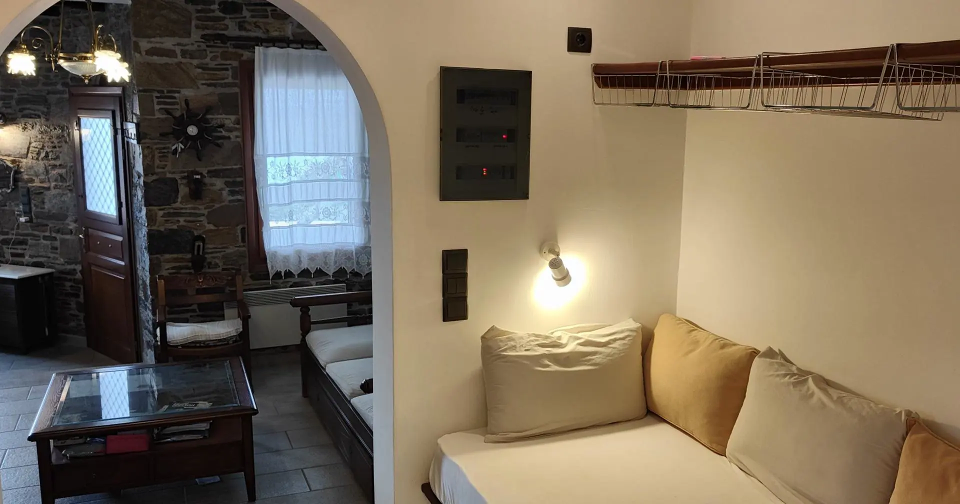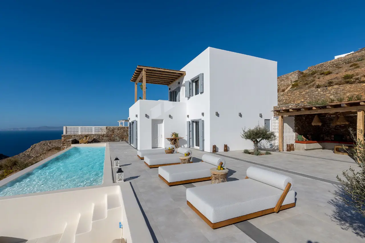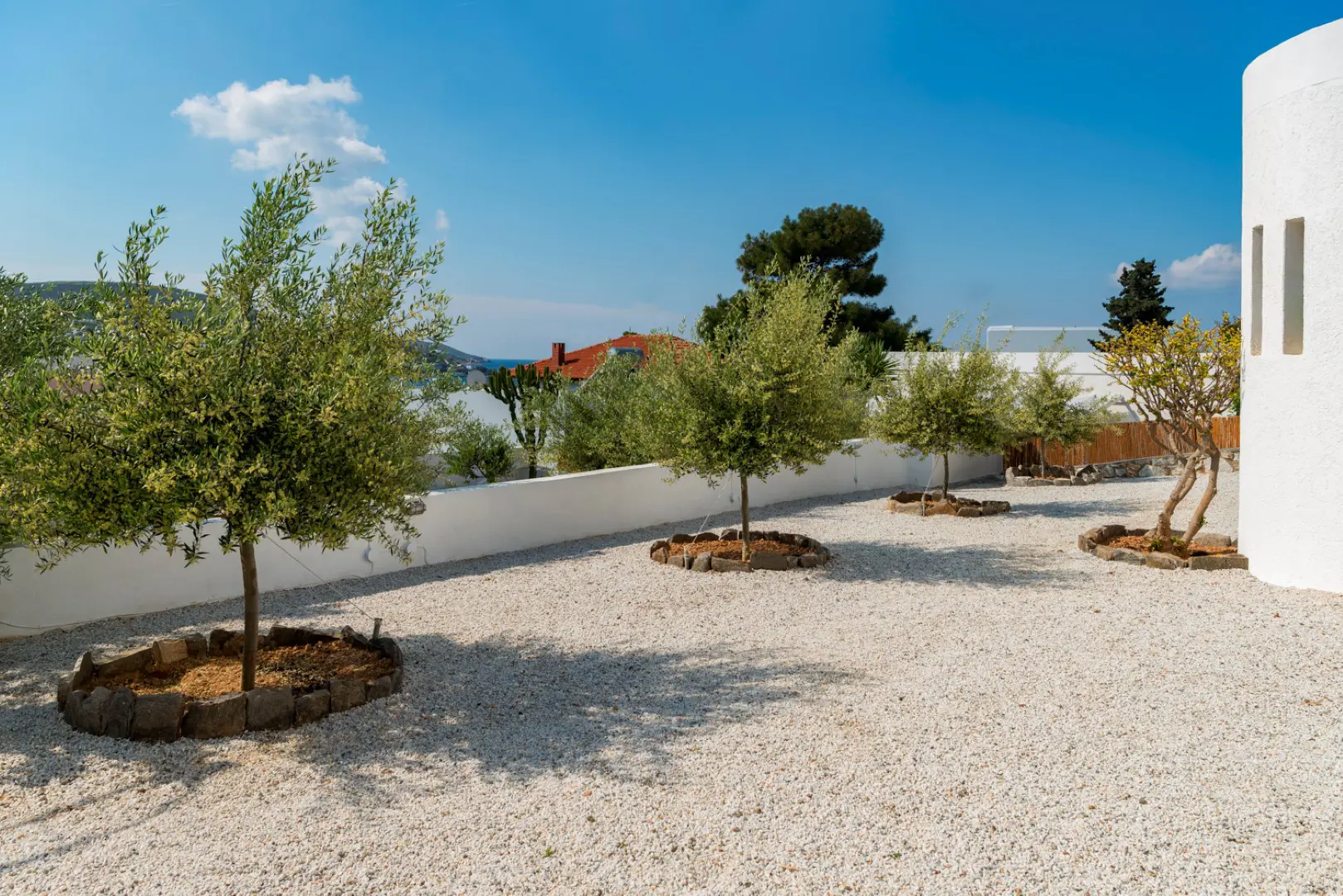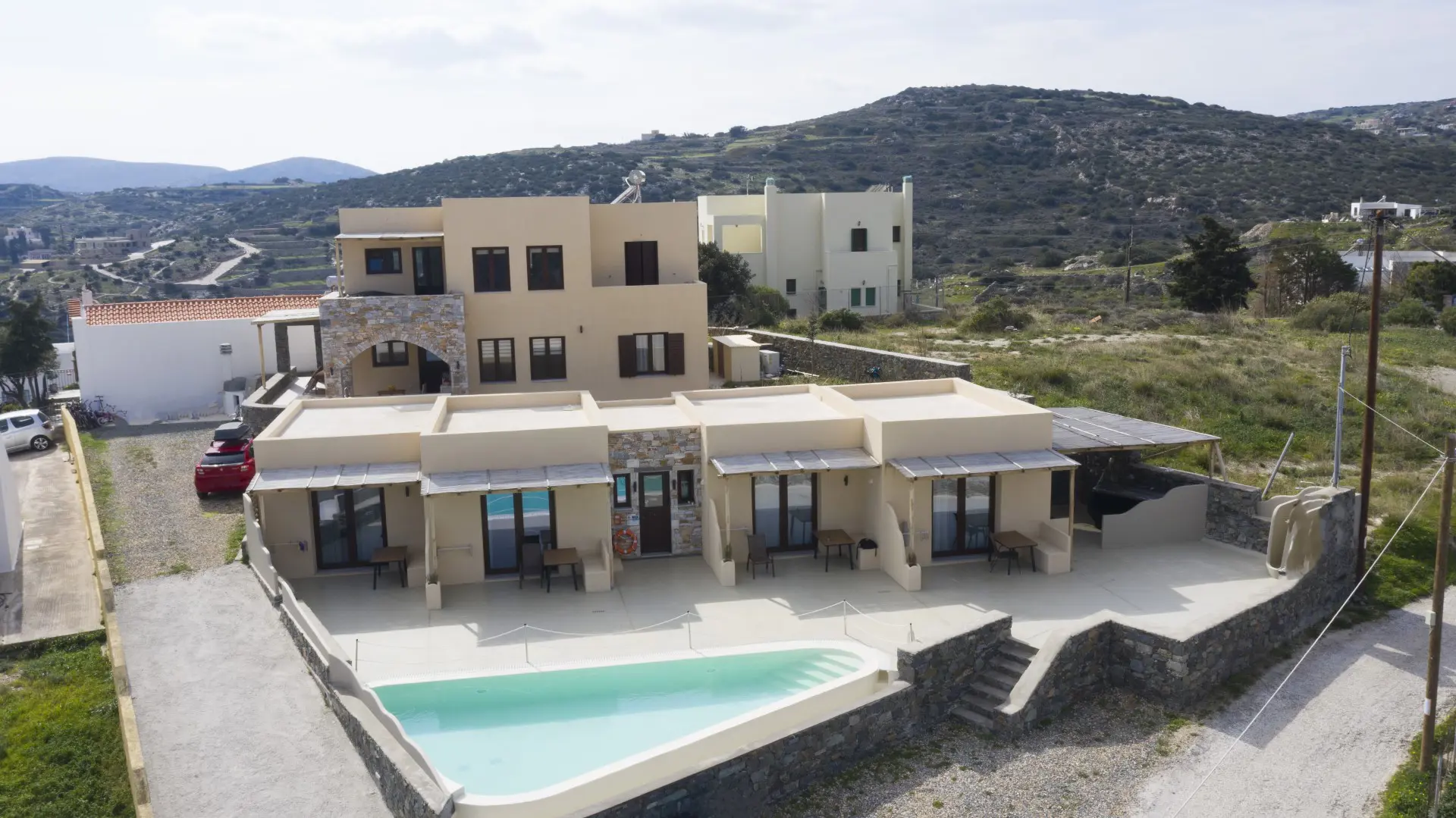 Built in 1835 in the village of Poseidonia by one of the leading and most respected families of the island and used as a summer house, it has been constantly lived in since then by direct descendants of the family. The house, set in beautiful and secluded gardens with many trees, is in the centre of this much sought after and charming village on the south west coast of the island, and is well known for its historical houses owned by ship owners, industrialists and politicians; its tranquillity and excellent beaches.