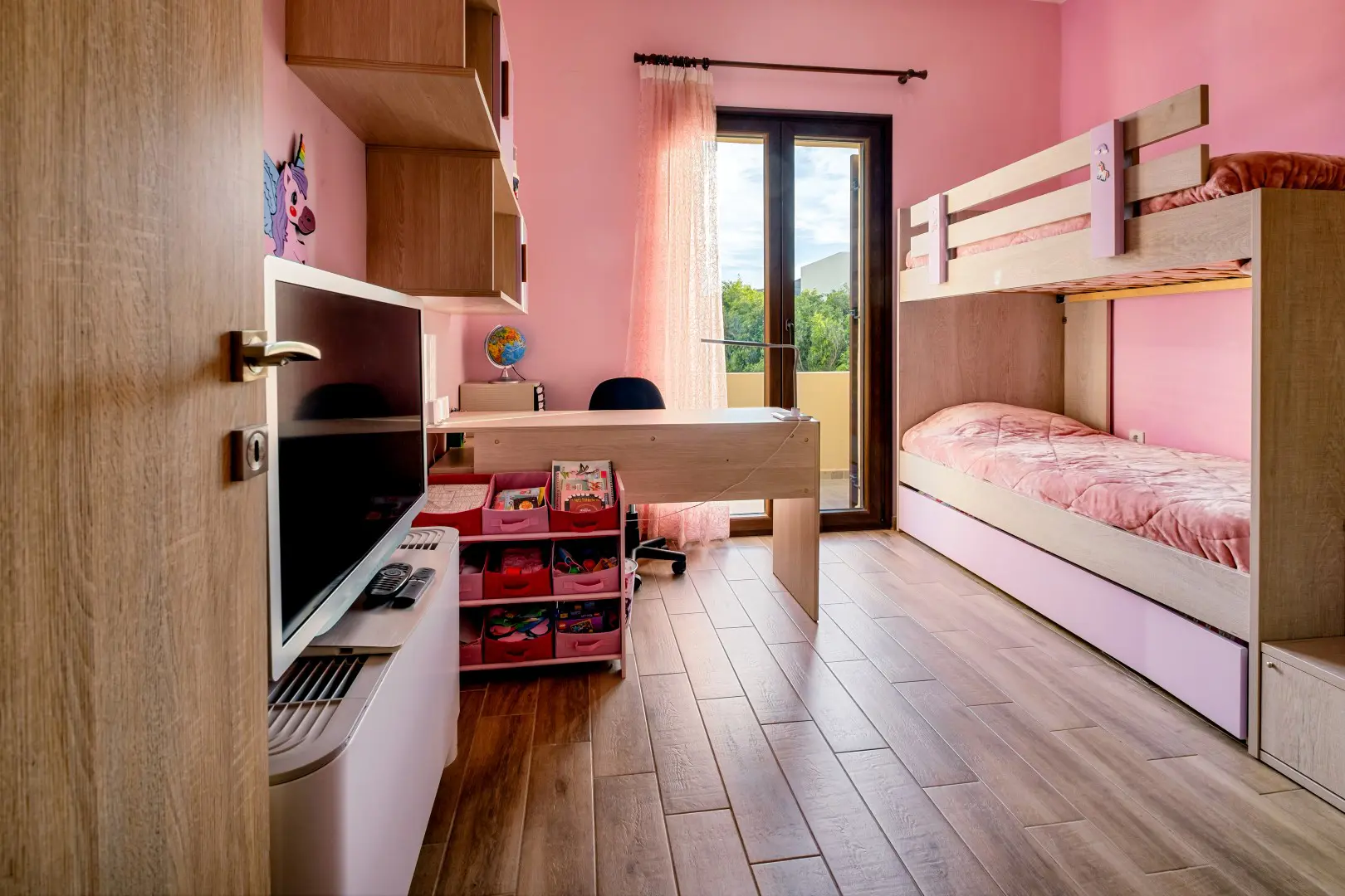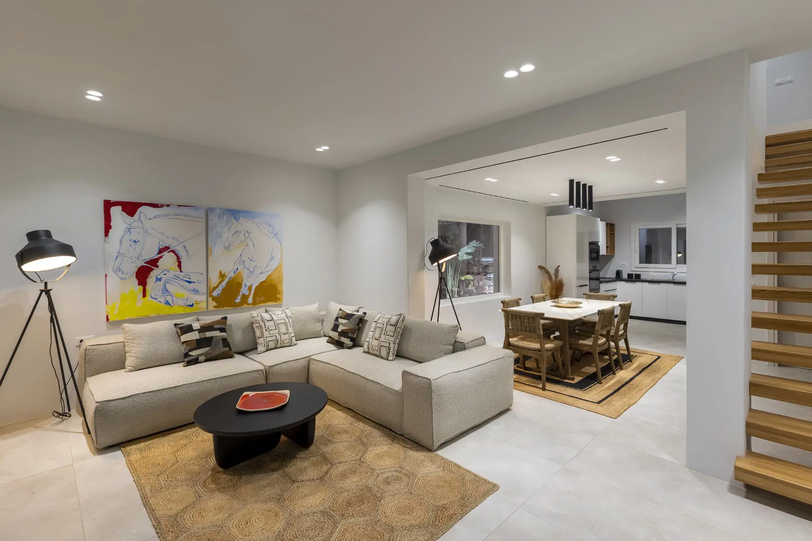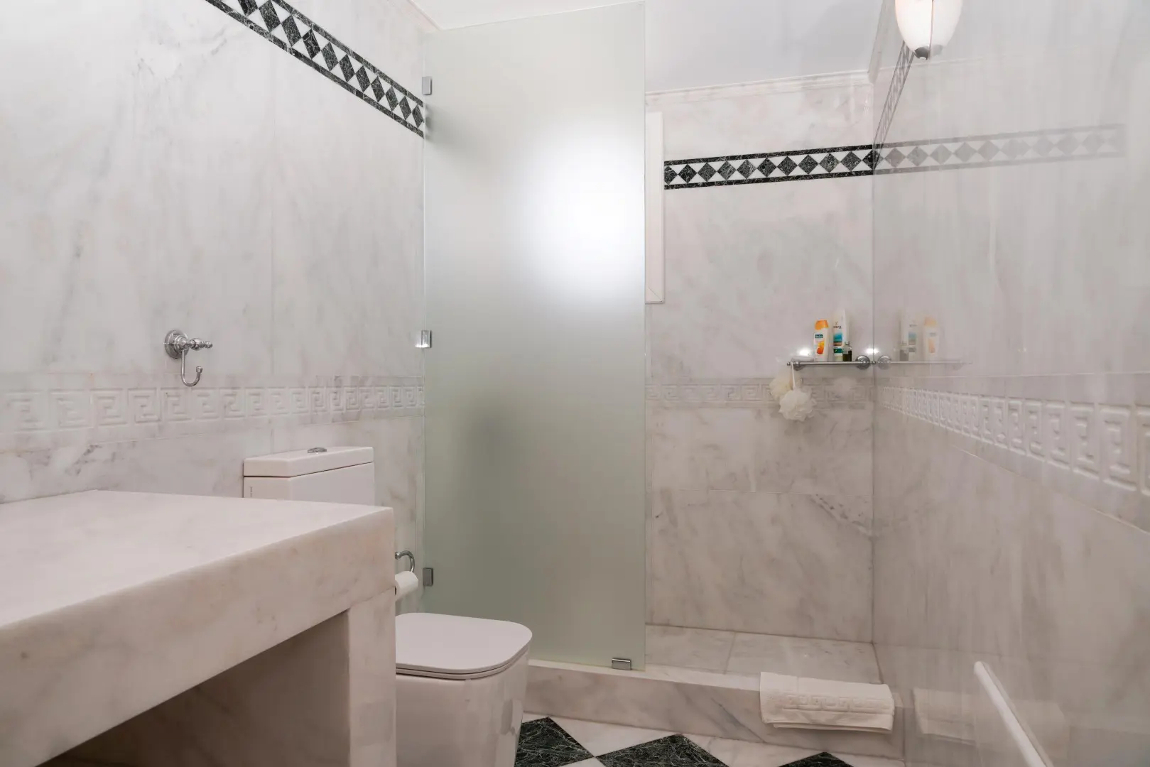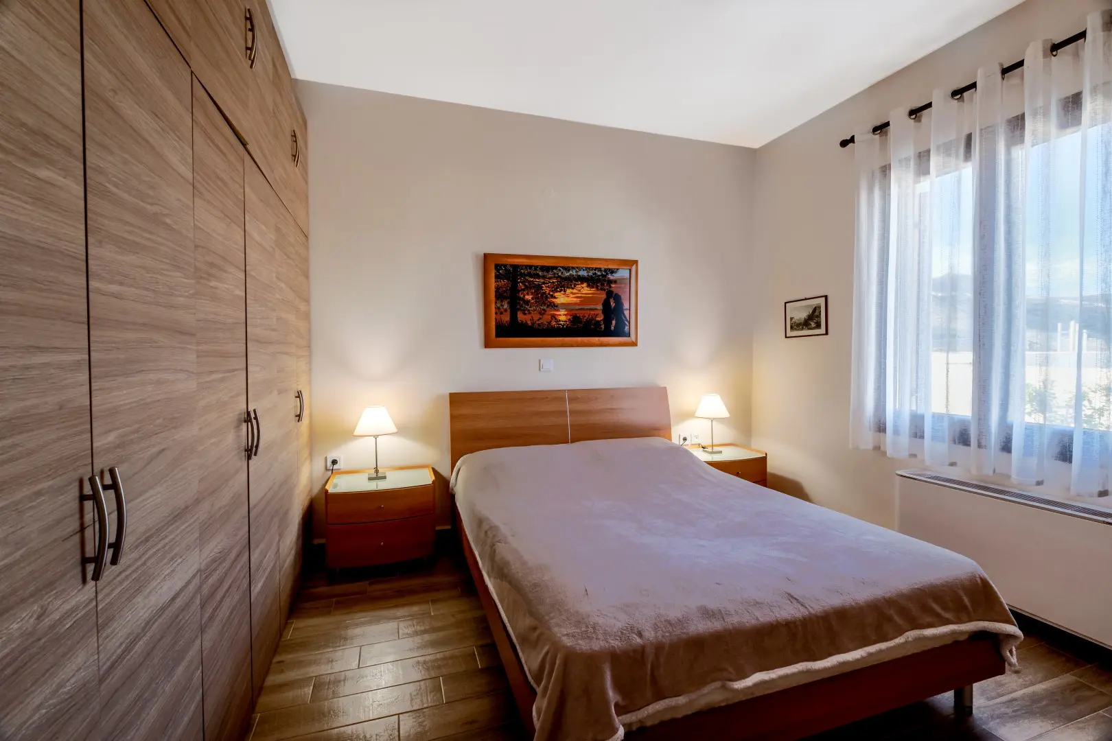 The house is set in 12,000 sq.m (3 acres) with many pine, olive, orange, mandarin, lemon, fig, pomegranate, pistachio and kidonia trees. Magnificent paved terrace with flower beds and palm trees. All driveways and paths are paved. Original wrought iron entrance gates, driveway pergola and arbour. 2 car garage with wrought iron gates. Fully renovated basement for storing equipment and large kitchenette with cloakroom (wc and basin).