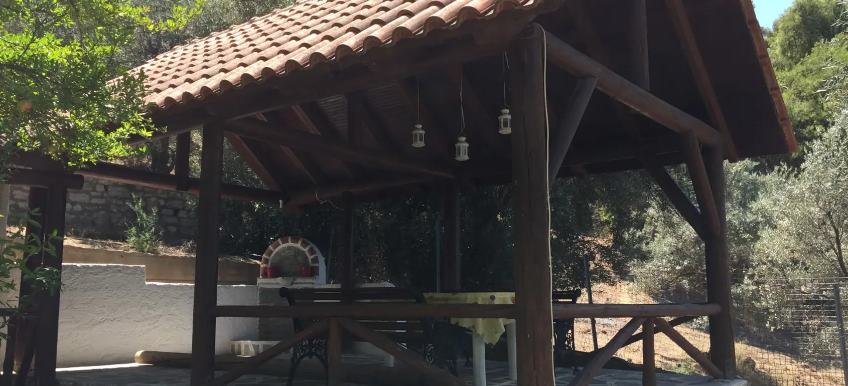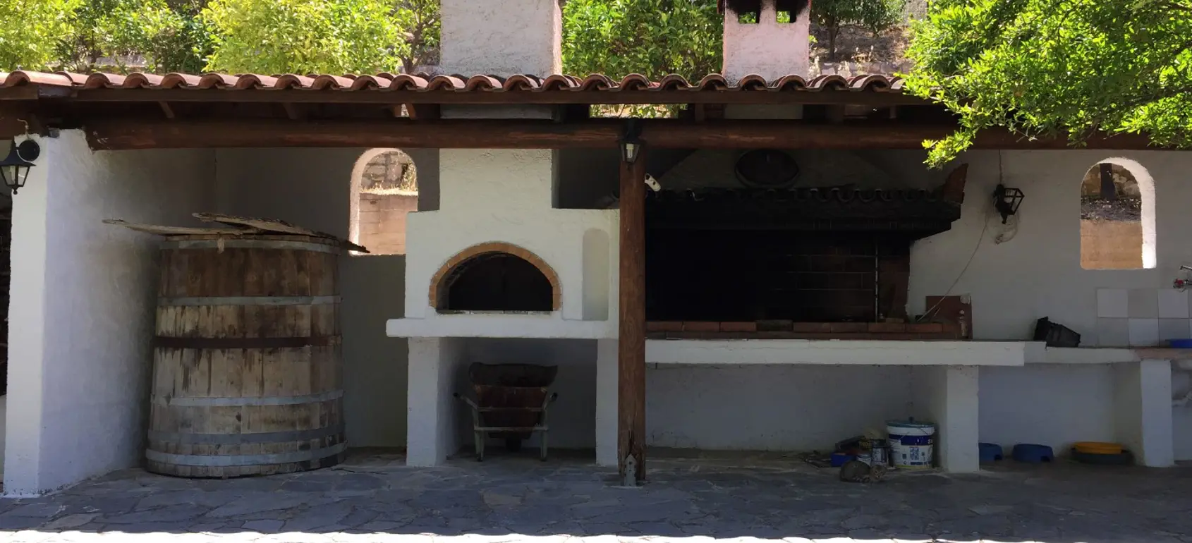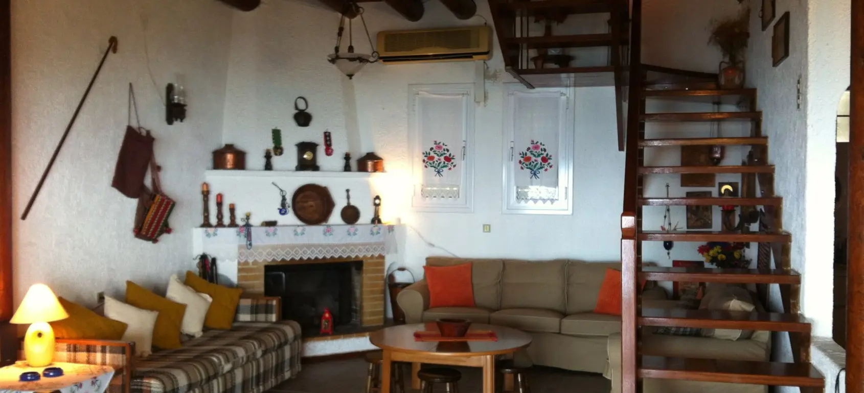 The Guest House (30 sqm) has 1 bedroom, 1 bathroom, fitted small kitchen, fireplace & A/C.