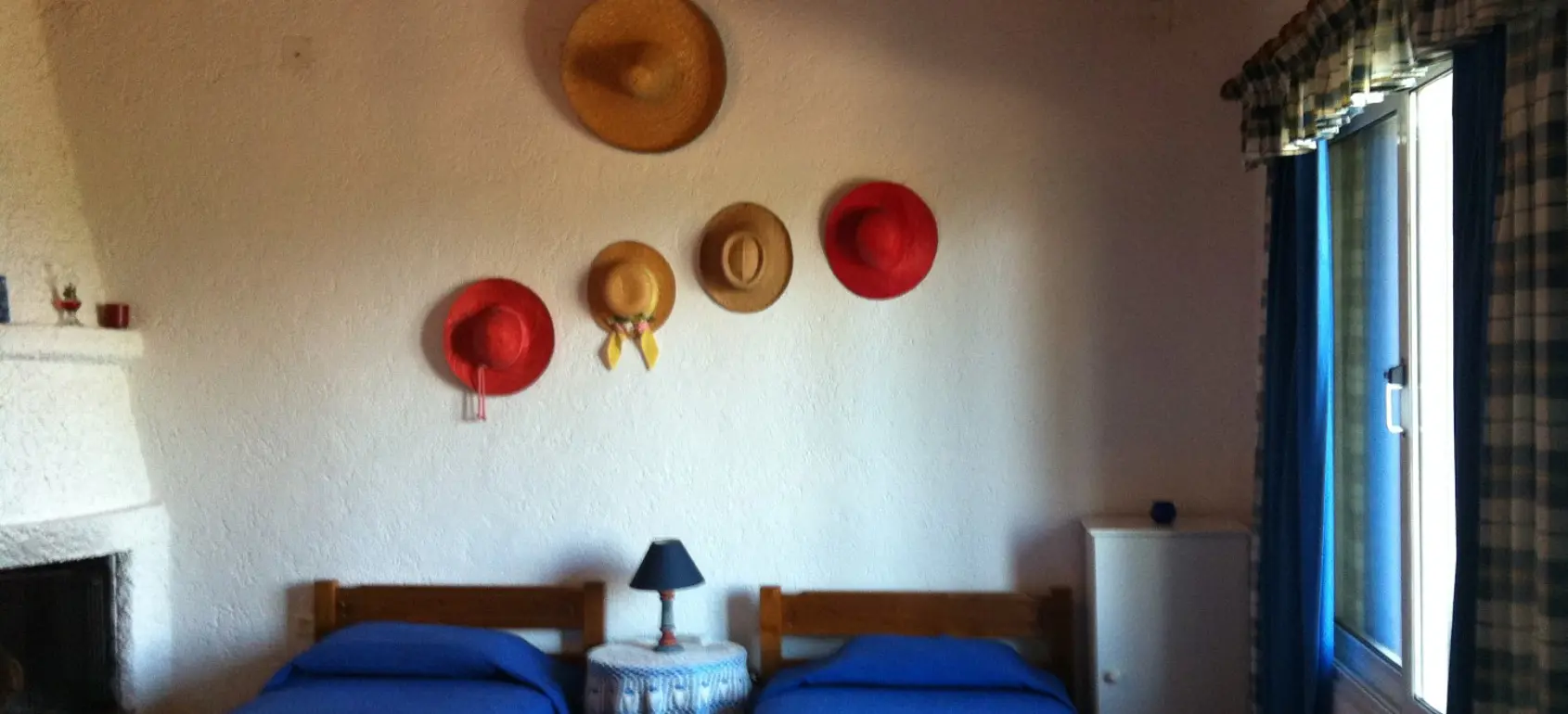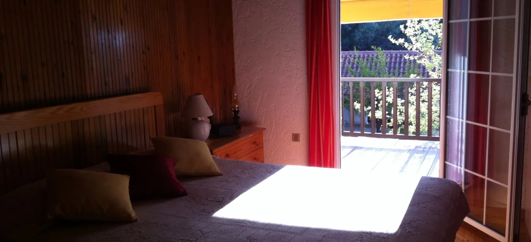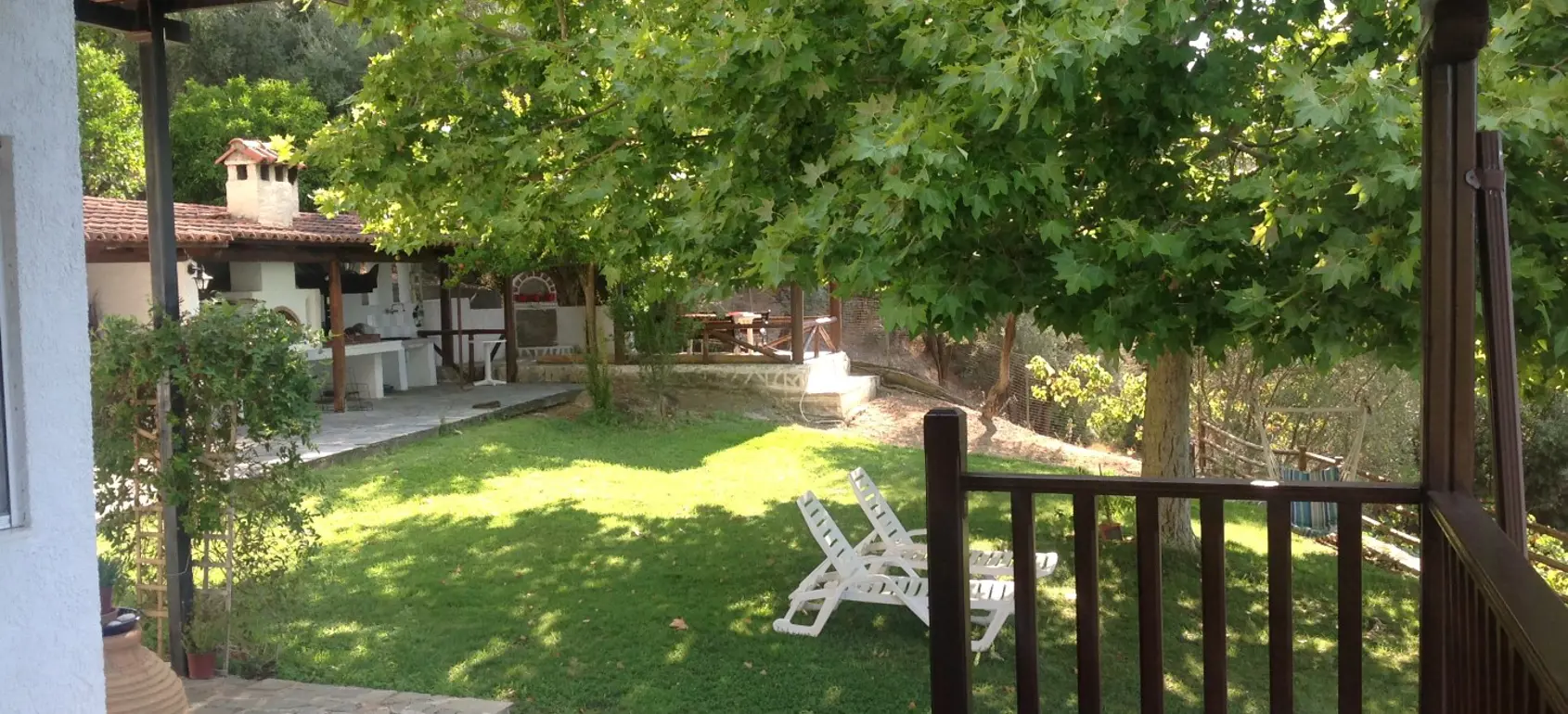 The Guest House (30 sqm) has 1 bedroom, 1 bathroom, fitted small kitchen, fireplace & A/C.