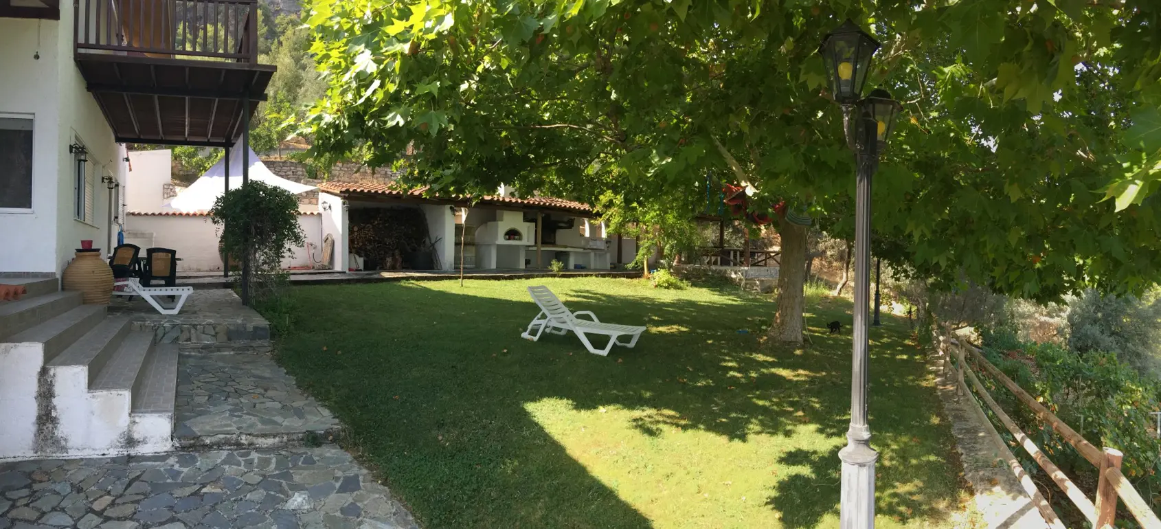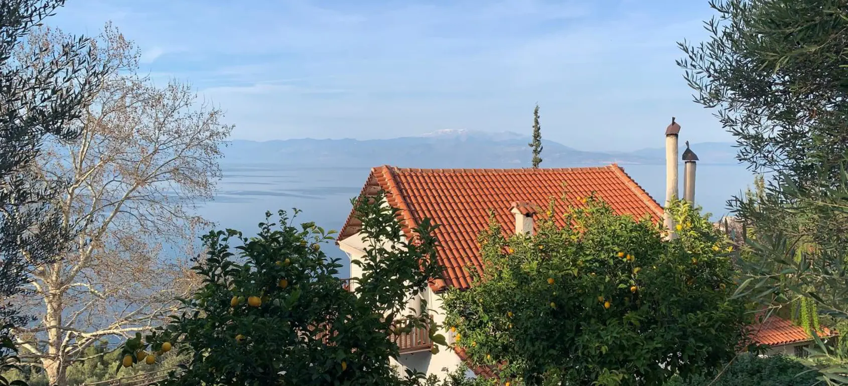 The Villa is located at Derveni Village at Corinth, Peloponnese, a small coastal resort on the Southern shore of the Gulf of Corinth. It stands on a 8,000 sqm plot providing 140sqm of spacious accommodation with an additional one – bedroom Guest house of 30sqm. The Villa enjoys breath-taking scenery with panoramic views of the Gulf of Corinth and also the mountains of the Peloponnese & Central Greece. It has a fully landscaped plot of gardens, olive, lemon & orange trees.