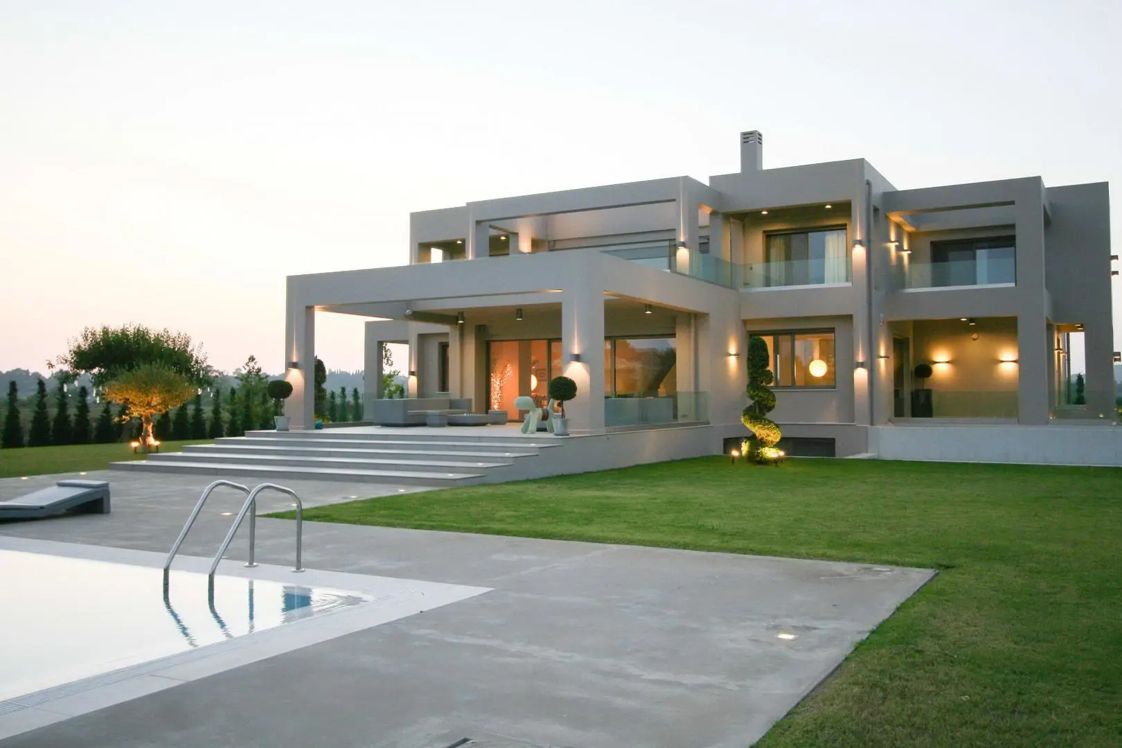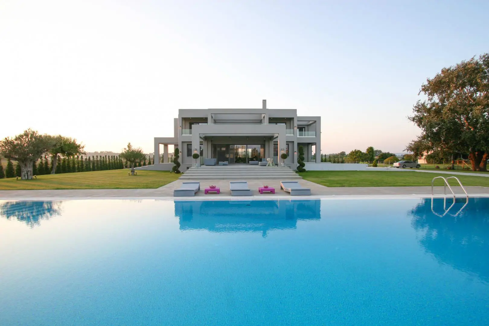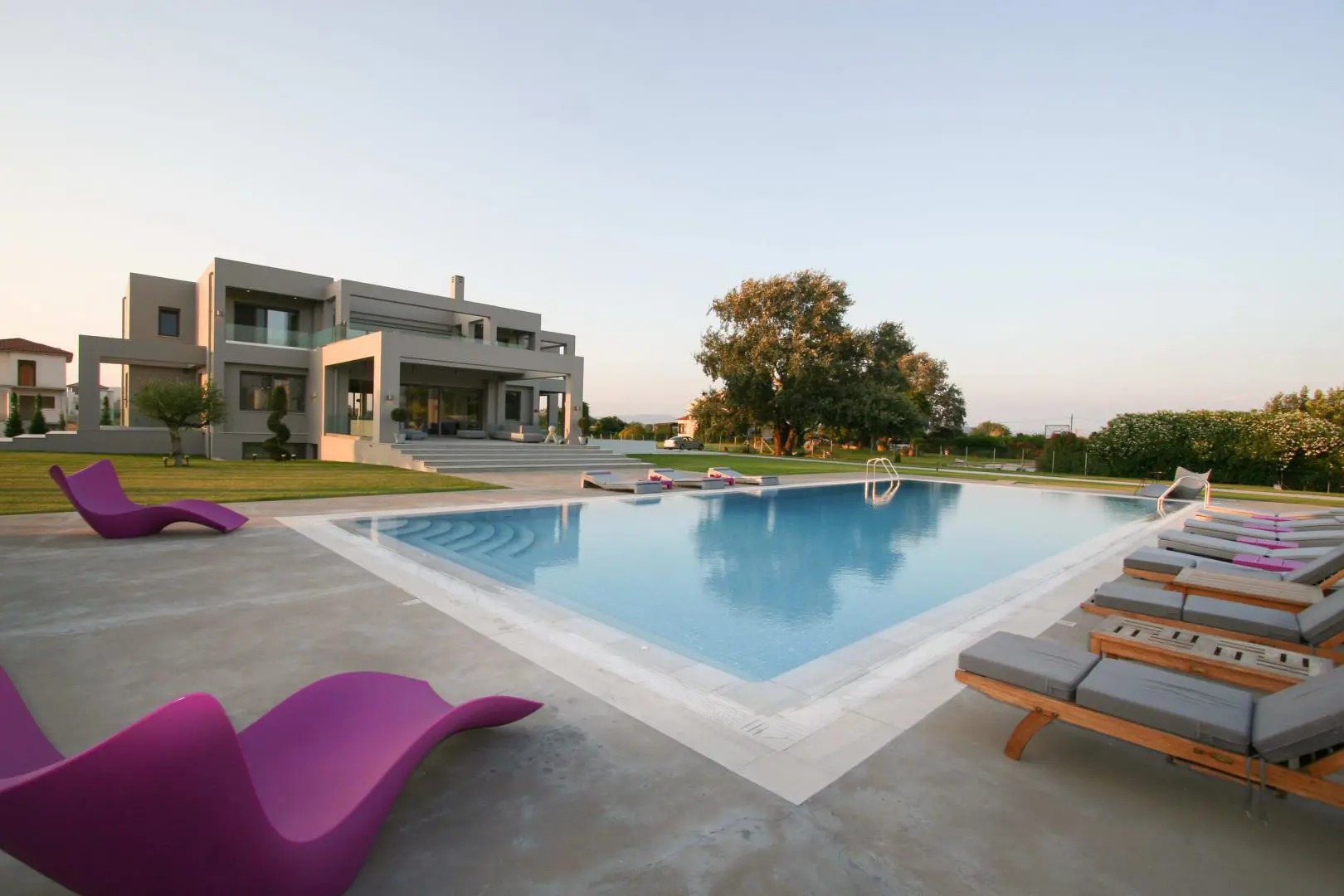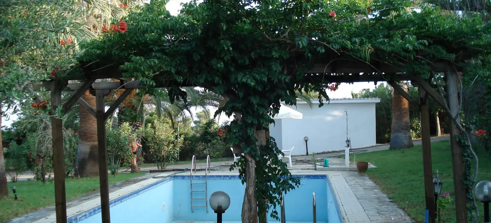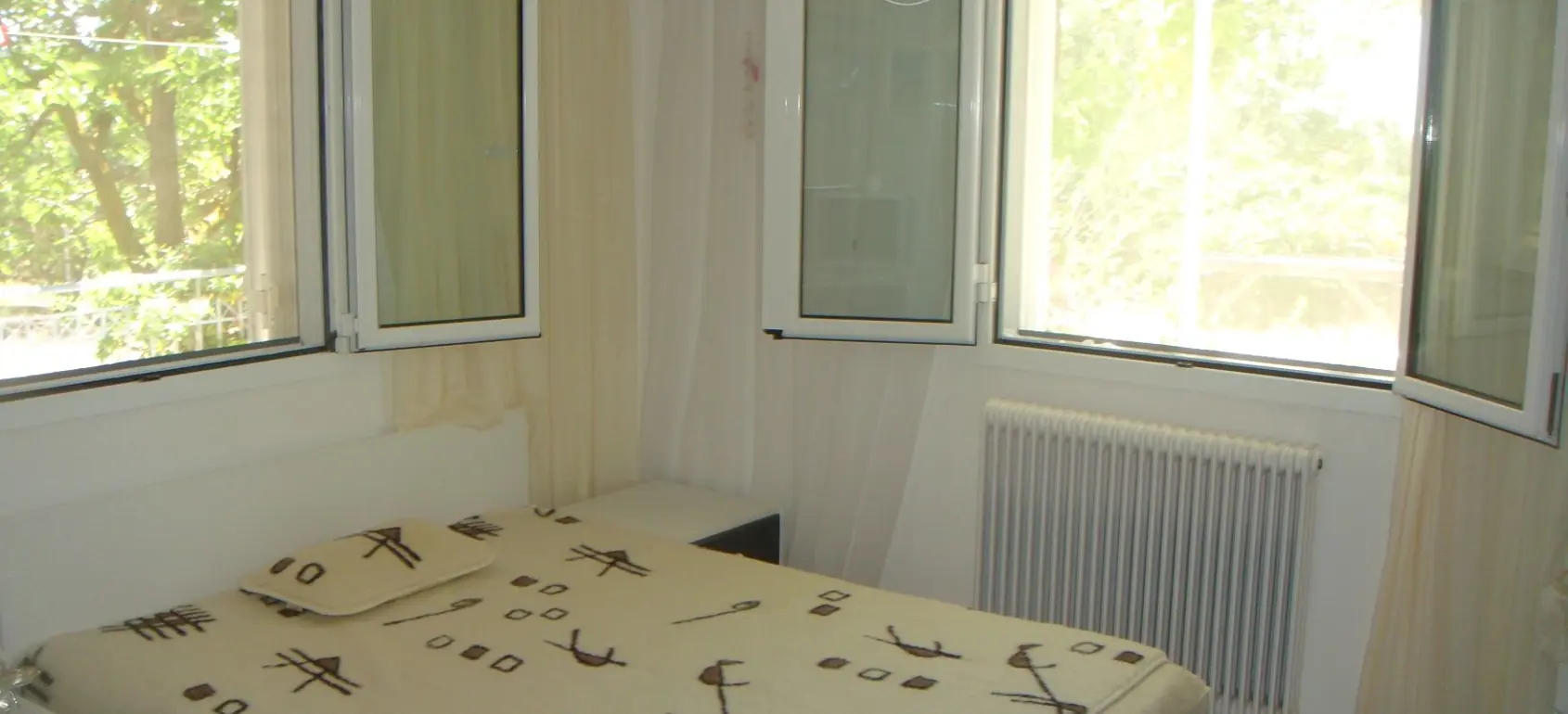 The villa is located 750 meters from the seashore (one of the cleanest seas in the world - there is a UNESCO flag). The villa is surrounded by olive trees (120 trees), huge palms, citrus trees (80 trees), lawns with flowers. Each floor of the villa is autonomous. The entire villa is surrounded by large terraces where you can enjoy breakfast, lunch, and dinner. There is also a barbecue area. 1st floor - living room with fireplace, kitchen-studio, 2 bedrooms (1 large with double bed, 2nd - 2 separate beds). Large bathroom with bathtub. 2nd floor - 2 bedrooms (1 large with a double bed, 2nd - 2 separate beds) with a small kitchen and a large terrace overlooking the sea. Bathroom with shower. All rooms in the house have independent exits. The house is equipped with modern appliances (plasma TVs (2) with satellite antenna, internet, telephone, air conditioners (3), washer and dryer, electric ovens, refrigerators, microwave ovens, dishwasher machine). It is connected to the public water supply. There is a fireplace, boiler, gas tank (volume 1 ton). 3-phase power supply. 2 storage rooms (internal). There is lighting around the perimeter. There is also a big volleyball square. The villa is located between the port of Kyllini (from where ferries go to Kefalonia and Zakynthos) and the town of Castro (where there is a fortress built by the Franks in the 13th century - a historical monument). Nearby are Ancient Olympia, Sparta, Mycenae, and other historical sites. Nearby there are thermal springs (with healing mud), 4 km from the house. Araxos Airport is 30 km away from the villa. Flights are carried out from Germany, Switzerland, France, Russia, UK, Czech Republic, Poland, and other countries. The city of Patras is located 70 km.