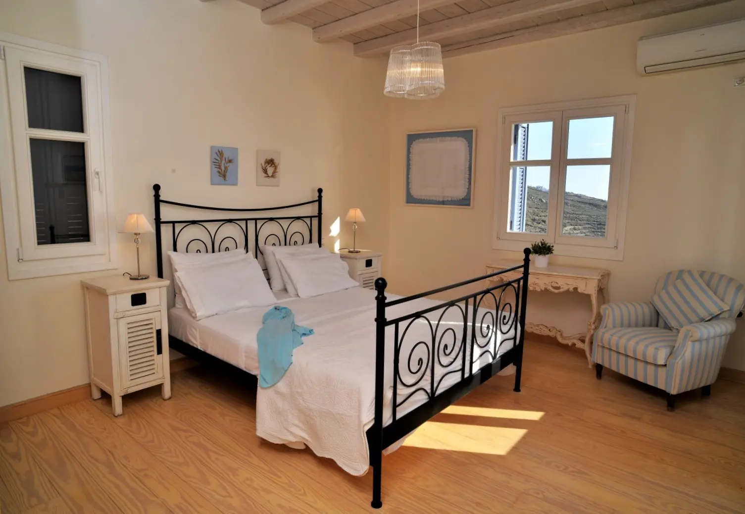 Three levels house of 240sq.m with an amazing view overlooking Tinos town and the Aegean Sea. The inside areas offering calm and tranquility. On the ground floor there are two living areas, a kitchen, two bedrooms and a bathroom. On the first floor there are two bedrooms and a bathroom and on the top level a bedroom and a bathroom. On the outside area there is plenty of space for install a pool.