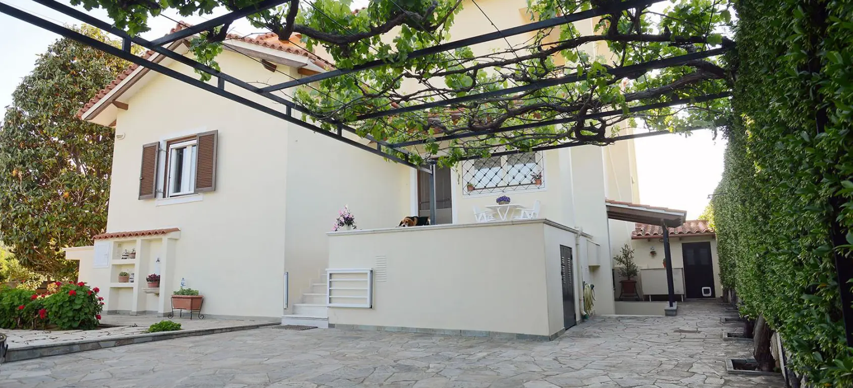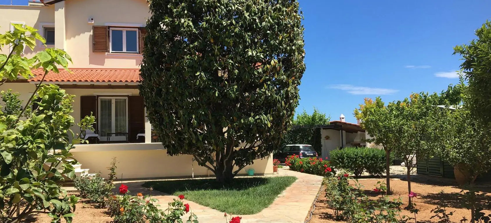 On the 500sqm garden there are many trees as lemon, orange, apricot and olives.