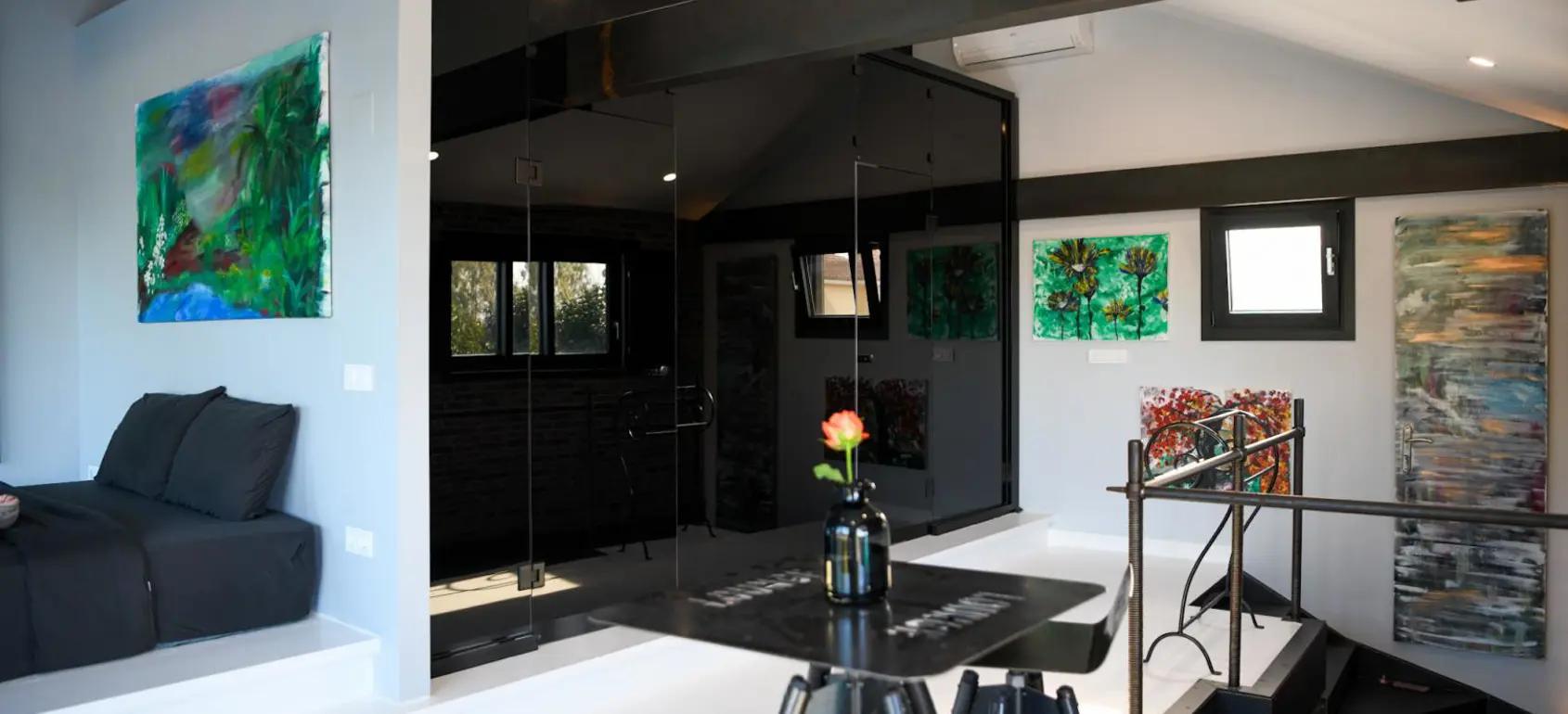 This luxury house features unique and stylish decor, blending contemporary art with beachfront charm. The construction of the property finished in 2020 and the vast majority of the interior is custom made and handmade from local craftsmen. The Beach house is around 150 sq.m including 2 bedrooms, 2 bathrooms, open living room space with kitchen where there is a 3rd double bed.