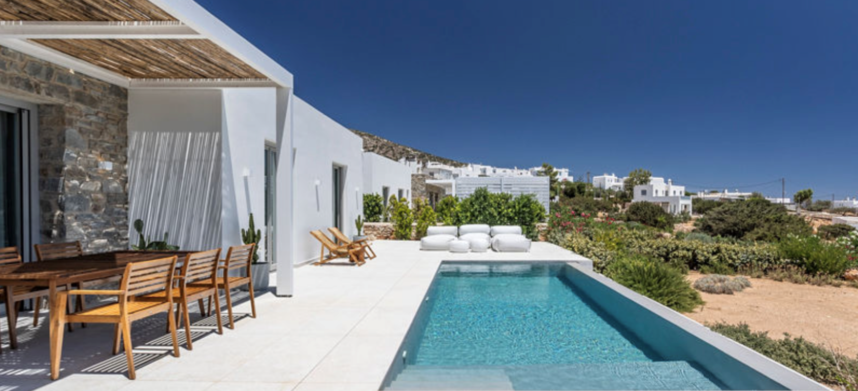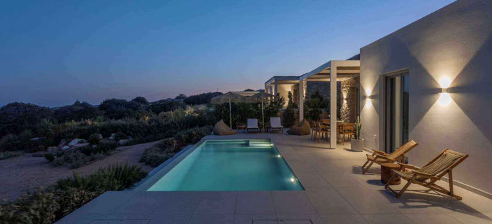 New Building villa of high-quality construction and traditional design located in Aspro Chorio, offering stunning views & privacy.