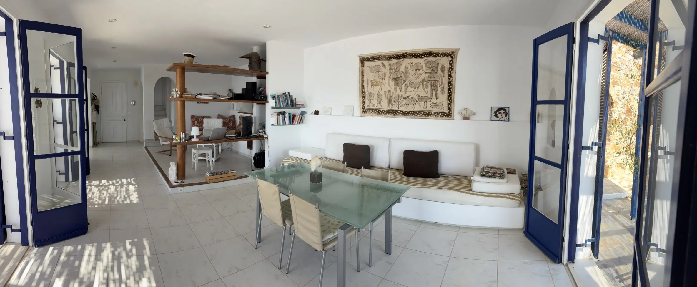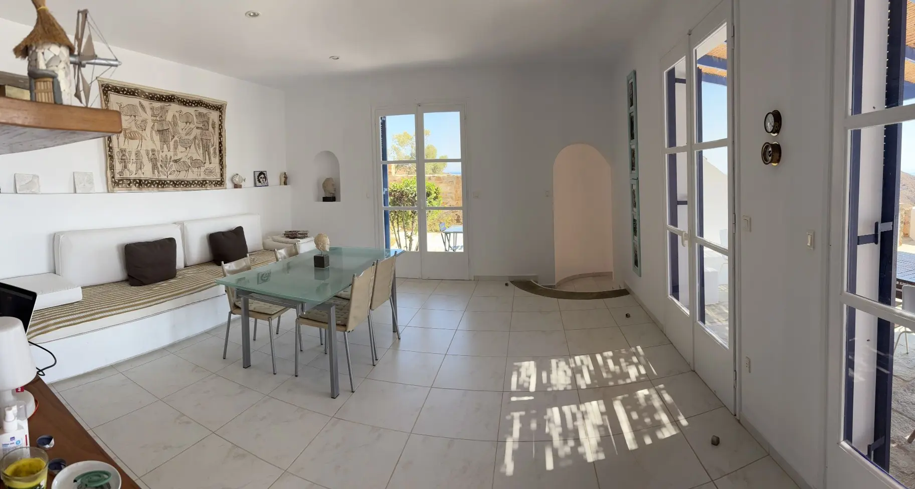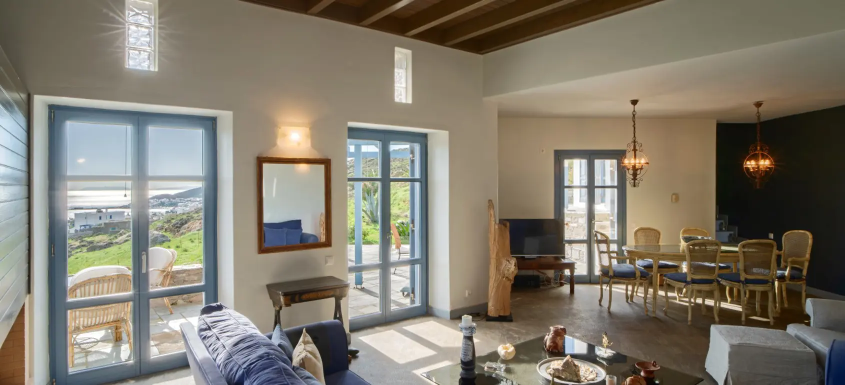 This residence is located in Serifos, one of the most beautiful Cycladic islands, also famous for its wonderful beaches with its clear blue waters. It covers a total area of 235 sqm and is in arrange on the main house and the guest. The house is built on a 4,382 sqm land plot due to his position on a slopping hill ensures the splendid open views to the port of Serifos (Livadi) and the Aegean Sea. One can enjoy the view from every part of the house, as well as the private terraces and the landscaped garden. Respecting the Cycladic landscape, the owners have transformed the house into a modern residence with comforts that offer unforgettable vacations in summer, but also throughout the year. The residence is fully equipped to the last detail, offering complete relaxation and very pleasant atmosphere.