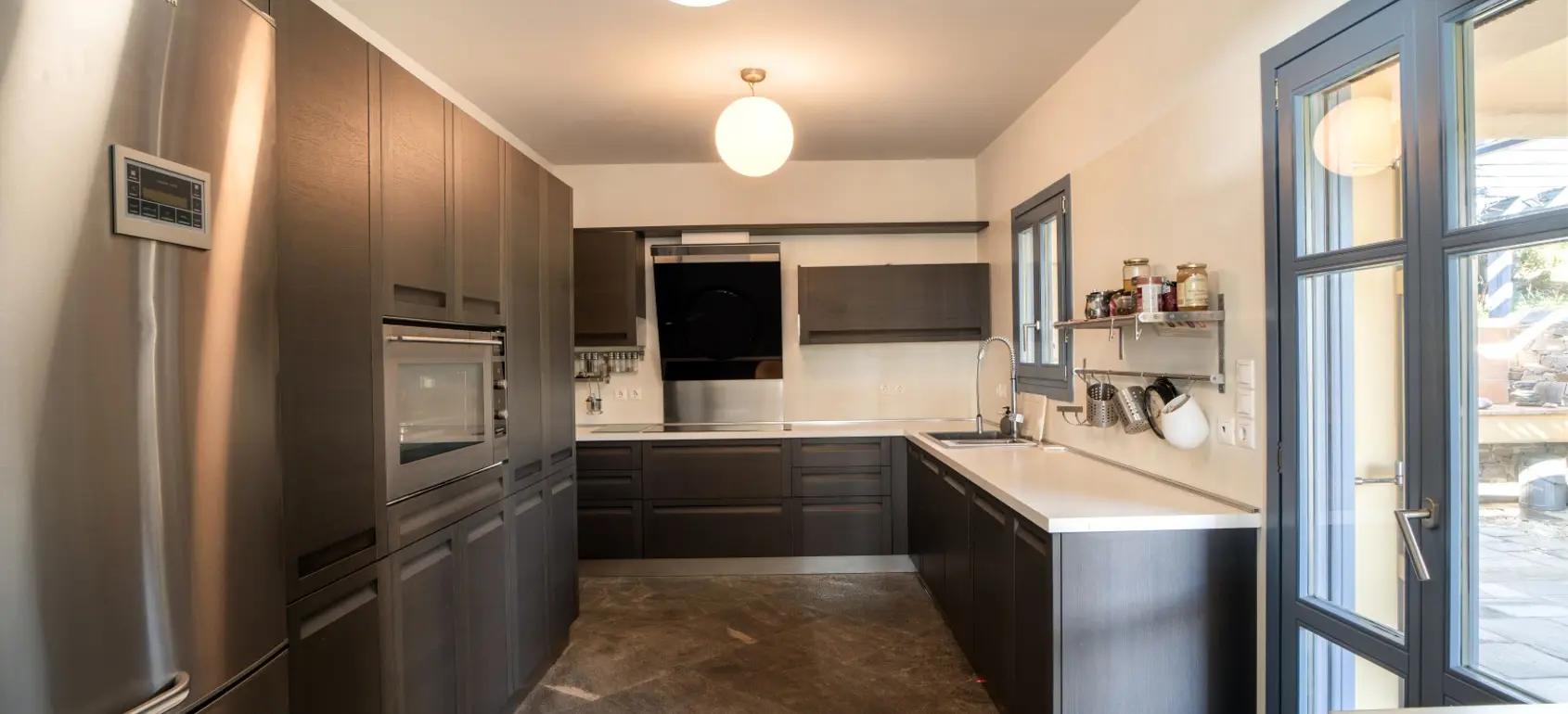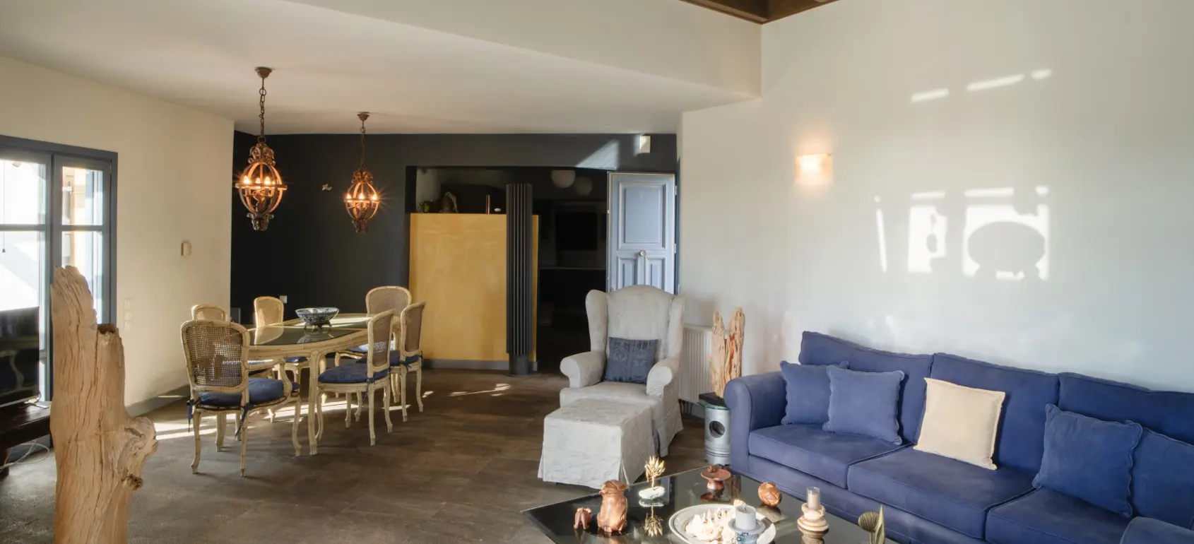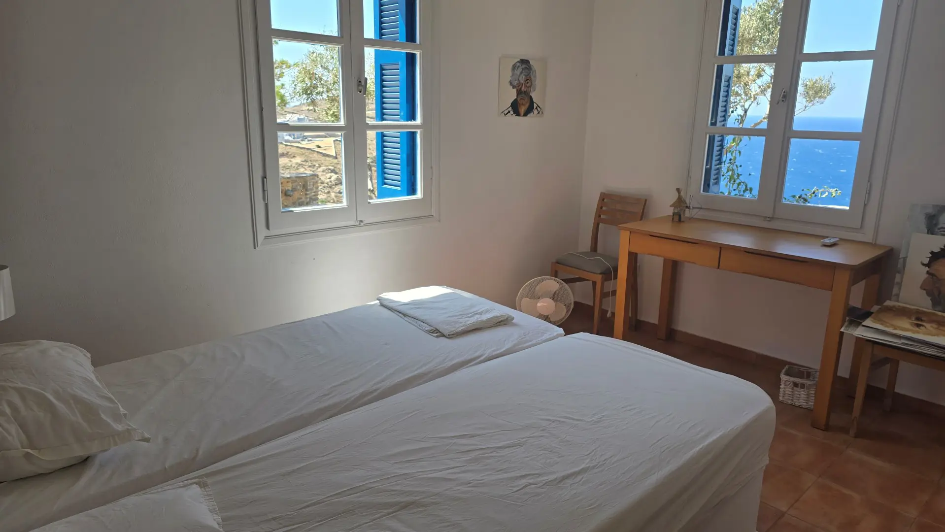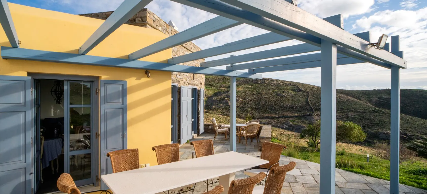 This residence is located in Serifos, one of the most beautiful Cycladic islands, also famous for its wonderful beaches with its clear blue waters. It covers a total area of 235 sqm and is in arrange on the main house and the guest. The house is built on a 4,382 sqm land plot due to his position on a slopping hill ensures the splendid open views to the port of Serifos (Livadi) and the Aegean Sea. One can enjoy the view from every part of the house, as well as the private terraces and the landscaped garden. Respecting the Cycladic landscape, the owners have transformed the house into a modern residence with comforts that offer unforgettable vacations in summer, but also throughout the year. The residence is fully equipped to the last detail, offering complete relaxation and very pleasant atmosphere.