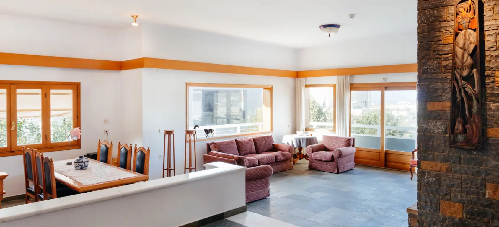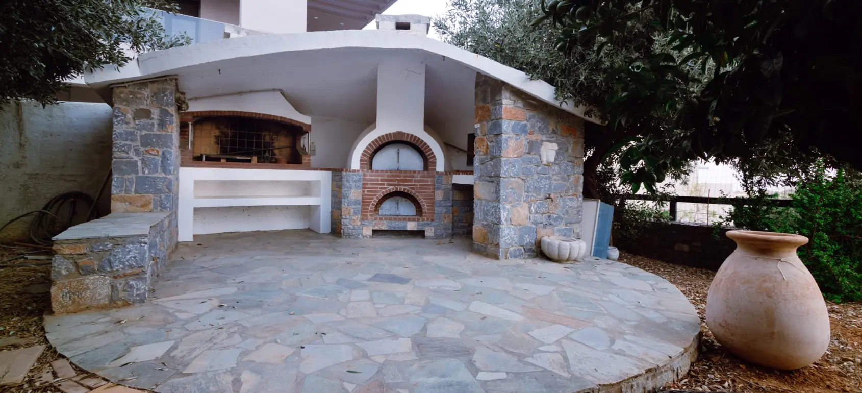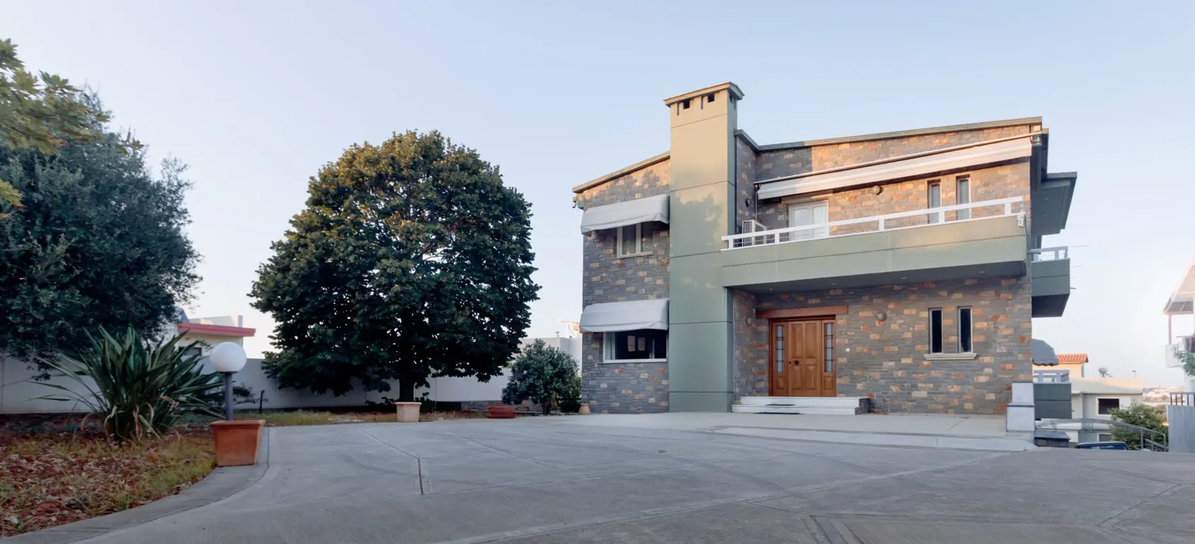 Located on the southern side of Heraklion in Agios Ioannis neighborhood 2 miles away from Knossos Ancient Palace. The house, spans 581 square meters of building areas and has a big private garden as well as parking space. The main house consists of 4 bedrooms and 3 bathrooms. There is also an independent apartment on the ground floor. The large terraces offering panoramic views. Earthquake-proof structure based on Greek anti-seismic regulations. Swimming pool can easily build