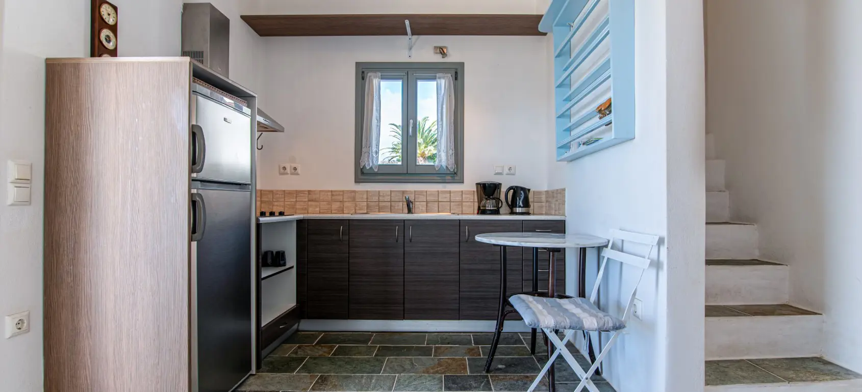 This beautiful standalone maisonette with his private plot is located at the Faros area, on the south part of Sifnos. There are large terraces on both ground and first floors and amazing view to the sea and to the picturesque monastery of “Chryssopigi.” In a few minutes, you can have a walk to the main beach of Faros and to the fabulous beach of Vlycho. You can swim and spend relaxing moments in the small village taverns, enjoy traditional Aegean dishes and fresh fish. For swimming, lunch and dinner, you can also visit the beach of Chrissopigi which is just around the corner! The most picturesque beaches of the island are literally next to you: Fassolou, Faros, Vlycho and Chrissopigi. Ideally for a vacation home as well as for producing a great rental income.
