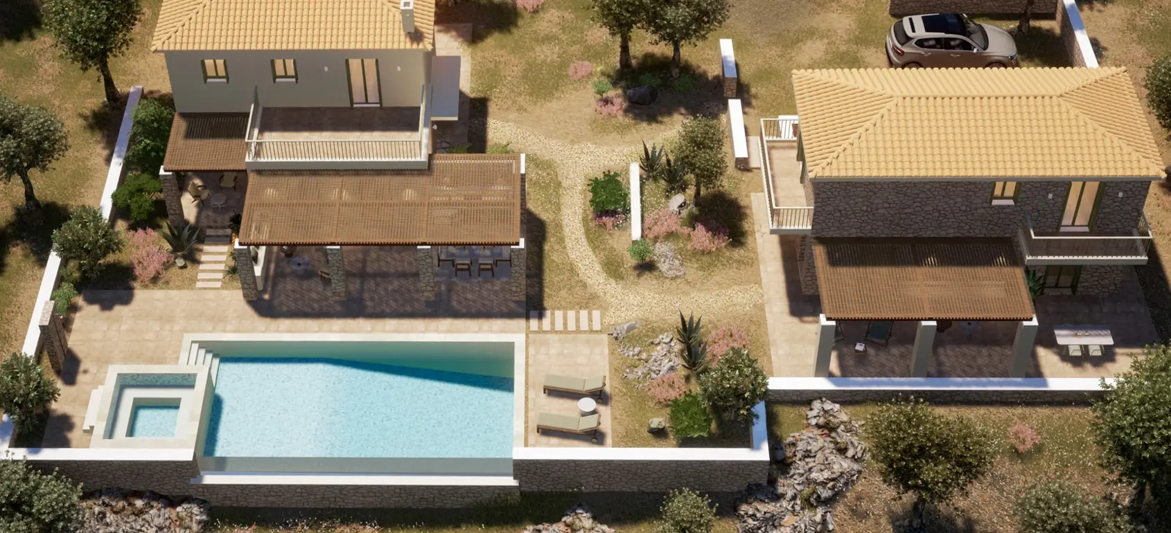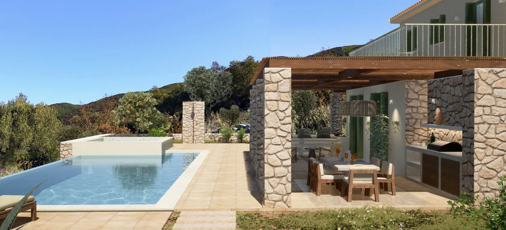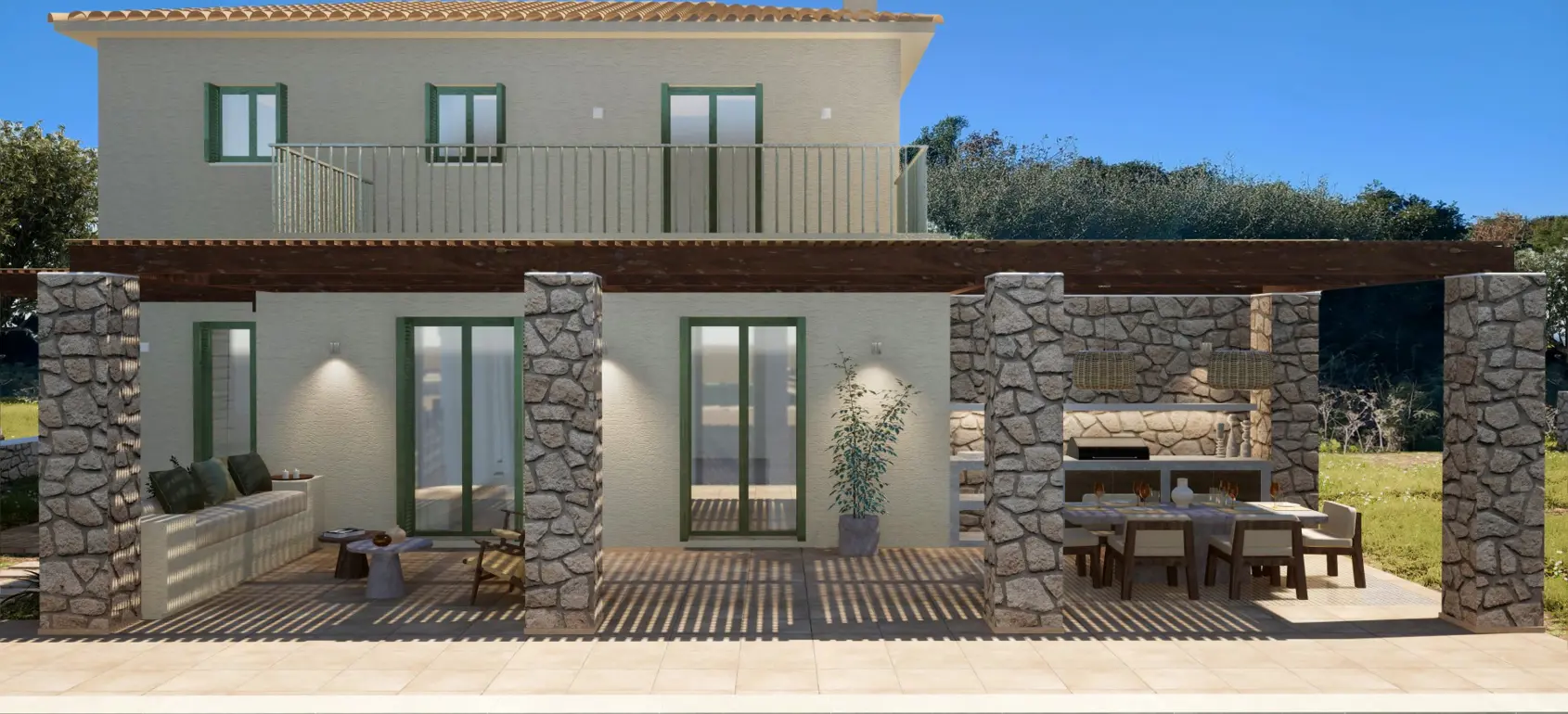Plot with building permit in the area of Skinaria in Agios Nikolaos, Zakynthos. Allowed to build in total 281.5 square meters of living areas with a pool of 5x12m.