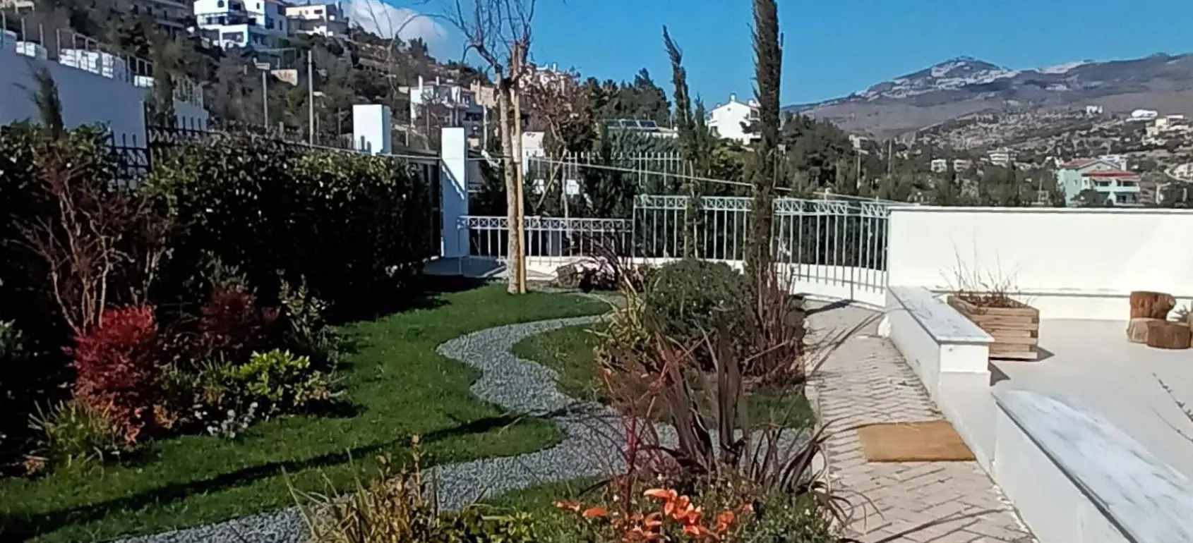 Second floor (44sqm) it consists of a living room, a kitchen, wc, there is access to the roof garden with unlimited sea and mountain view.
