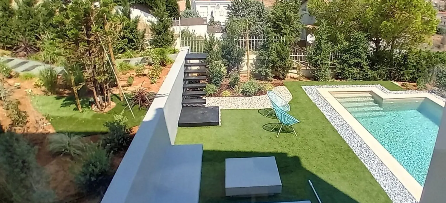 The house is perfectly located in a quiet area of Ntrafi. Ntrafi Area has villas with independent plots and its exclusively residential area with a high quality of living but not far away from Athens (15 km or 25min by car). The area has green parks for walking and large lighting streets. Also, very close is the waterfall of Valanaris. The area has public transport that ends at the metro station. Within 10 min by car, you will find the most popular private Athens Schools (e.g Costeas Geitonas School, Campion School, Εrasmios Greek German School. etc ). Within 1.5 km you will find the designer Outlet Athens. The International airport of Athens (El. Venizelos) is 15 km away and the port of Rafina, that has connection to the most famous Greek islands (Mykonos, Santorini, Andros etc) is a 10km drive. The famous beach of Schinias, on the northern edges of Marathon Bay is 30 min by car. The beach of Artemida is 20 min by car. Also, Penteli mountain is a 5km drive where you can find traditional taverns, fine restaurants and cafe.