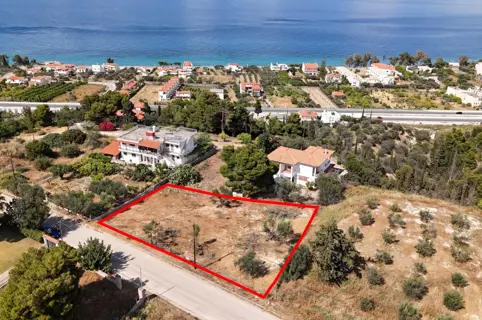 Land plot close to Melissi village, in the north part of Peloponnese. It can build a residence of up to 387sq.m of main areas. The building coefficient is at 0.4. The local village of Melissi is situated between walking distance from the plot. It is a traditional village lively in the summer months with Athenian families who holiday here. There is a village square with a cafe as well as a mini market.