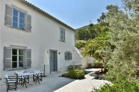 This beautiful traditional Hydra house is located just 55m from the sea, in the small Port of Kamini. It’s an independent house, in a plot of 400sqm with a surface of 205sqm on two levels (ground level and first floor). Consists of four (4) bedrooms, two (2) bathrooms and two (2) WC. It is fully renovated, furnished and well equipped. A beautiful Mediterranean garden with aged lemon trees, olive trees and flowers in front of the house.