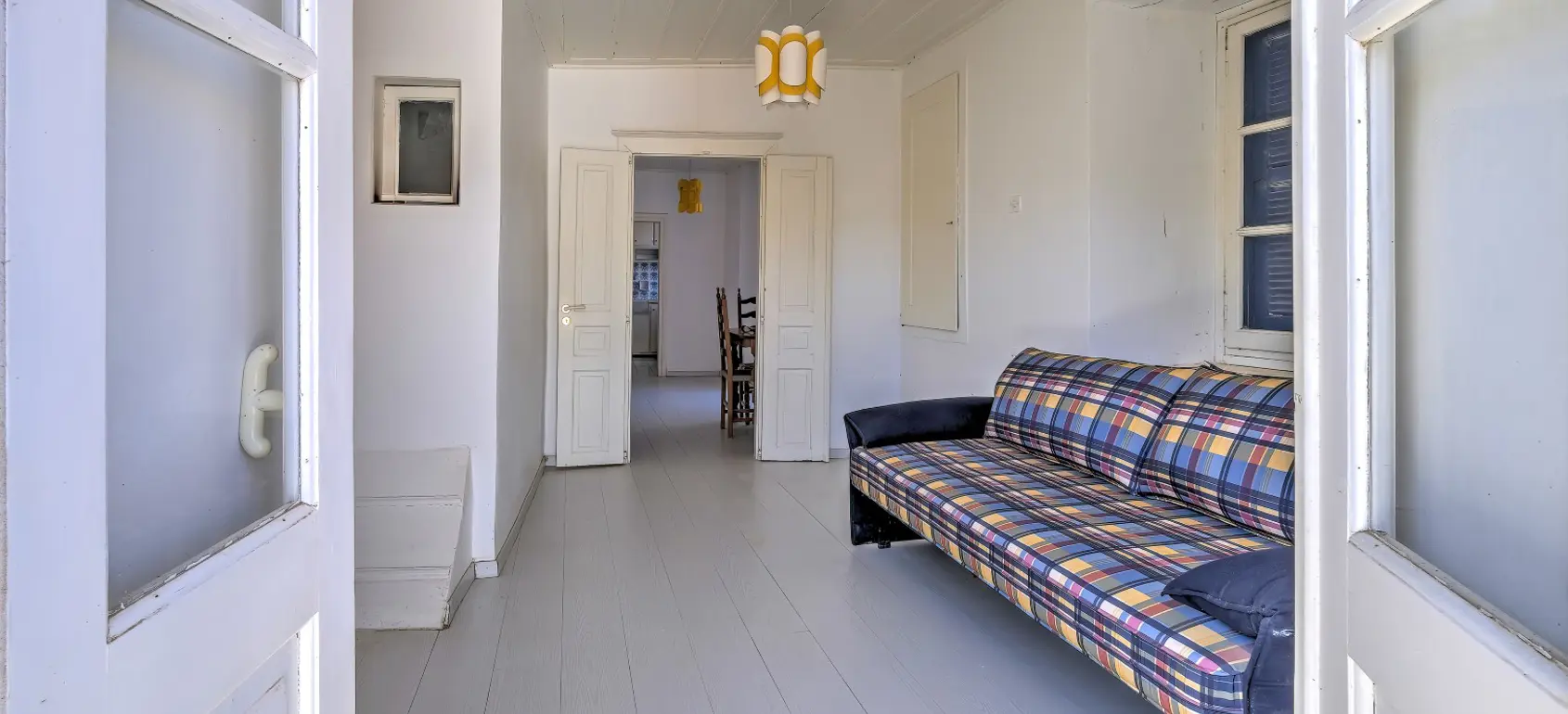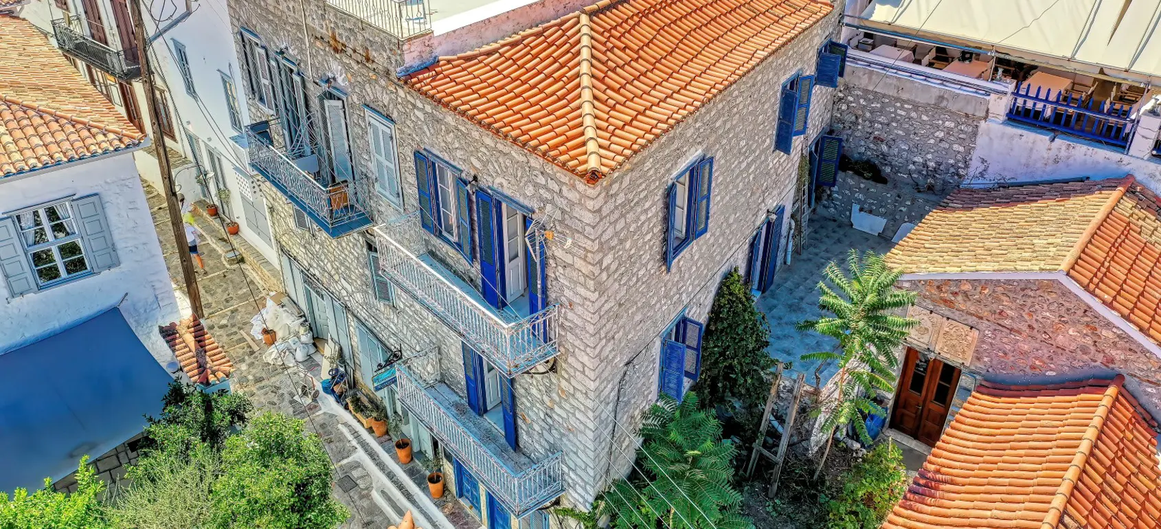 A lovely property, in a prime location of Hydra, very close to the port. It is developed in 3 levels. The two upper levels have the same layout and include a living room, a kitchen, 1 bedroom, 1 bathroom, as well as a comfortable terrace with a beautiful view, even from the indoor spaces. On the ground level, there is a storage space and a courtyard. The property is in need of restoration.