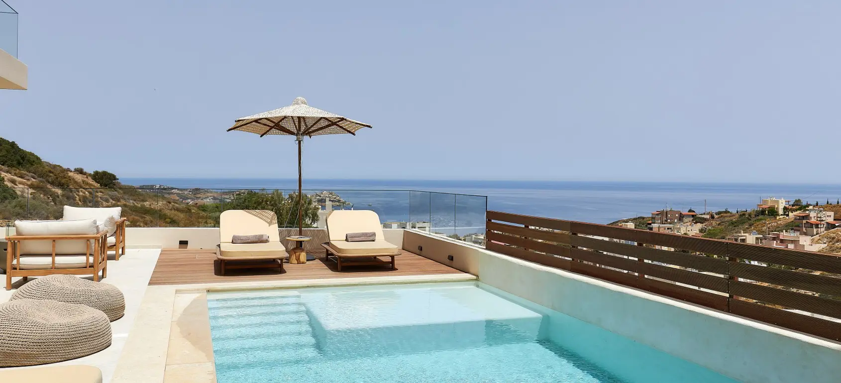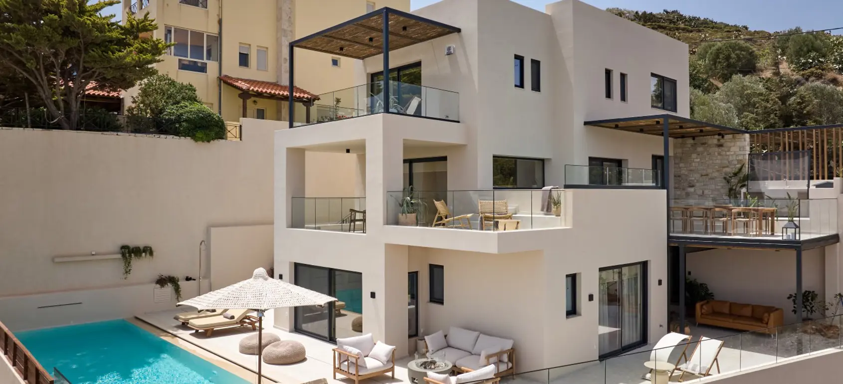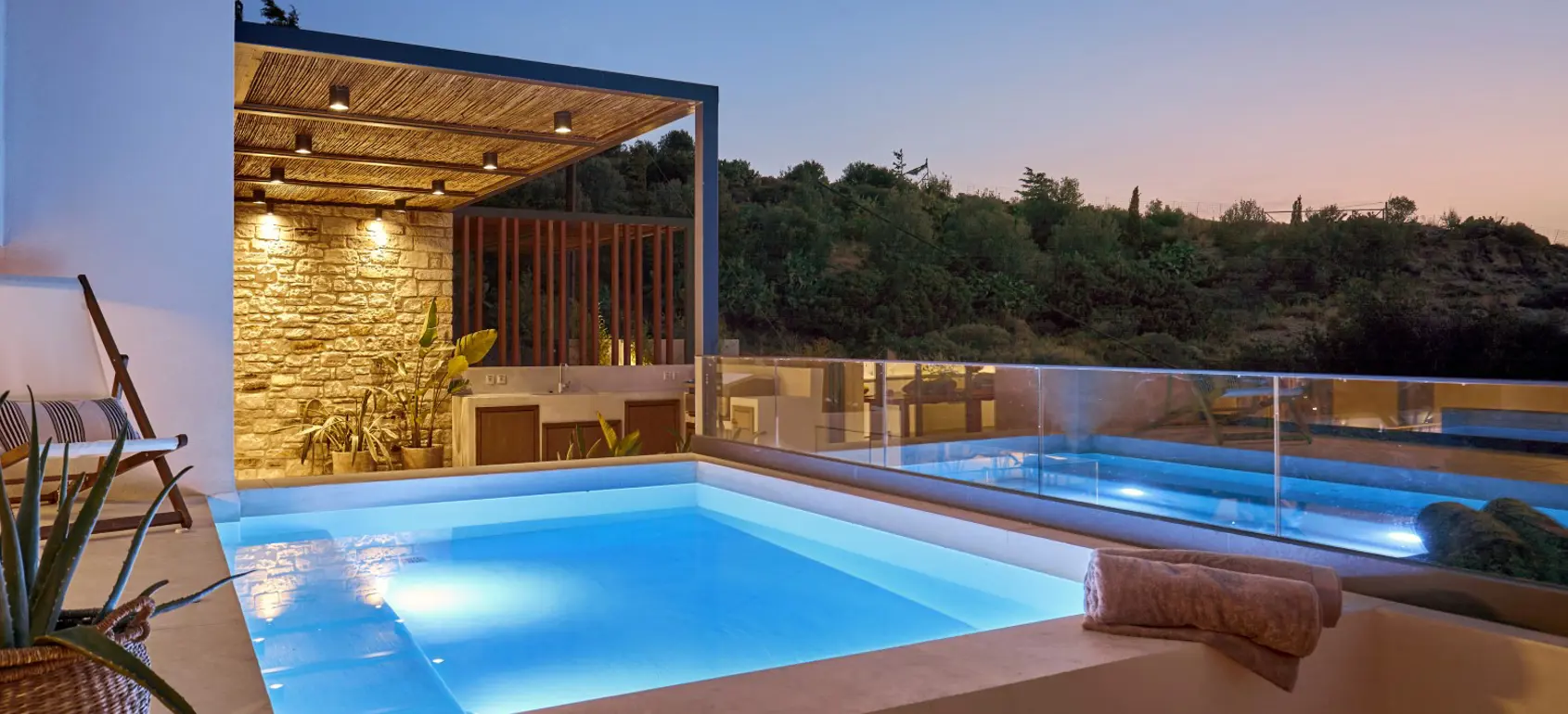 Luxuriously laid-back villa surrounded by lush greenery and Balinese-inspired gardens, creating an oasis in the midst of the island of the Minoan gods. Discover this unique villa with a private heated swimming pool, another heated pool with jacuzzi, outdoor fireplace, outdoor gas barbecue and well-equipped playroom - with a home cinema and a pool table.