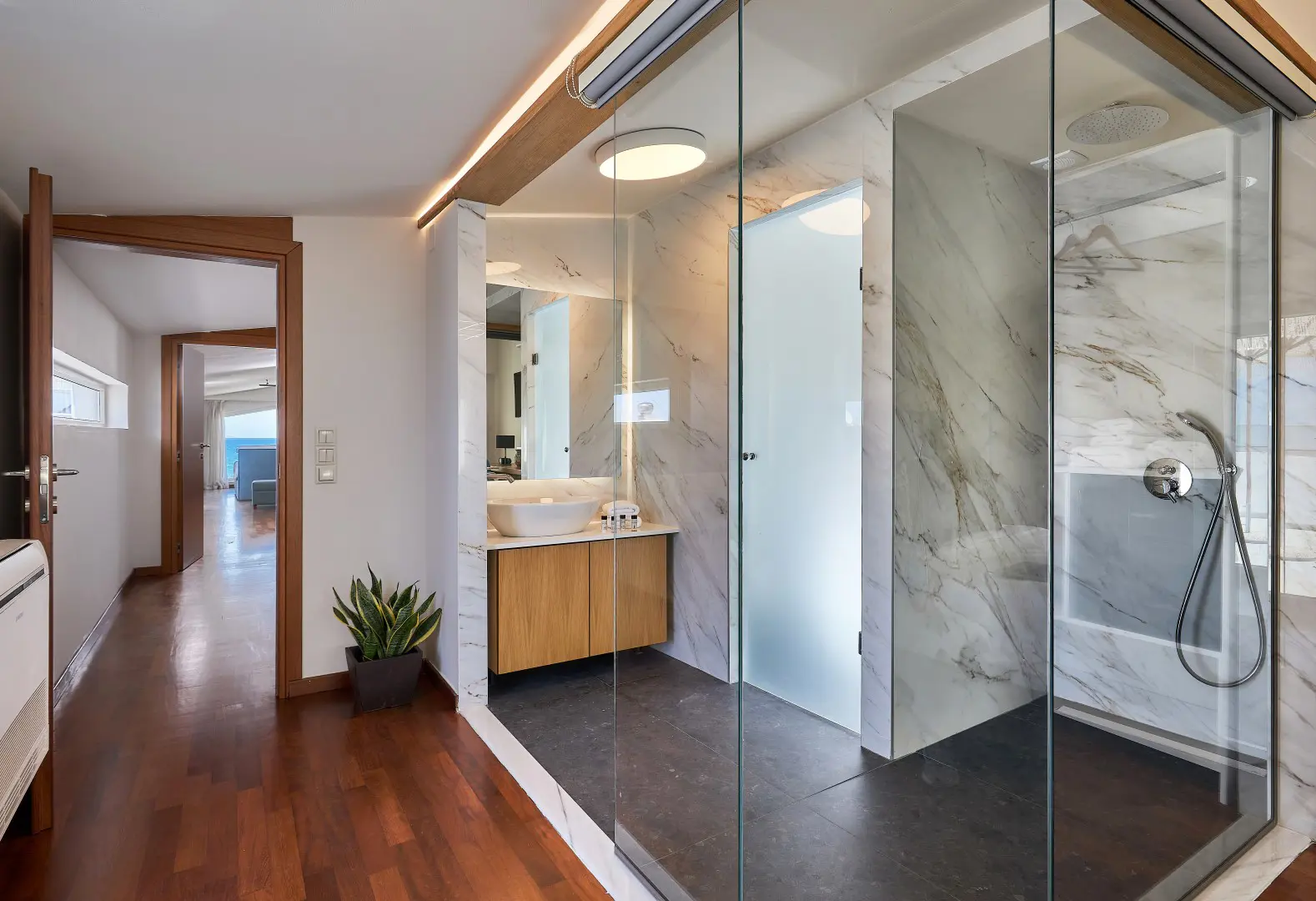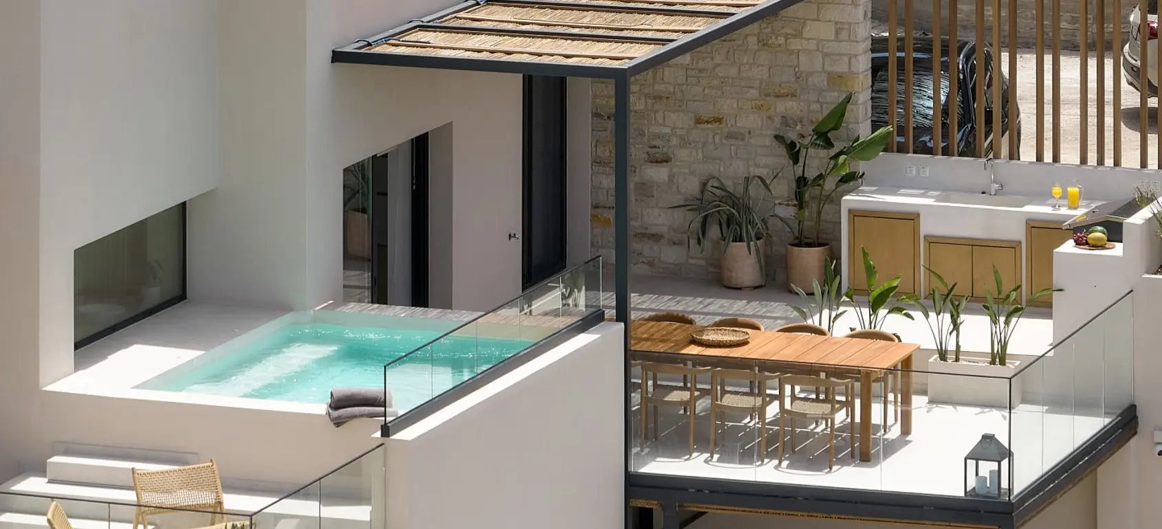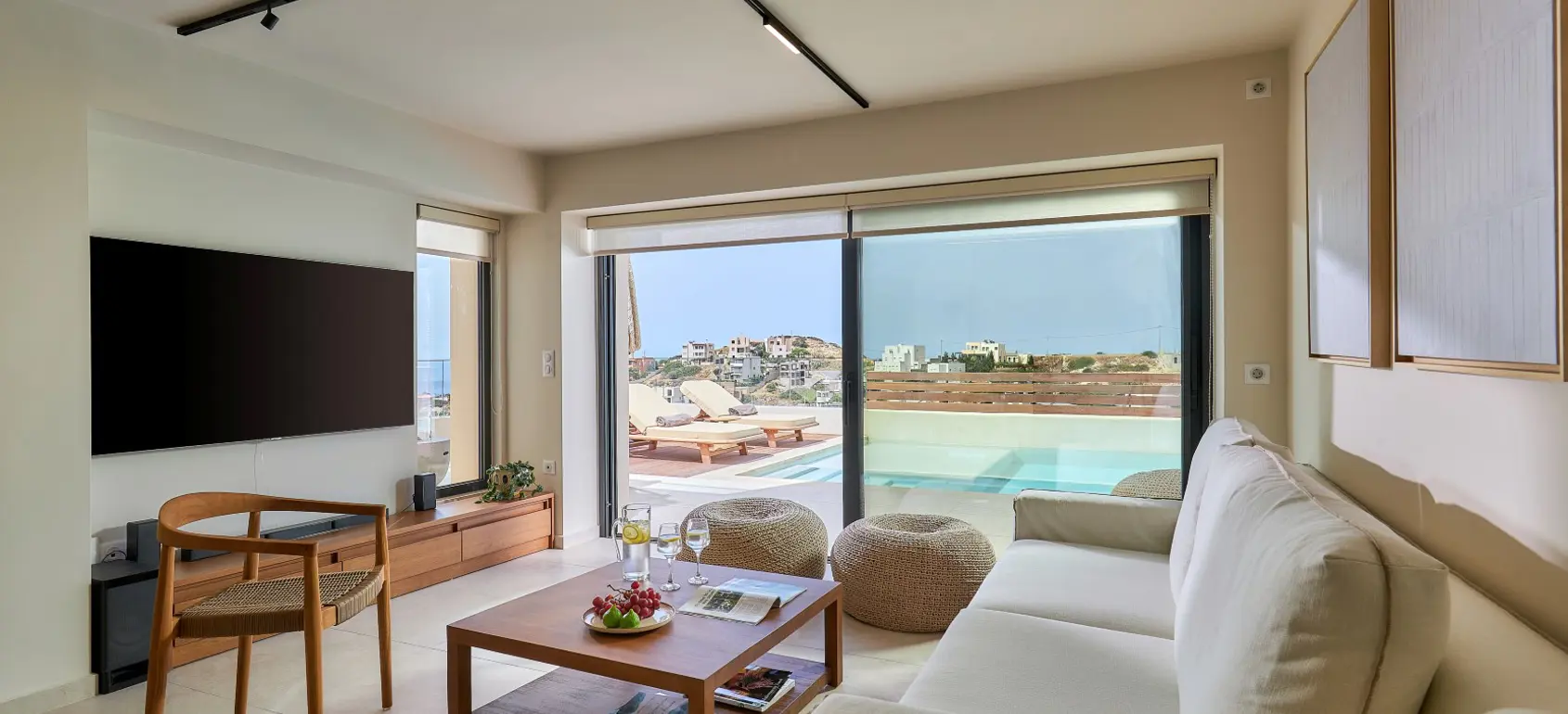 Luxuriously laid-back villa surrounded by lush greenery and Balinese-inspired gardens, creating an oasis in the midst of the island of the Minoan gods. Discover this unique villa with a private heated swimming pool, another heated pool with jacuzzi, outdoor fireplace, outdoor gas barbecue and well-equipped playroom - with a home cinema and a pool table.