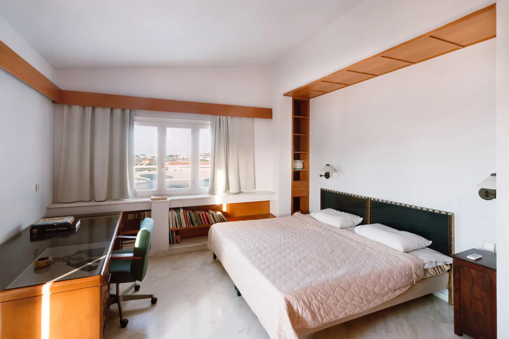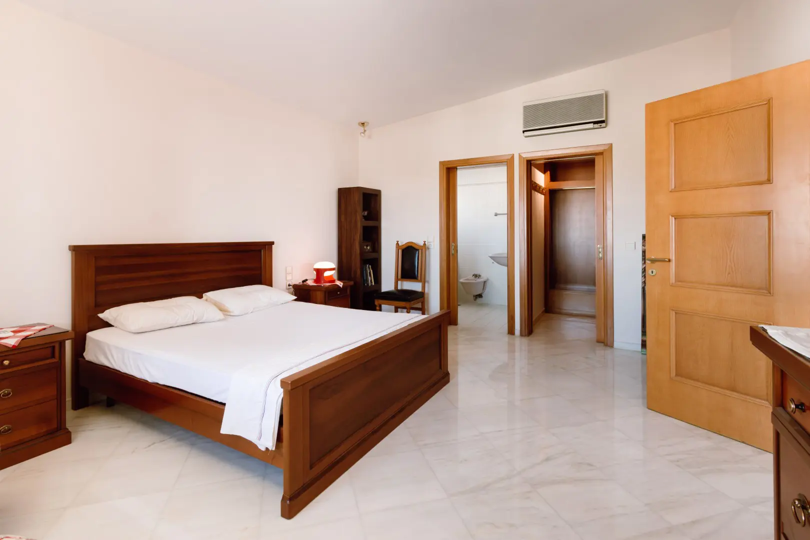 Pool guesthouse: A well-equipped master bedroom with an en suite bathroom and direct access to the pool.