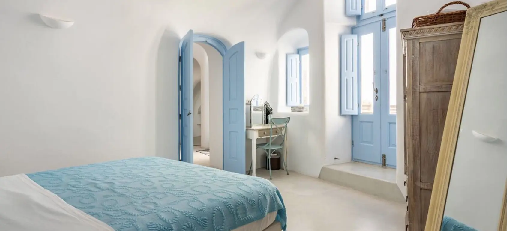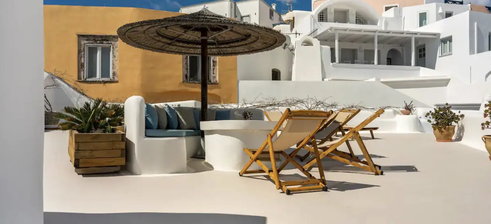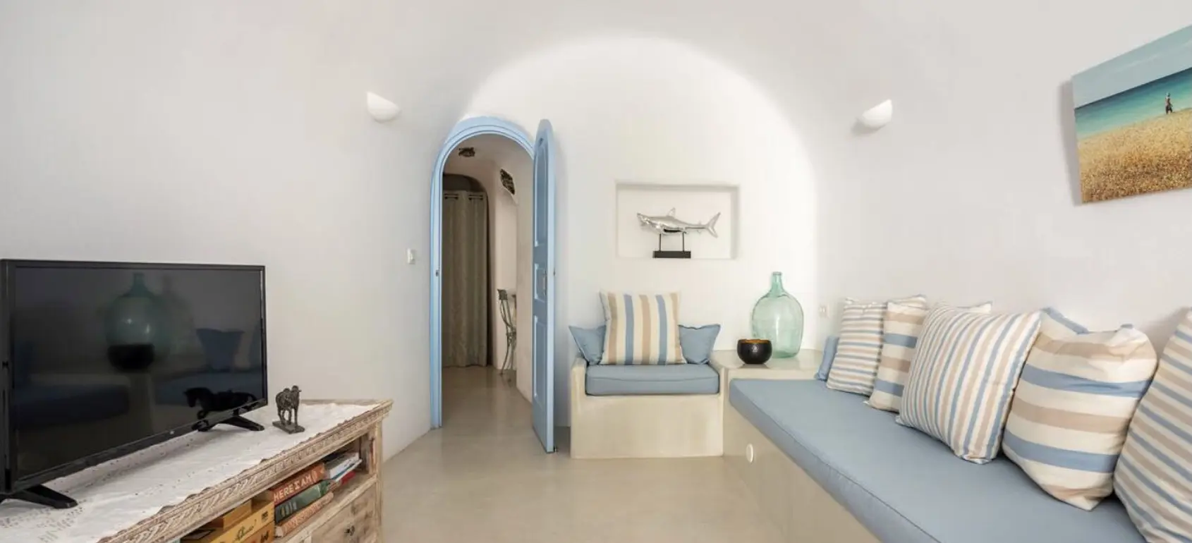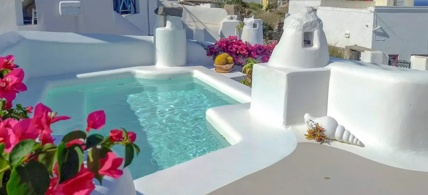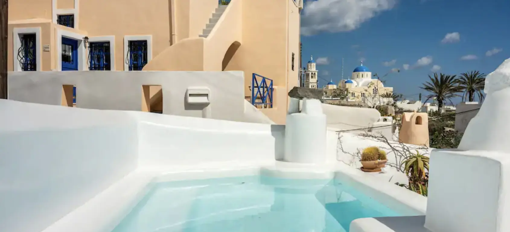 A lovingly restored traditional villa right in the heart of the old town of Fira. Just a few minutes’ walk from the famous Caldera and the main square, the villa offers luxurious accommodation providing easy access to the many restaurants and famous nightlife of the capital. The villa offers generous accommodation with 3 double bedrooms, two of which feature en-suite bathrooms, the 3rd bedroom is located underneath the main house and is accessible from the courtyard, and a luxurious lounge area offer the discerning traveller a unique opportunity to experience a true Santorinian traditional house without compromising on creature comforts. Outside, a large, private yard provides an opportunity to relax or dine al-fresco. The large roof terrace offers mountain and sea views, offering an opportunity to enjoy a spot of sunbathing or a relaxing dip in the plunge pool. The property has a valid EOT touristic licence.