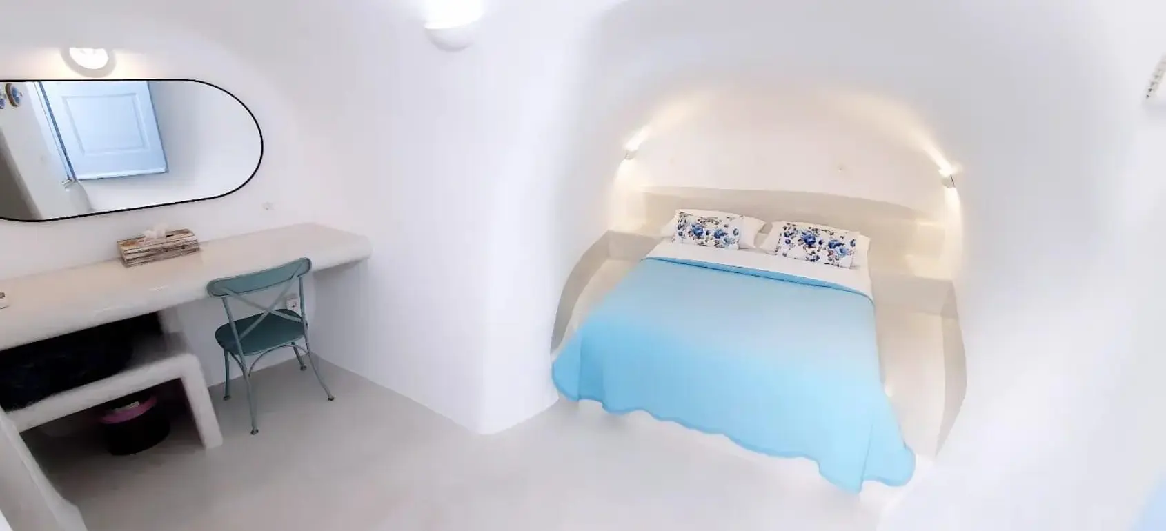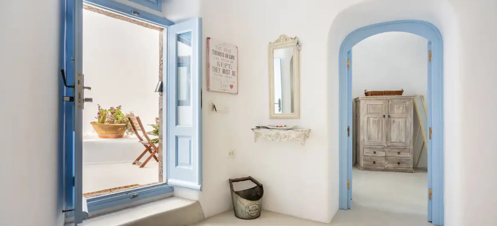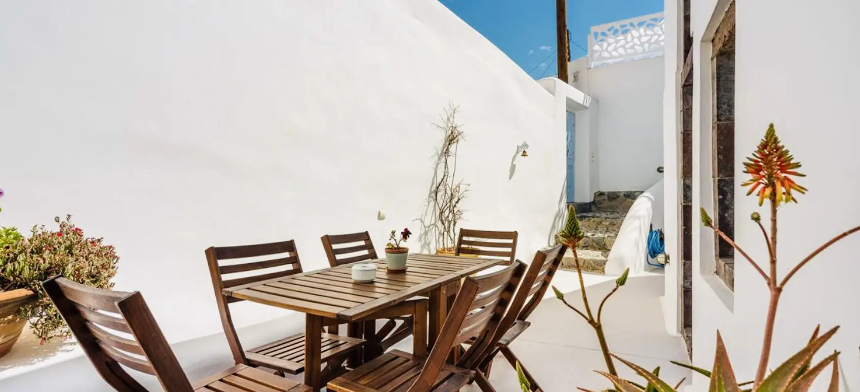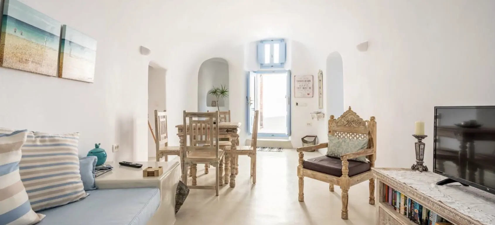 A lovingly restored traditional villa right in the heart of the old town of Fira. Just a few minutes’ walk from the famous Caldera and the main square, the villa offers luxurious accommodation providing easy access to the many restaurants and famous nightlife of the capital. The villa offers generous accommodation with 3 double bedrooms, two of which feature en-suite bathrooms, the 3rd bedroom is located underneath the main house and is accessible from the courtyard, and a luxurious lounge area offer the discerning traveller a unique opportunity to experience a true Santorinian traditional house without compromising on creature comforts. Outside, a large, private yard provides an opportunity to relax or dine al-fresco. The large roof terrace offers mountain and sea views, offering an opportunity to enjoy a spot of sunbathing or a relaxing dip in the plunge pool. The property has a valid EOT touristic licence.